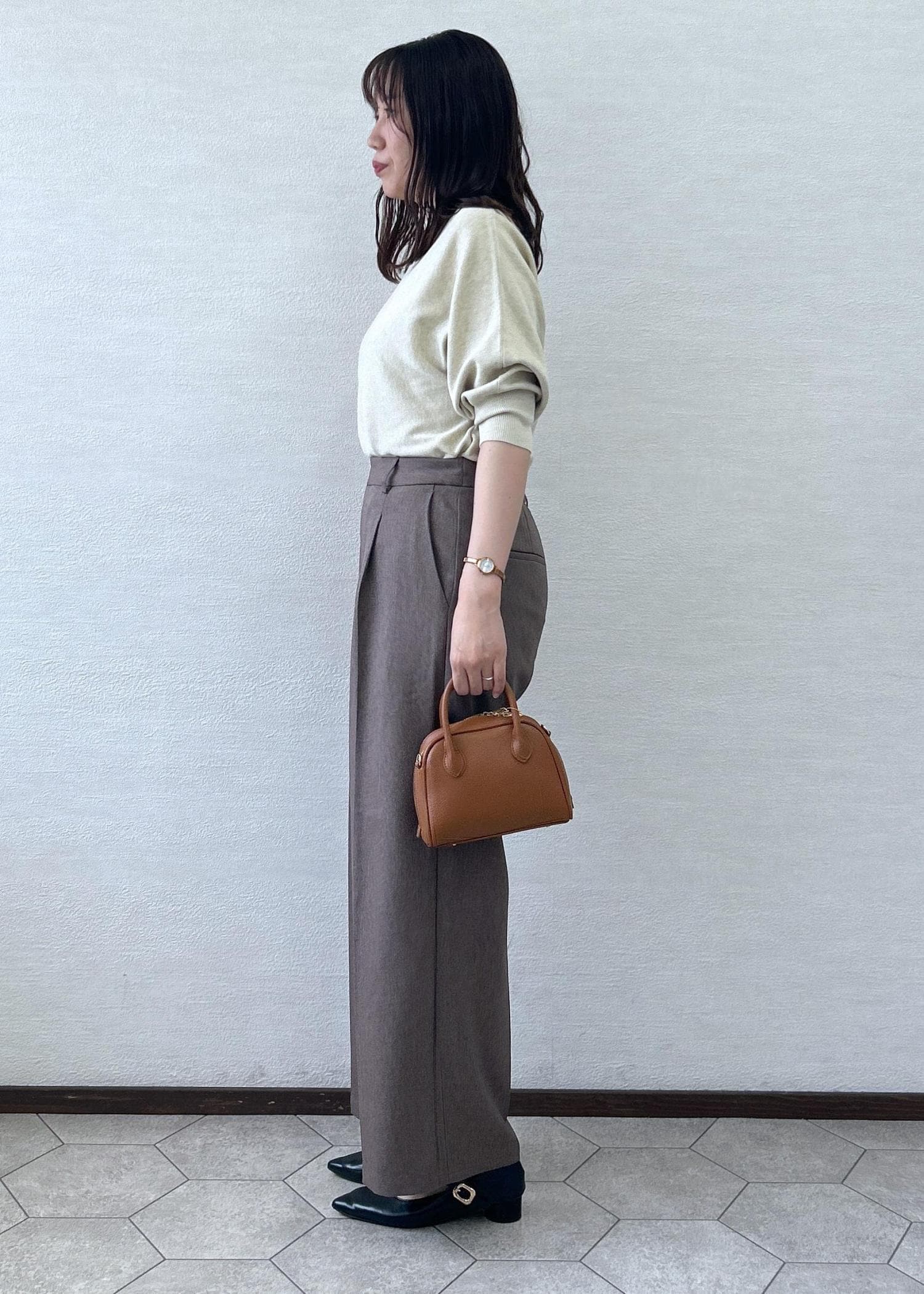 秋っぽくベージュカラーでまとめたお仕事コーデです。