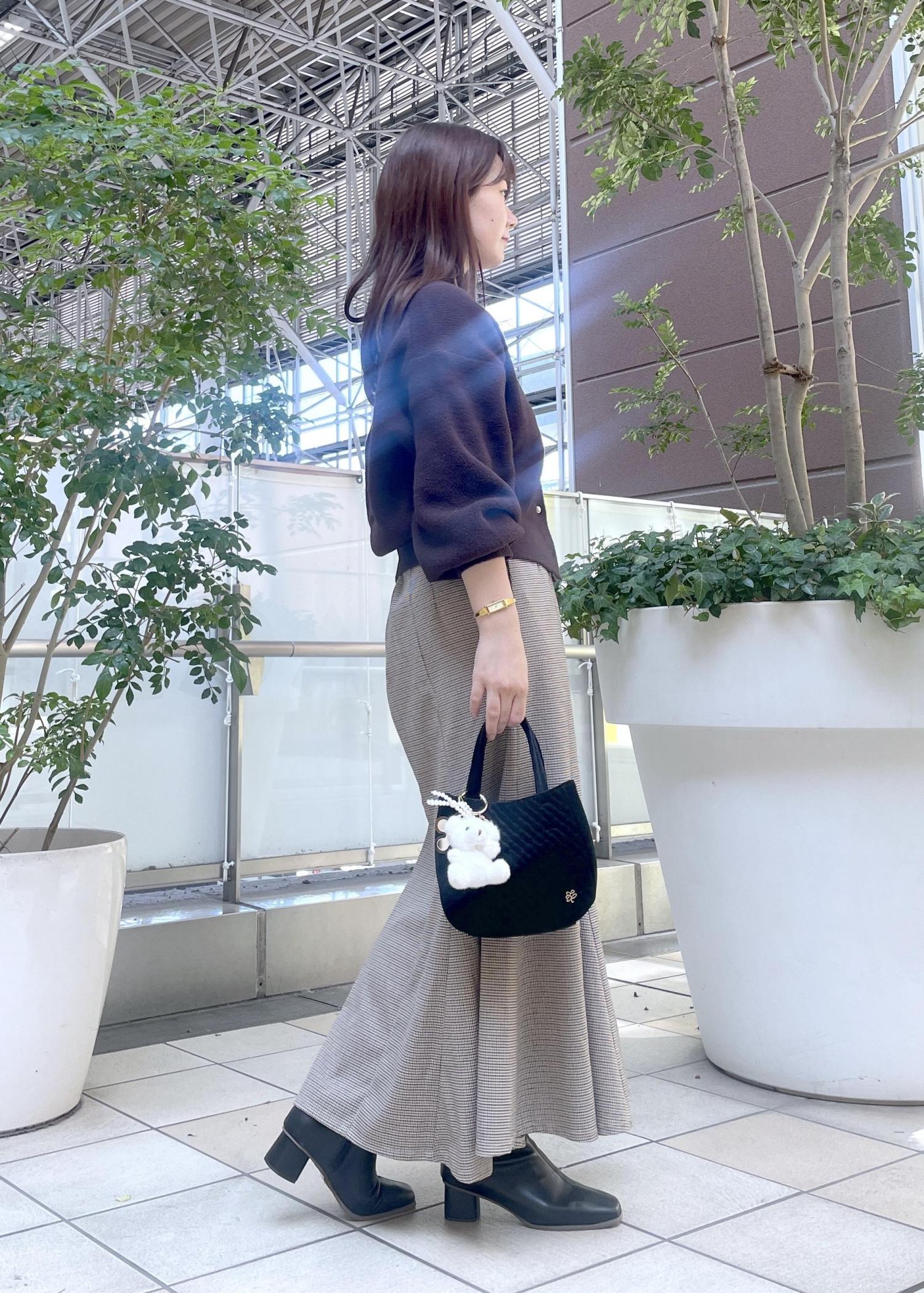 ショート丈でバランスがとりやすいのでボリュームのあるスカートやワンピースとも相性が良いです。 -