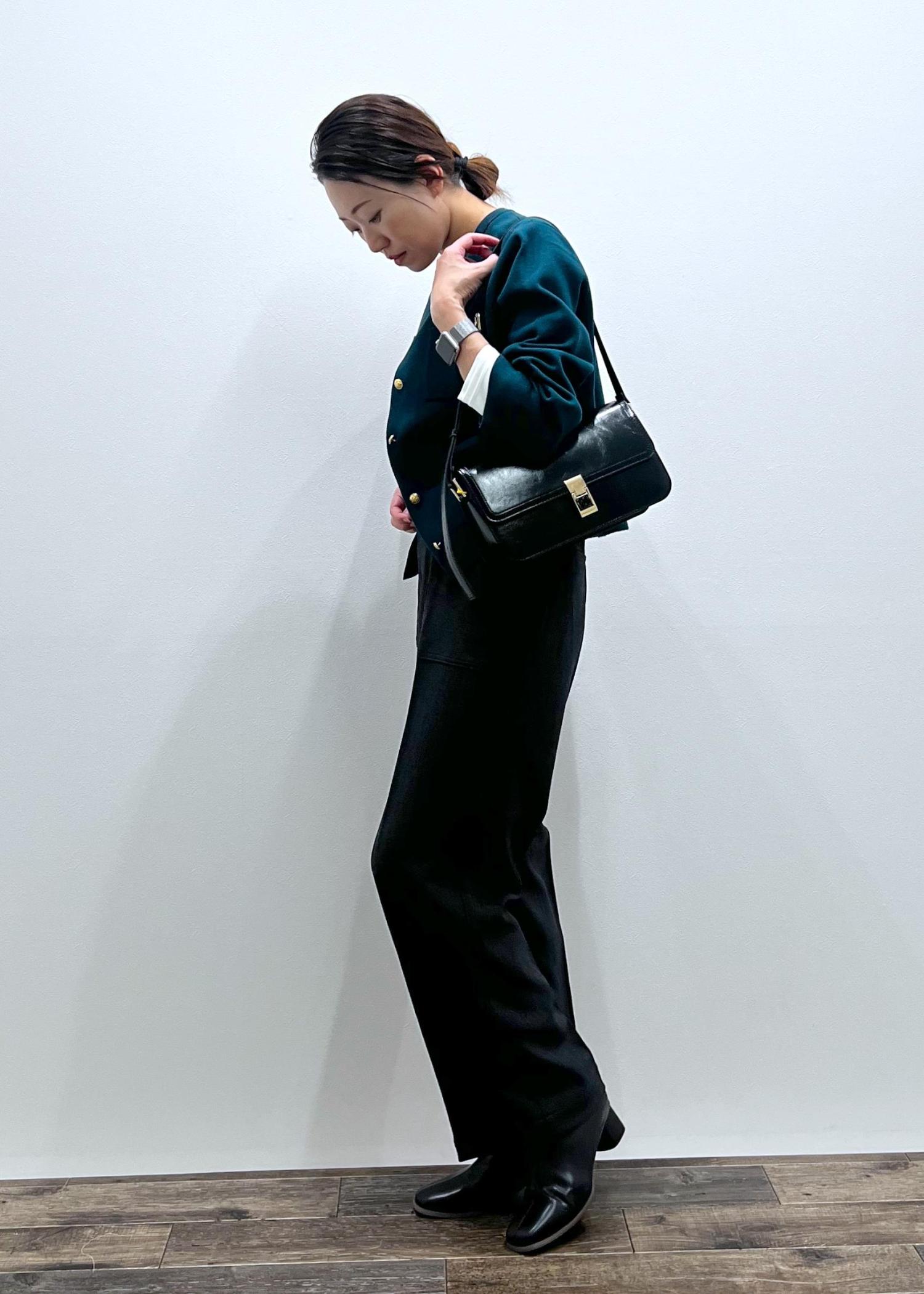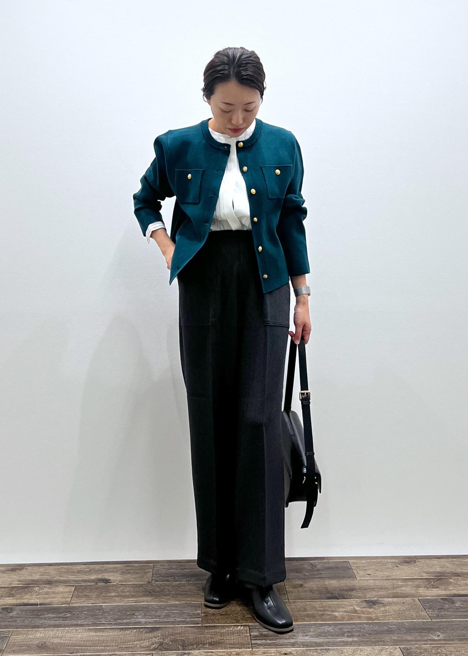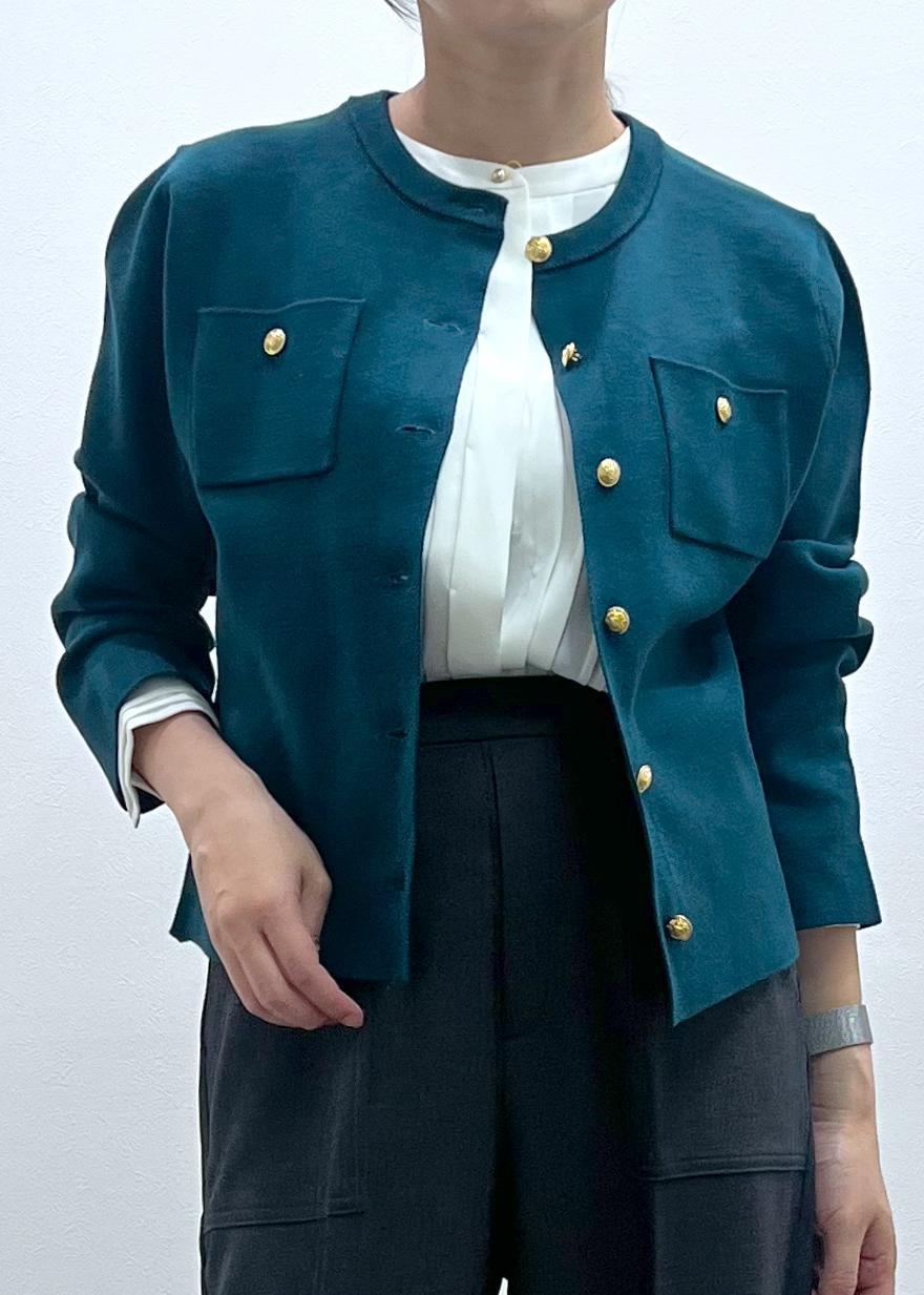 金ボタンがポイントになり固くなりすぎずとてもおしゃれに着ていただけます。