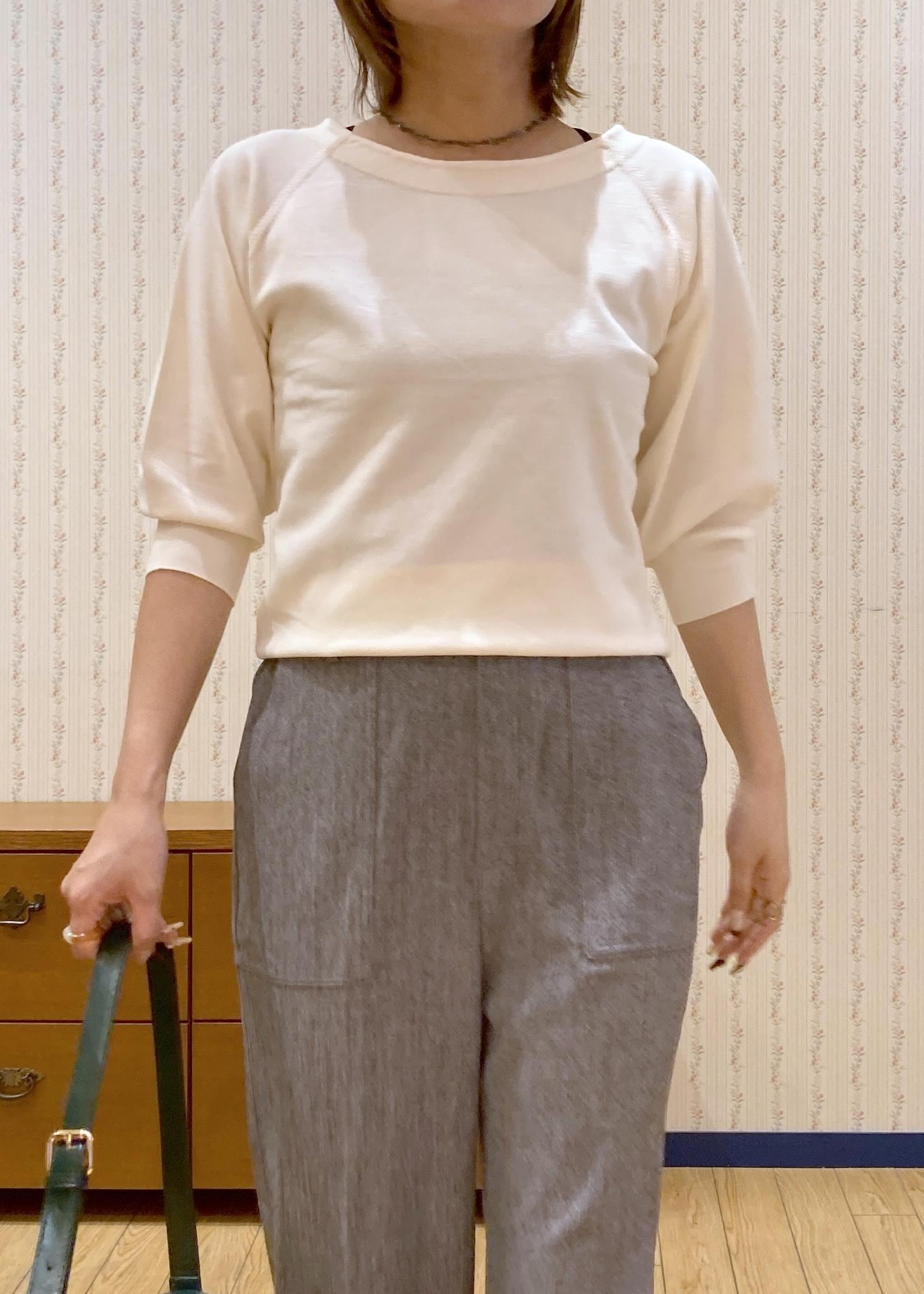 広めに空いた首元とコンパクトな着丈でインしなくてもスッキリ見えます。 -