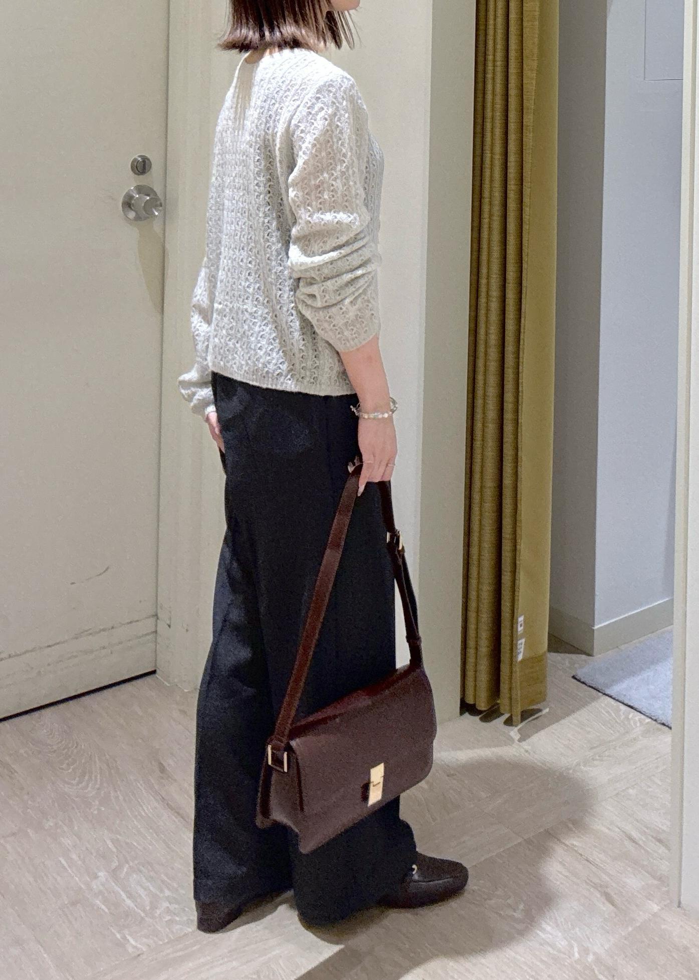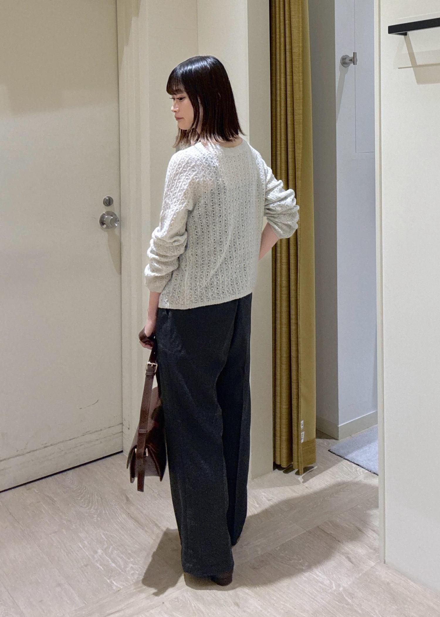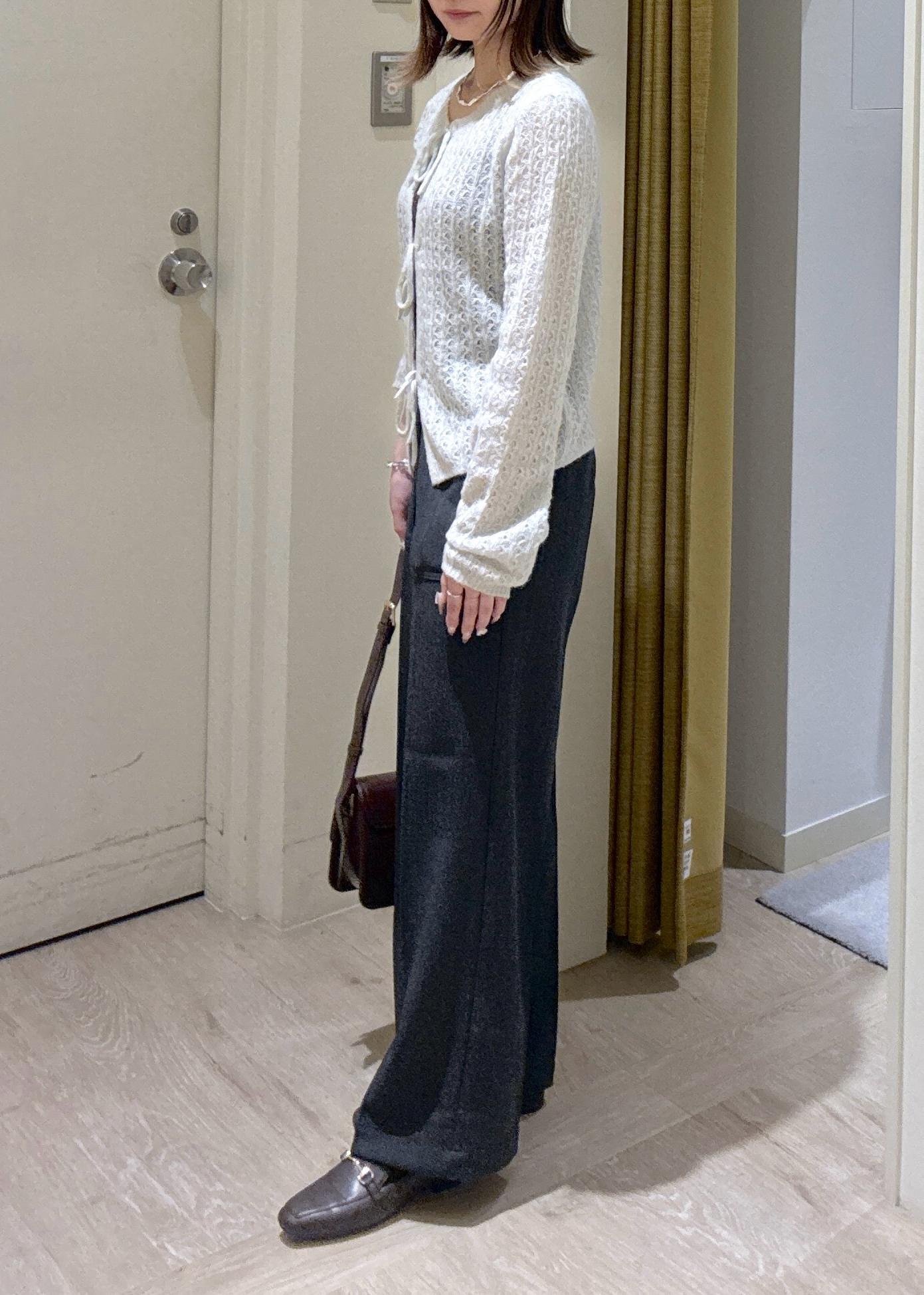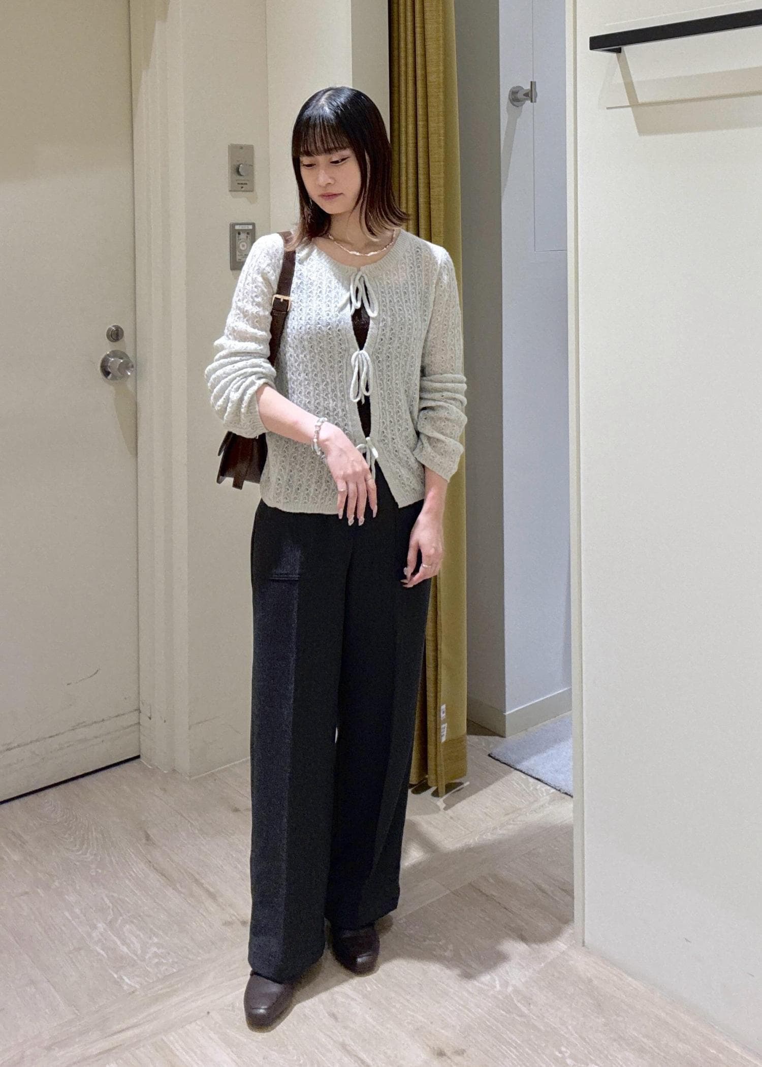 カジュアルなパンツと合わせトップスの甘さを抑えました。