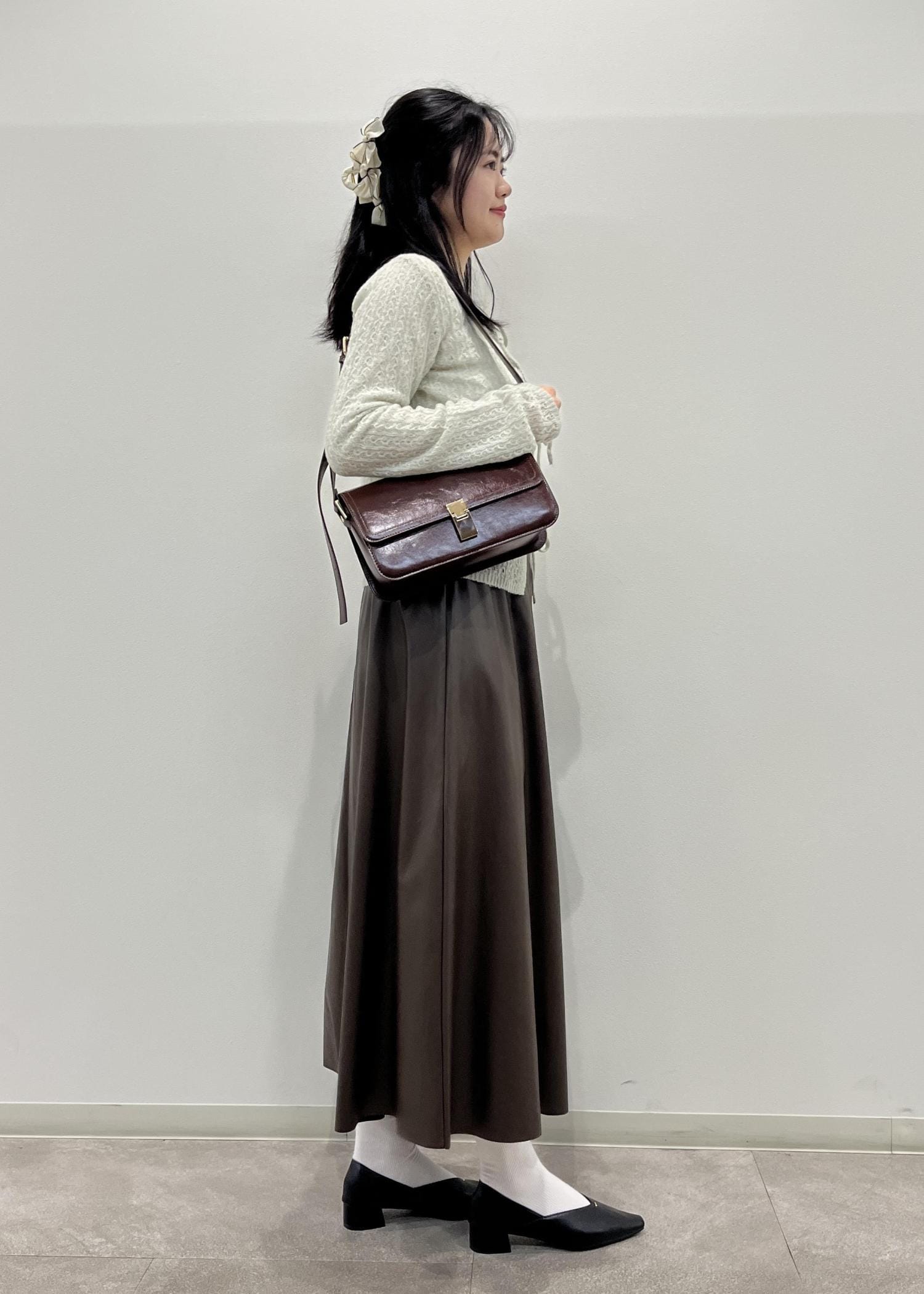 柔らかいレザーでほどよくフレアなデザインが女性らしいです。 -