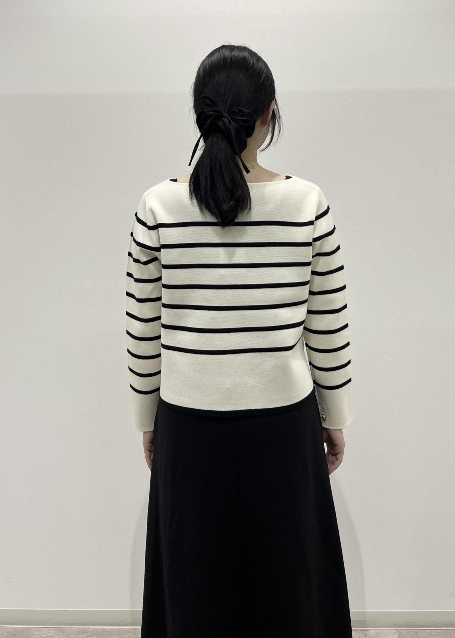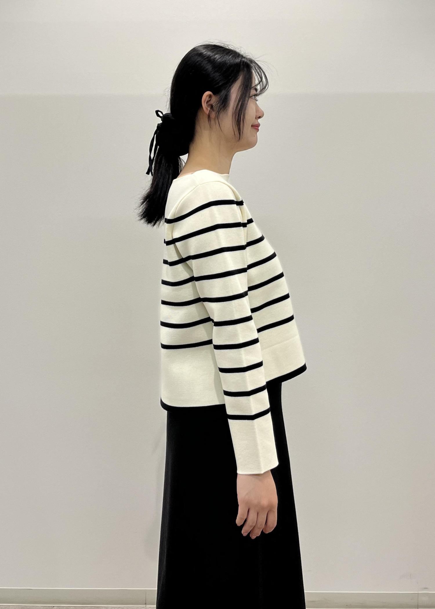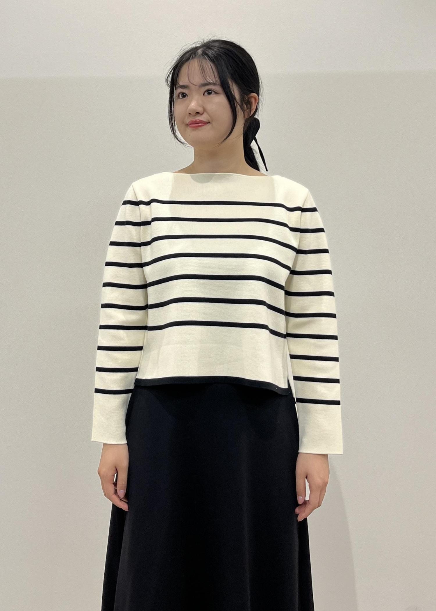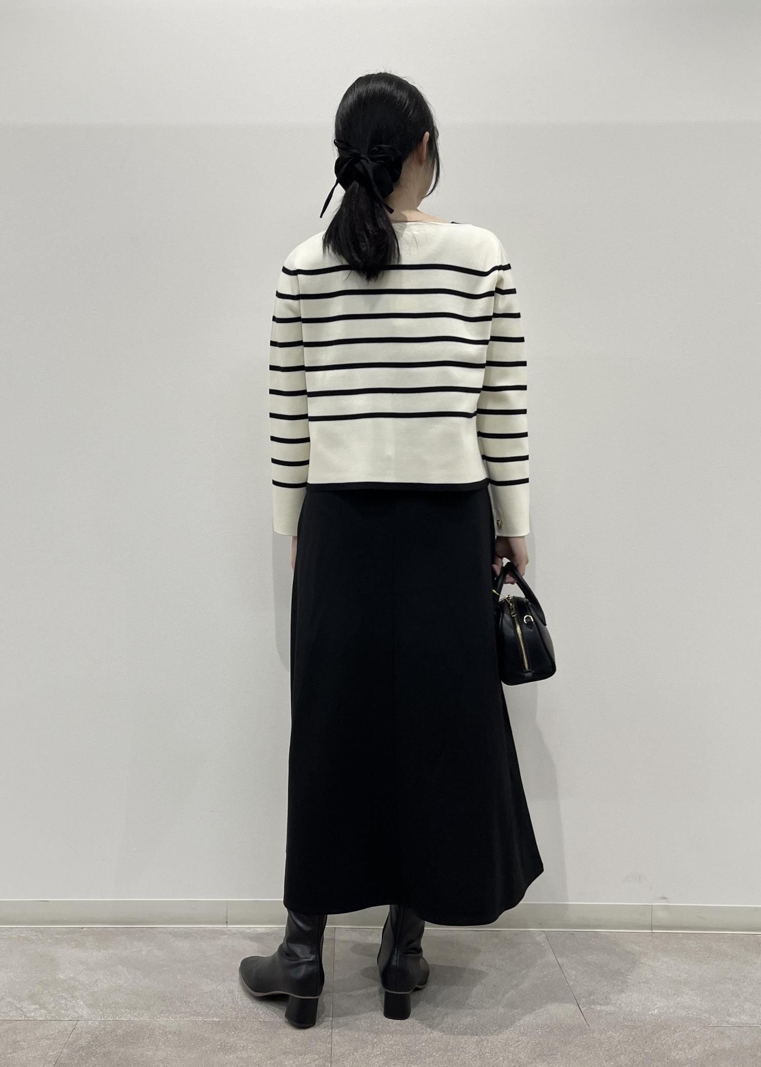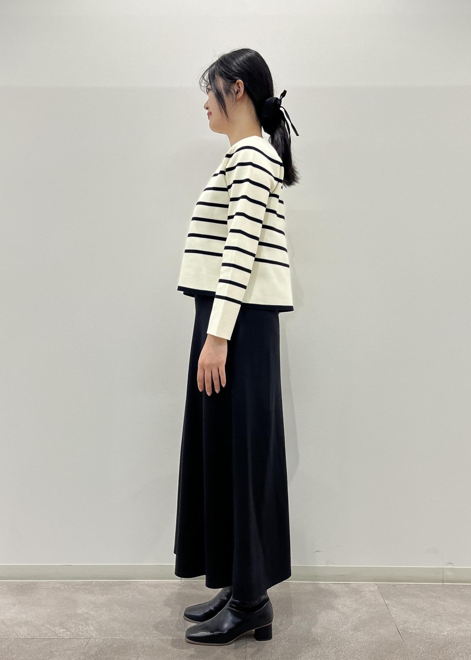 きれいめ、カジュアルどちらも合わせやすいデザインなので一枚あるとコーディネートの幅が広がります。