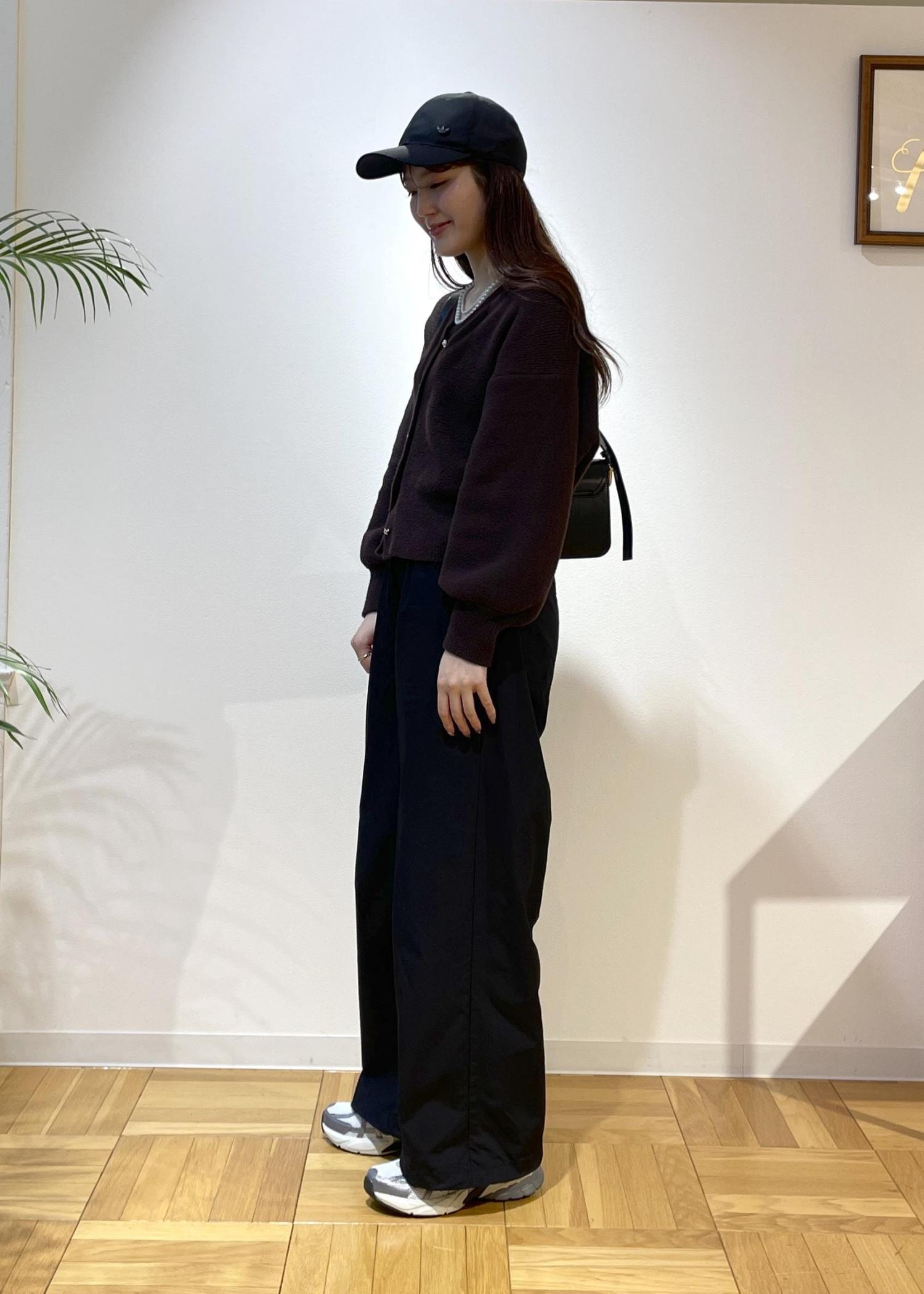 ブラウン×ブラックで落ち着きあるカジュコーデ。