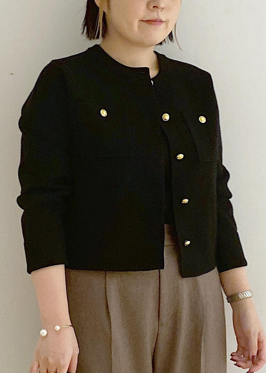 ROPÉ PICNIC【洗濯機OK】ミラノリブニットカーディガンブラック / M¥4,994レビュー156cmだとMサイズでスッキリコンパクトに着用できました。骨ストさんは首元が少し詰まるので開けて着ると◎肌寒い時の羽織りにピッタリです☺︎
