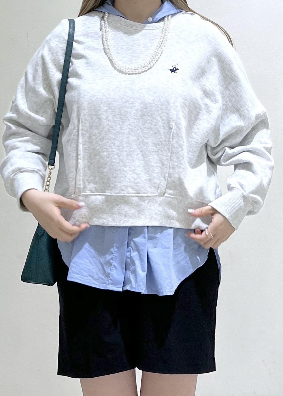 ROPÉ PICNICシャツフーディーブルー / F¥4,499レビューフードの部分がボリューム感がないのでスウェットやジャケットと合わせていただくのもおすすめです。
