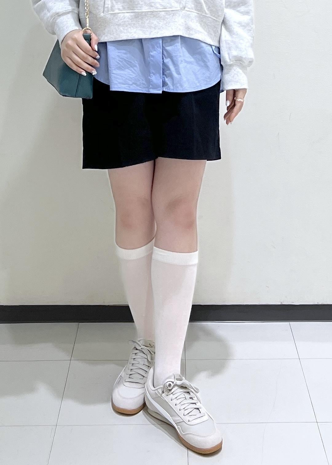 足元は長めの靴下を合わせるとカジュアルな雰囲気になります。
