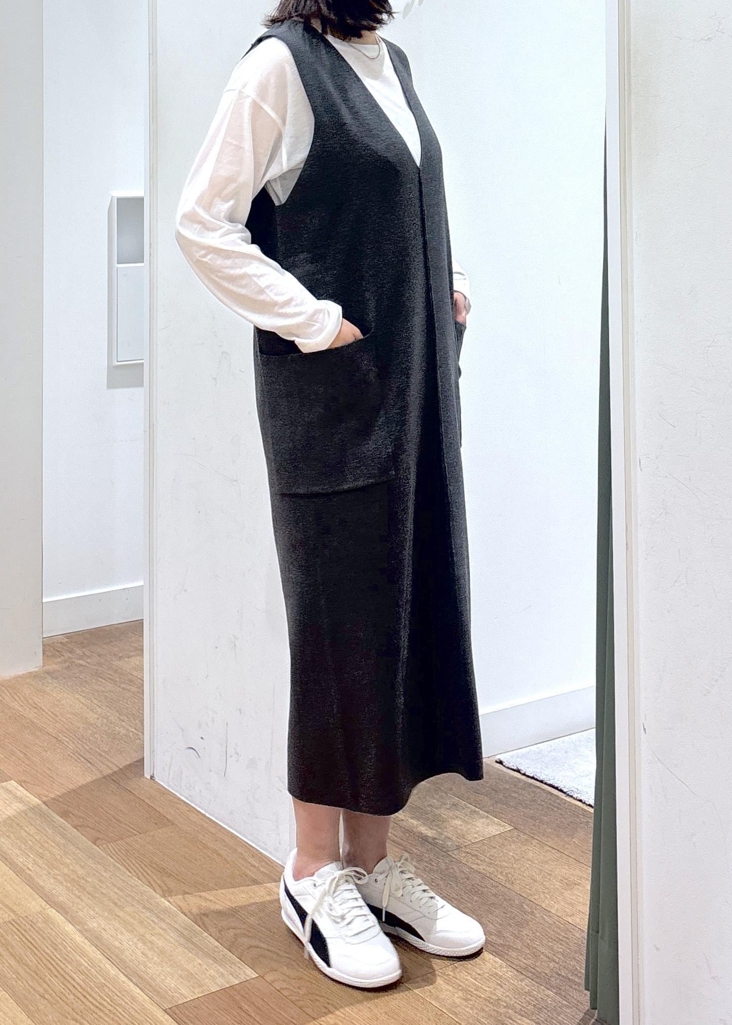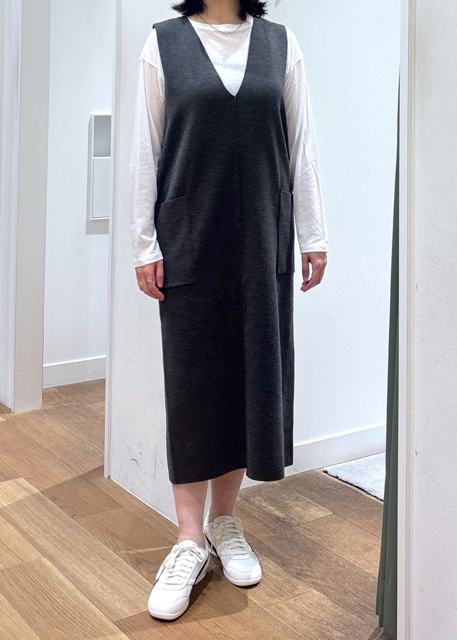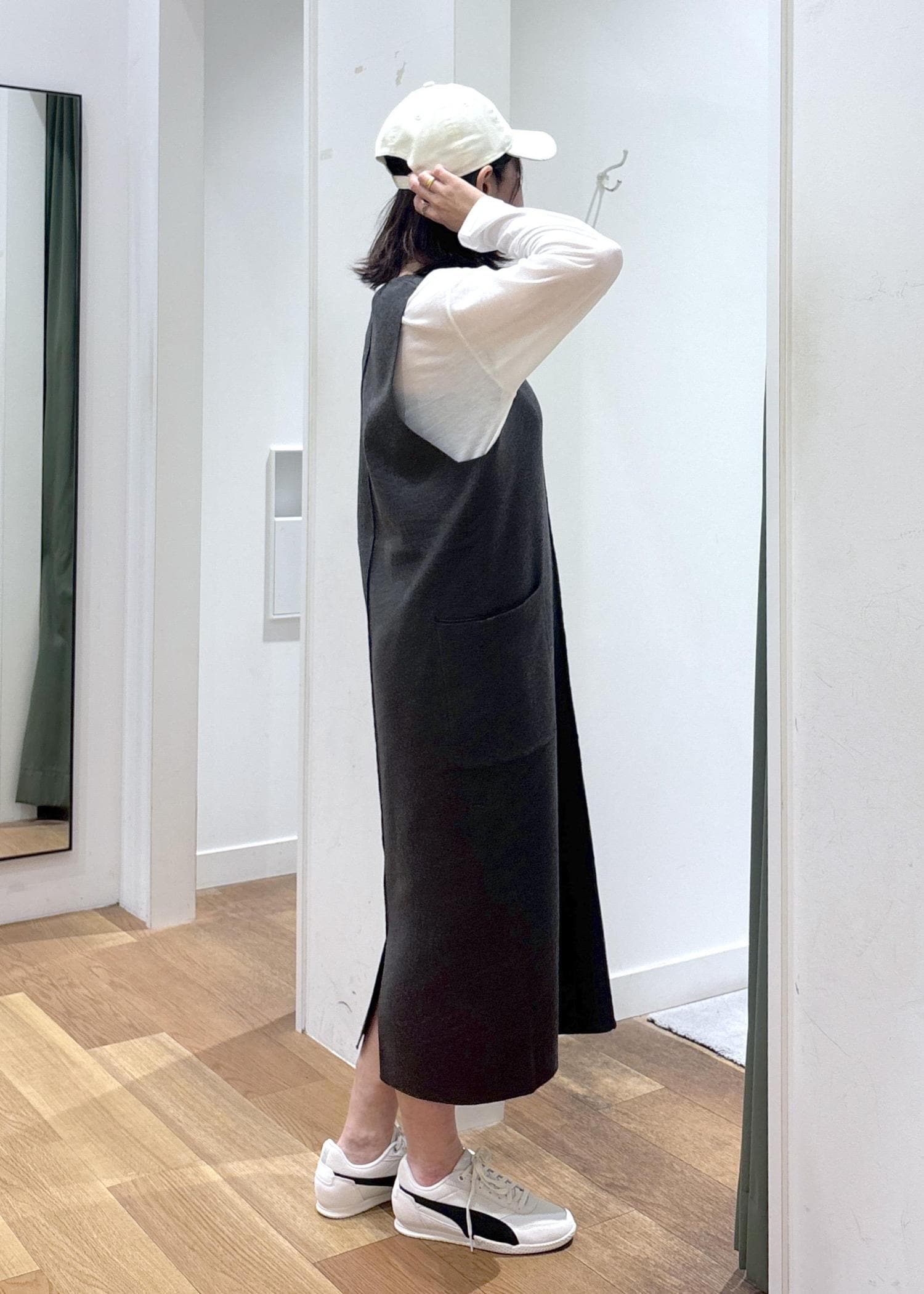 ROPÉ PICNICニットジャンパースカート/着丈が選べる・リンクコーデチャコール / MT¥4,994レビューすとんとしたシルエットで体のラインを拾わないデザインです。162㎝MTの着用で、足首上くらいのすっきりとした長さで、ブーツで合わせてもバランス良く着用できそうです。