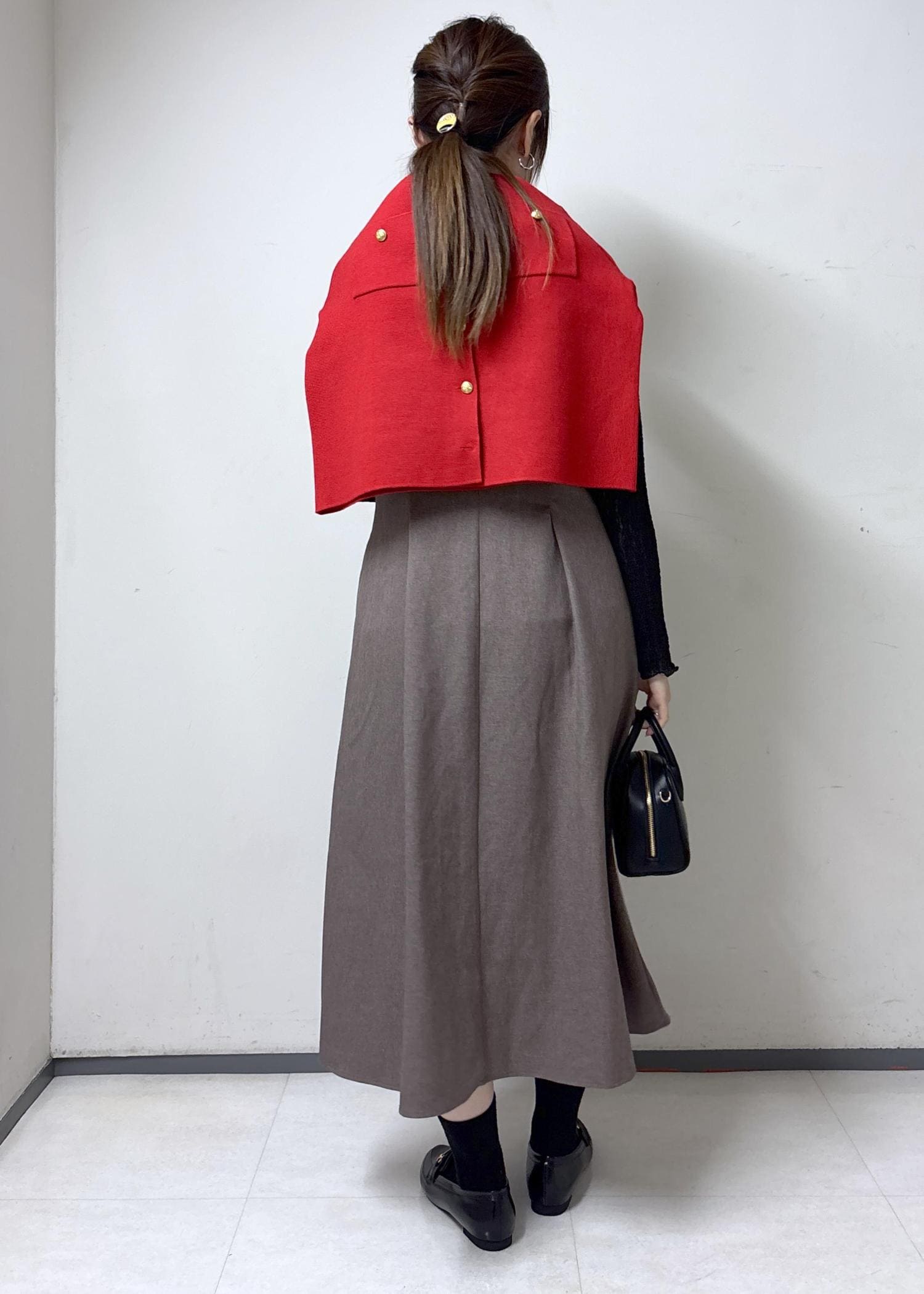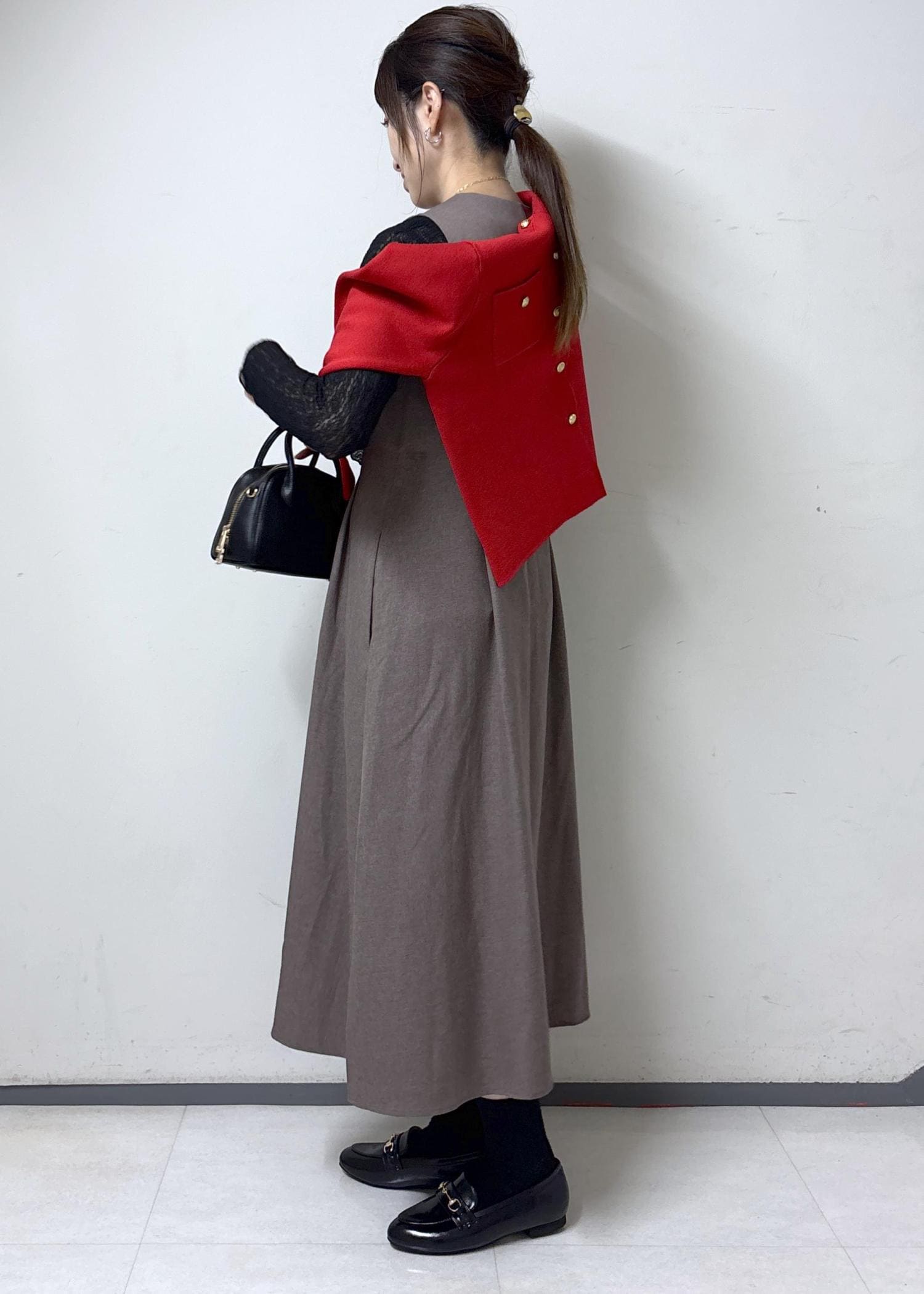 シンプルなコーディネートに赤のカーデを羽織るだけでアクセントになり、ワンランク上のお散歩コーデになりました♪♪