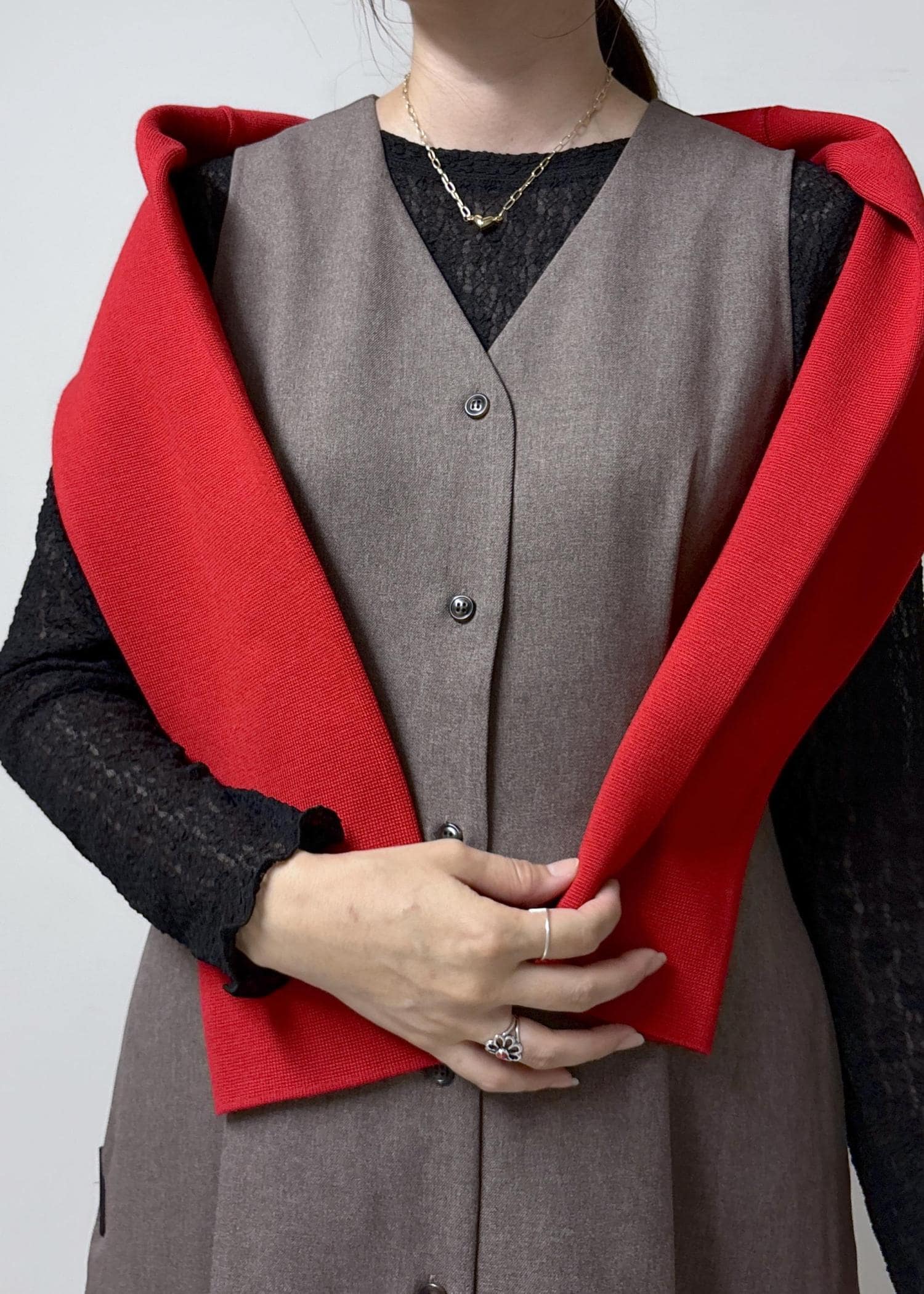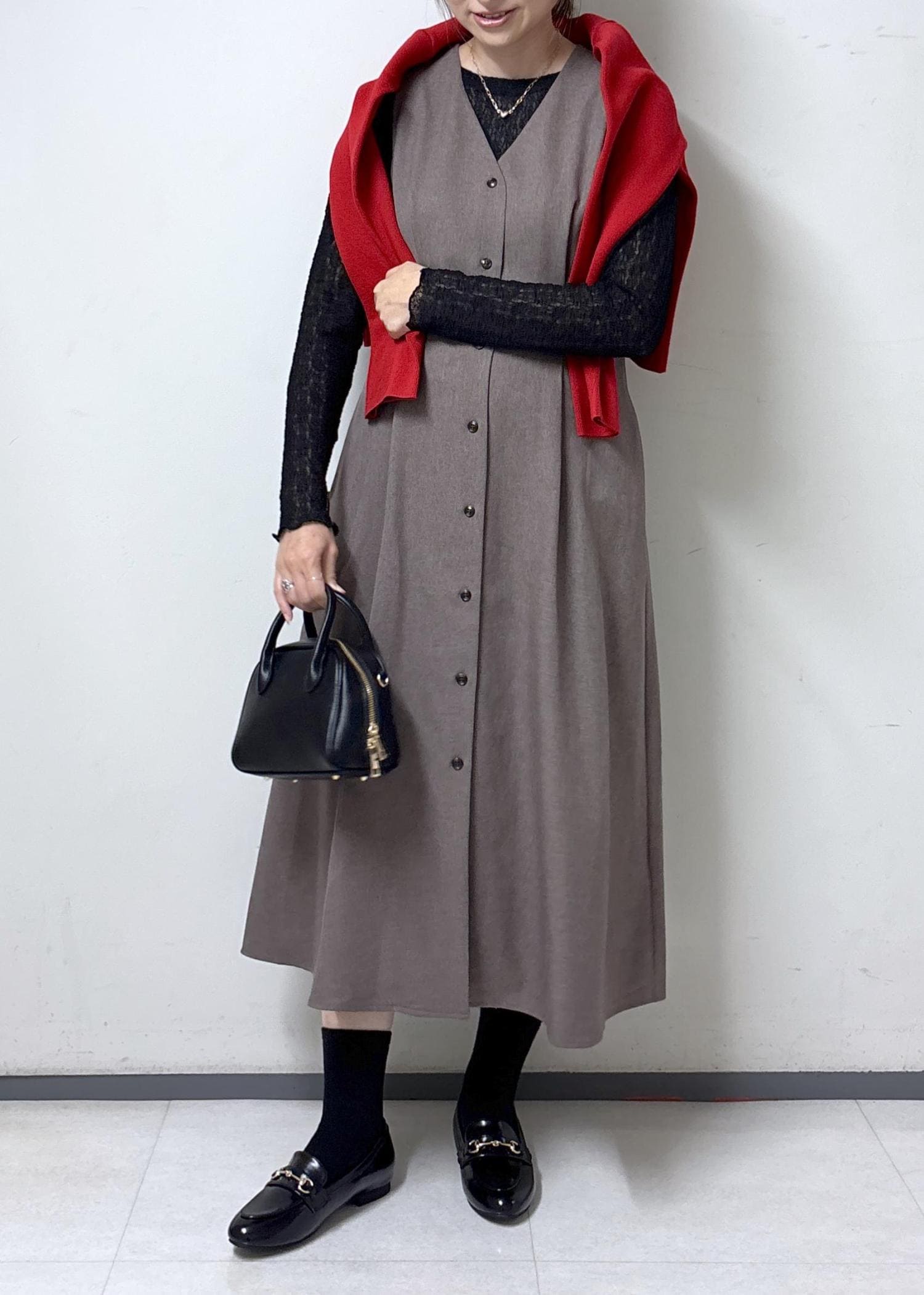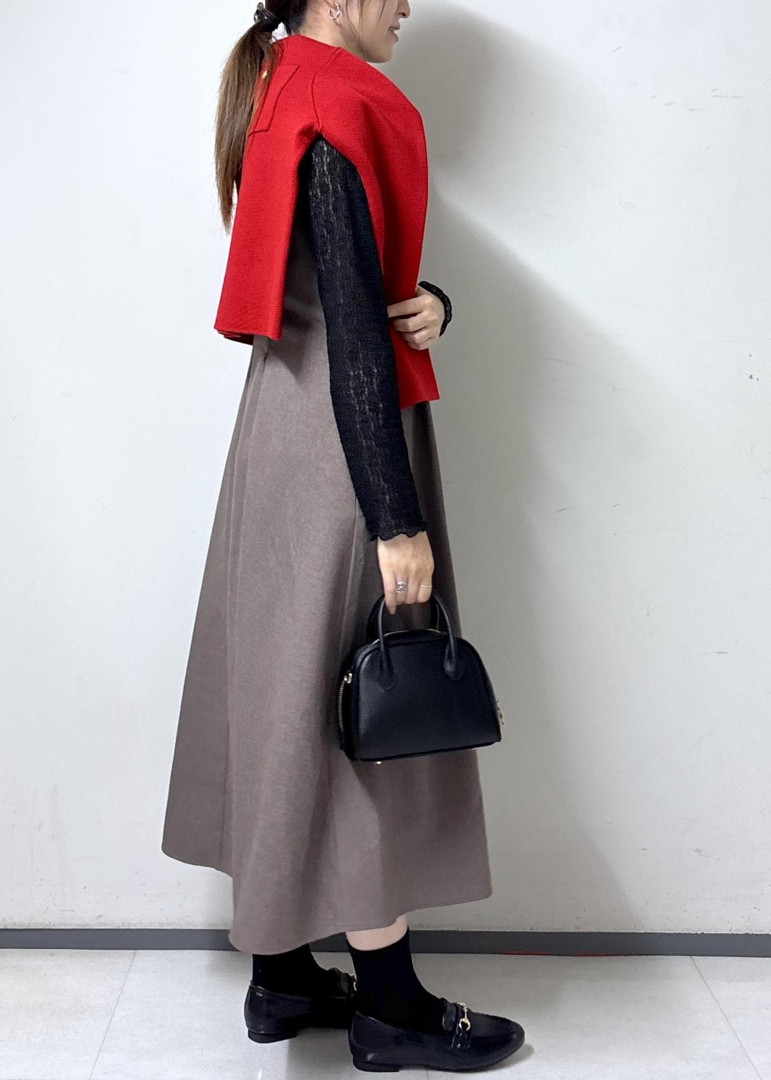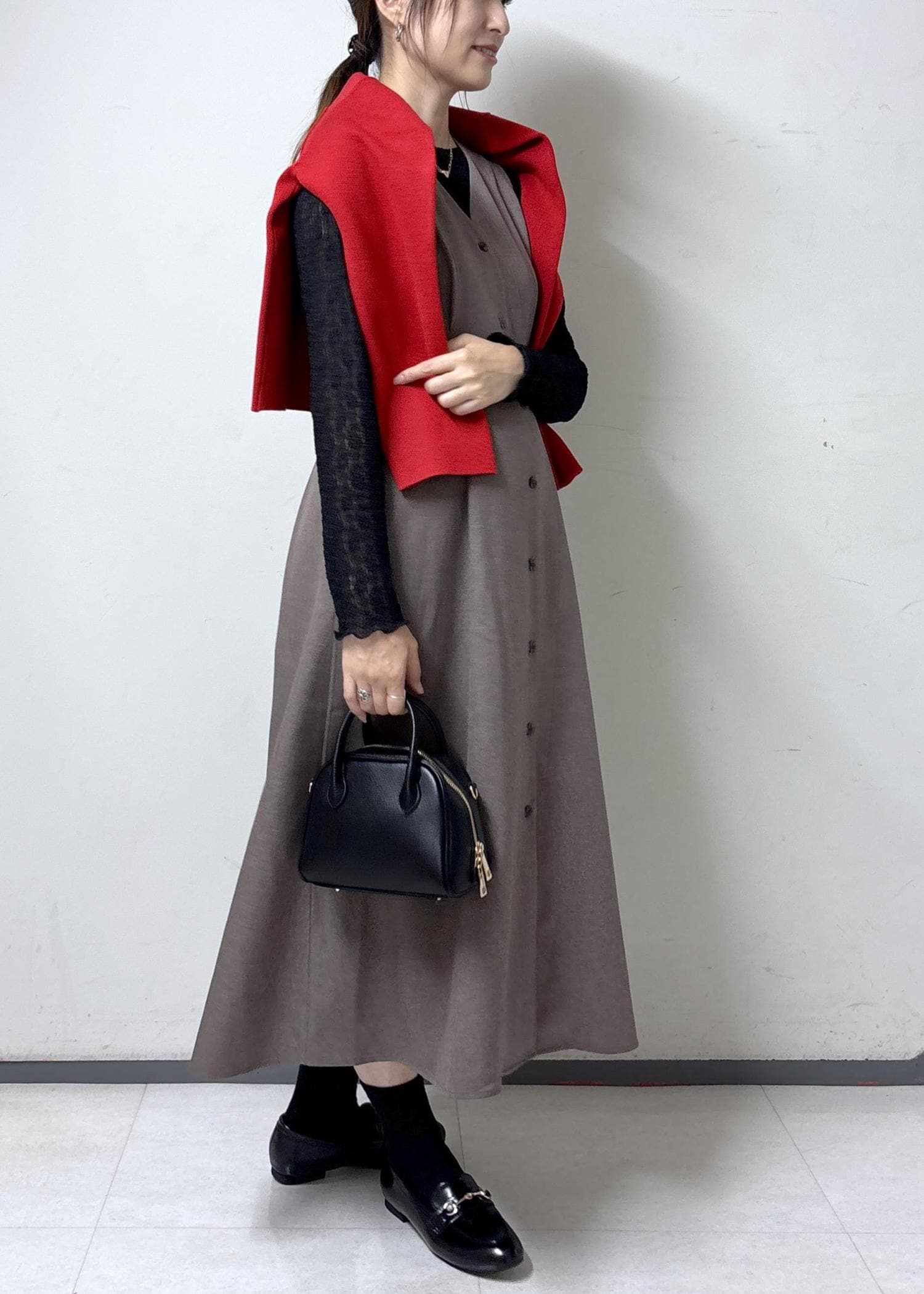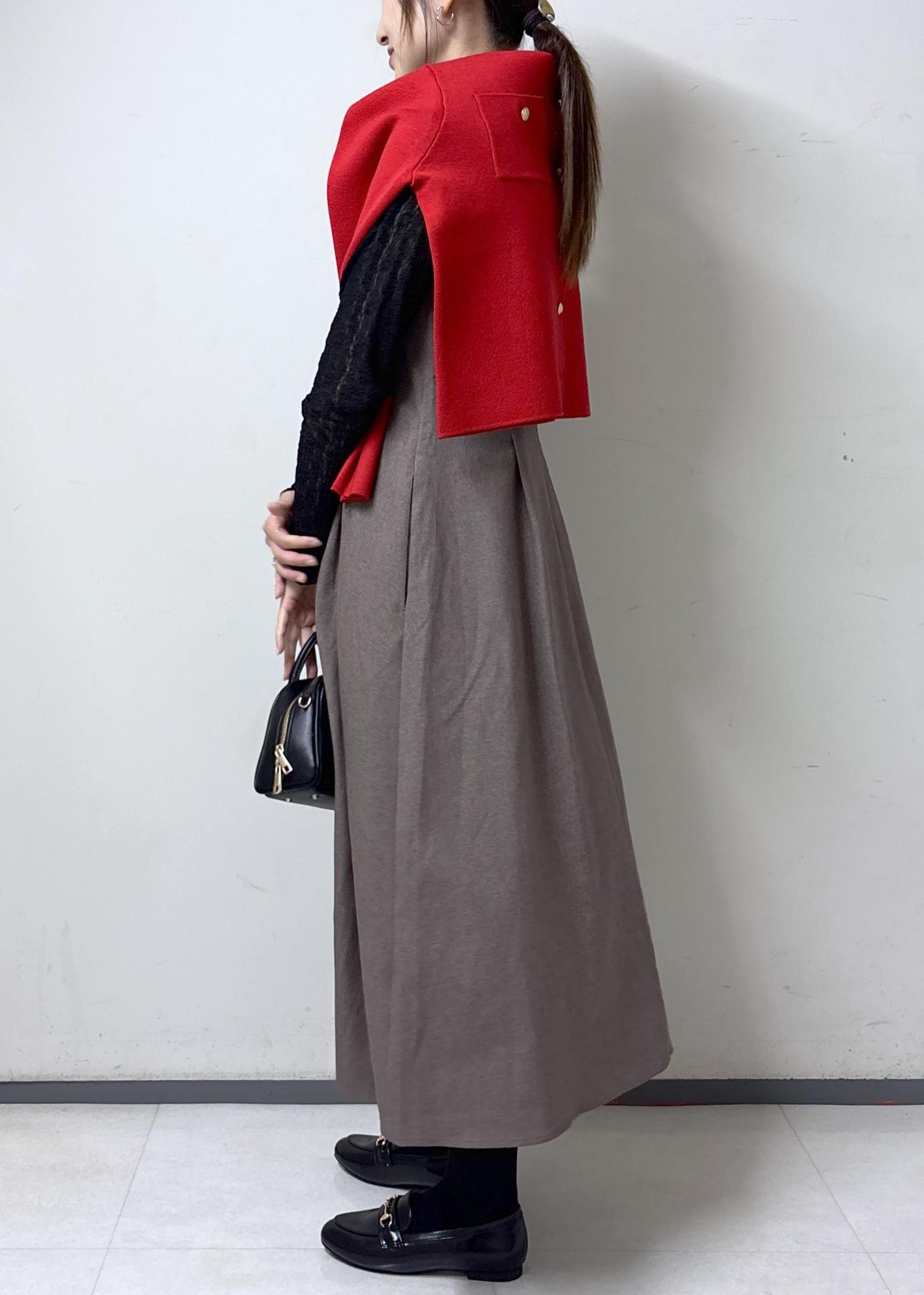 インナーとのレイヤードも楽しめブラウス合わせやカットソー合わせなど、合わせる物で雰囲気の変わる1着となっております。