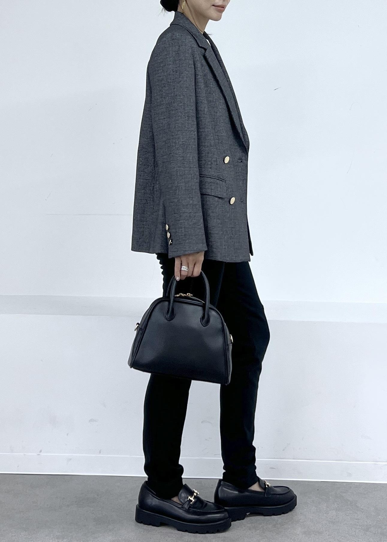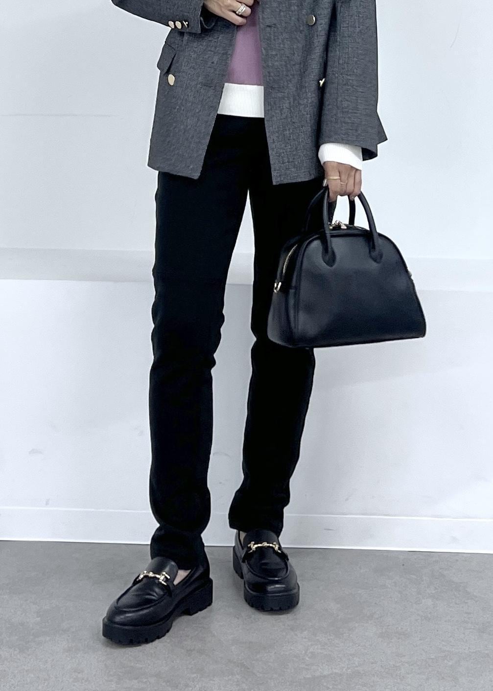 ローファーとボストンバッグでクラシカルな着こなしにしました。