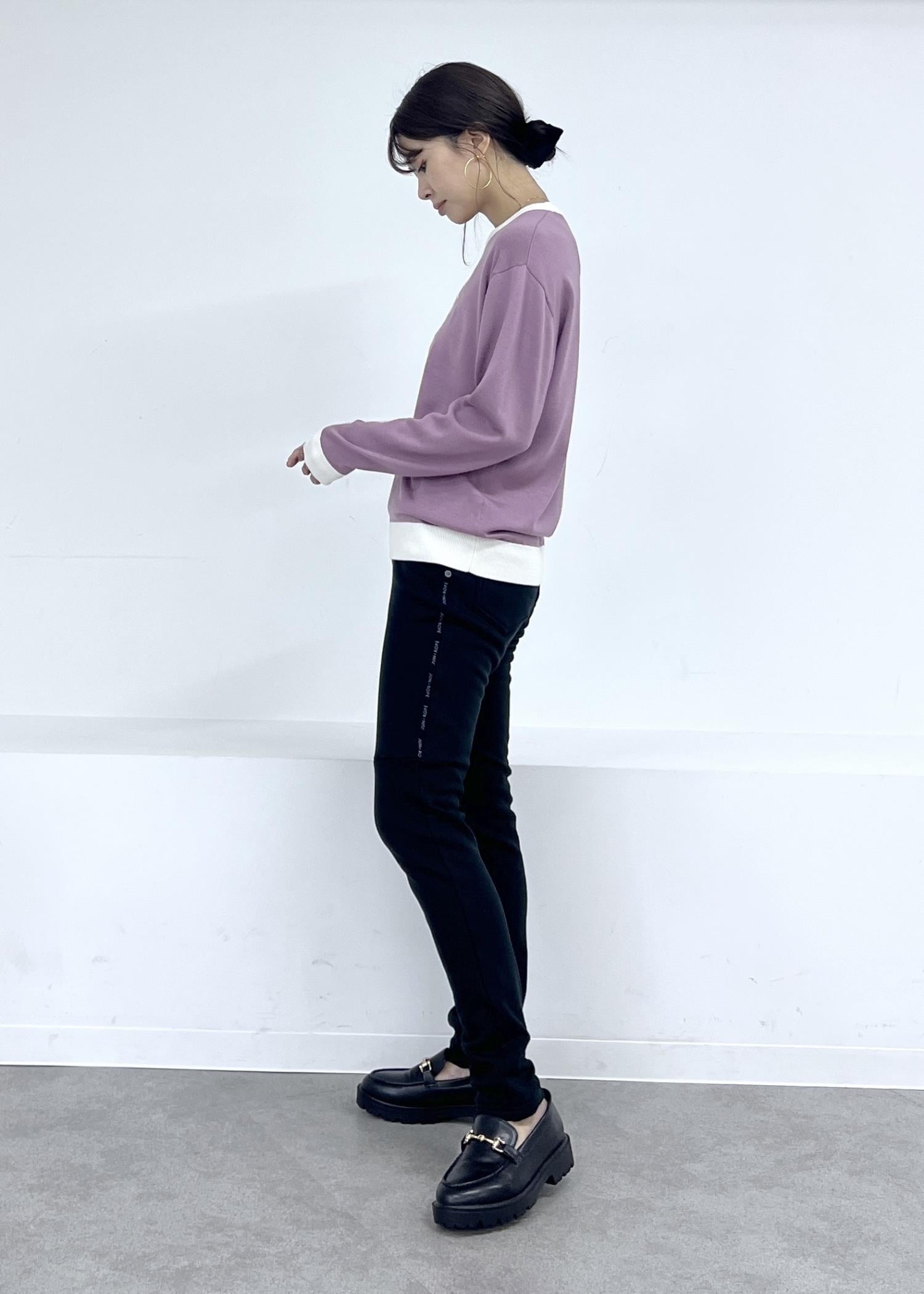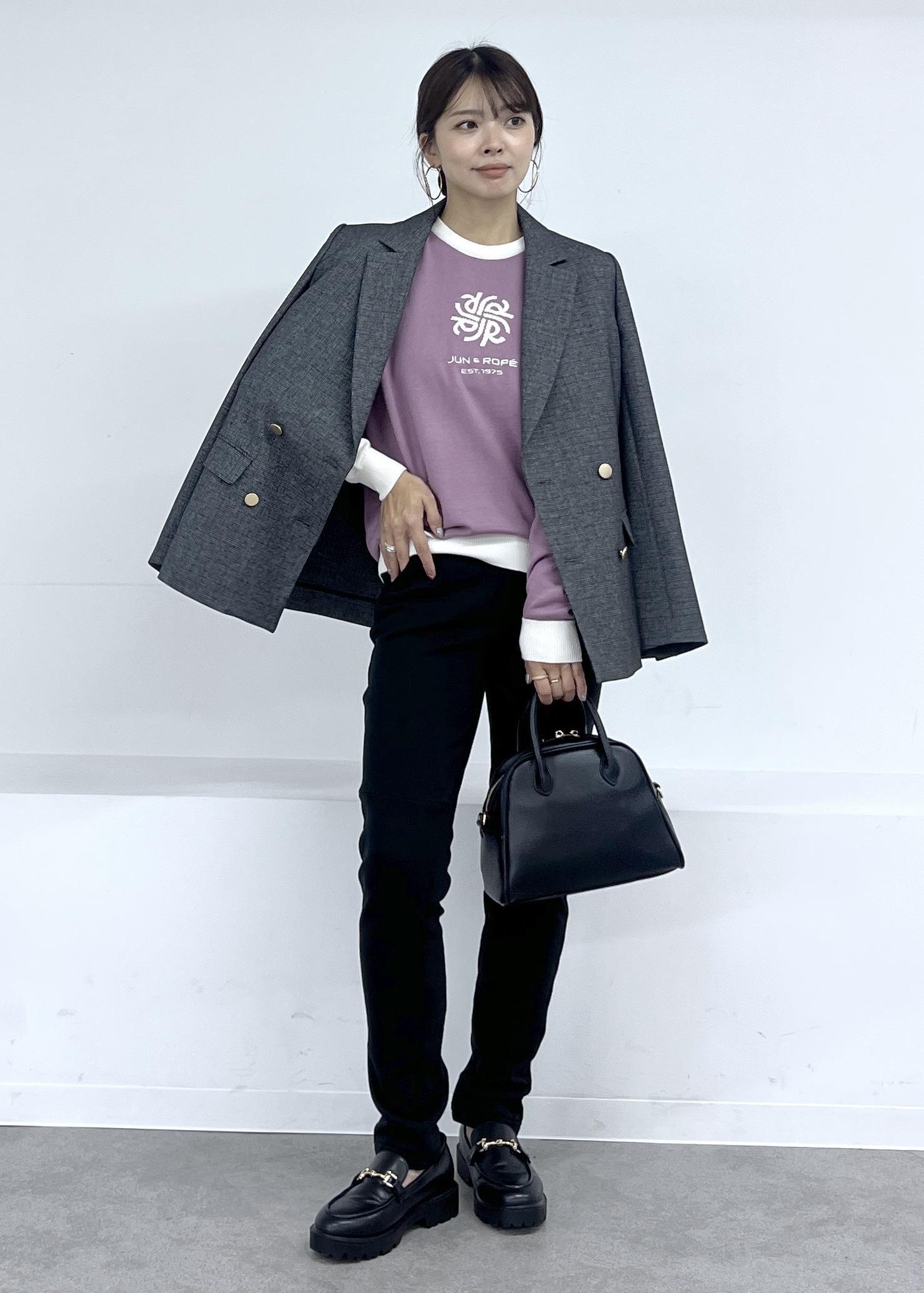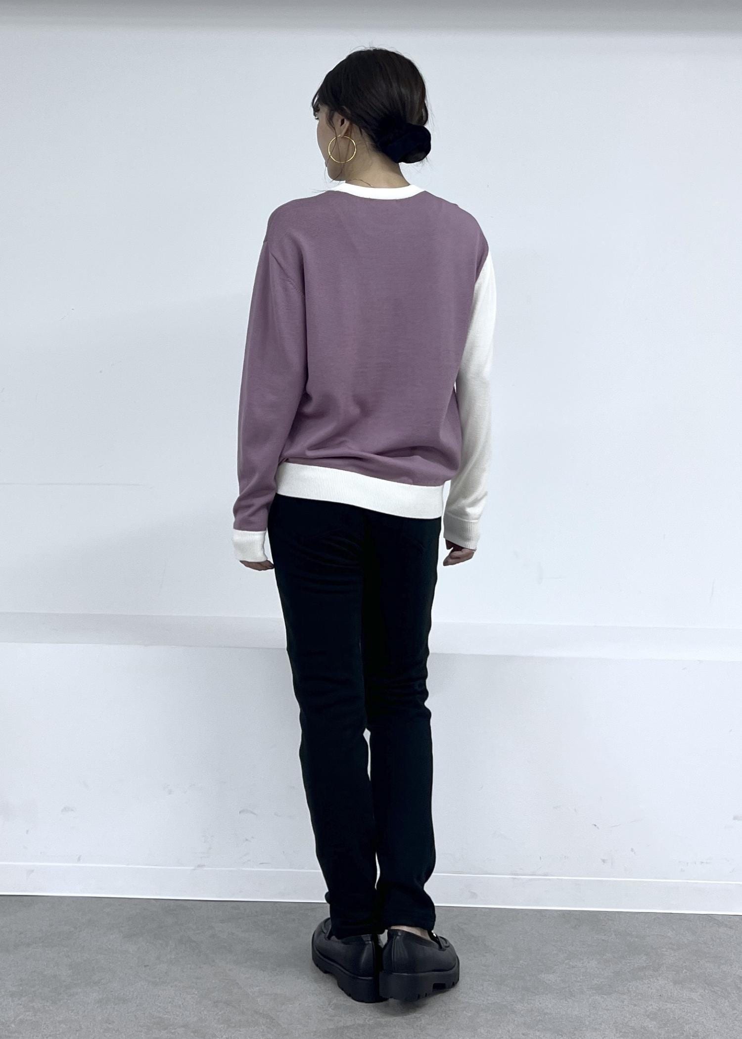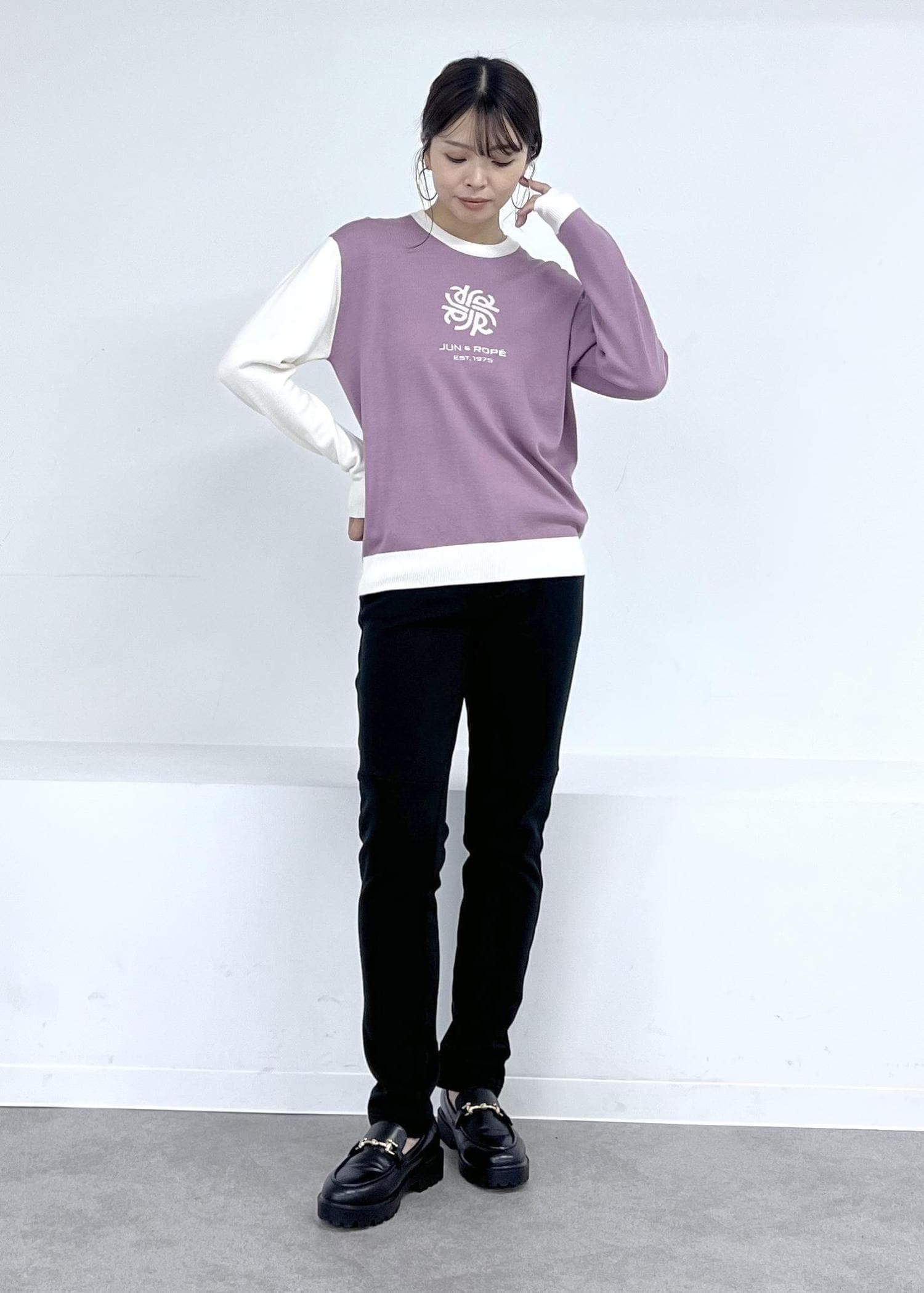 Jun & Ropéモノグラムモチーフ配色長袖クルーニットラベンダー / M¥27,500レビューウール100%のビエラヤーンを使った生地で、厚すぎない生地で暖かい着心地。