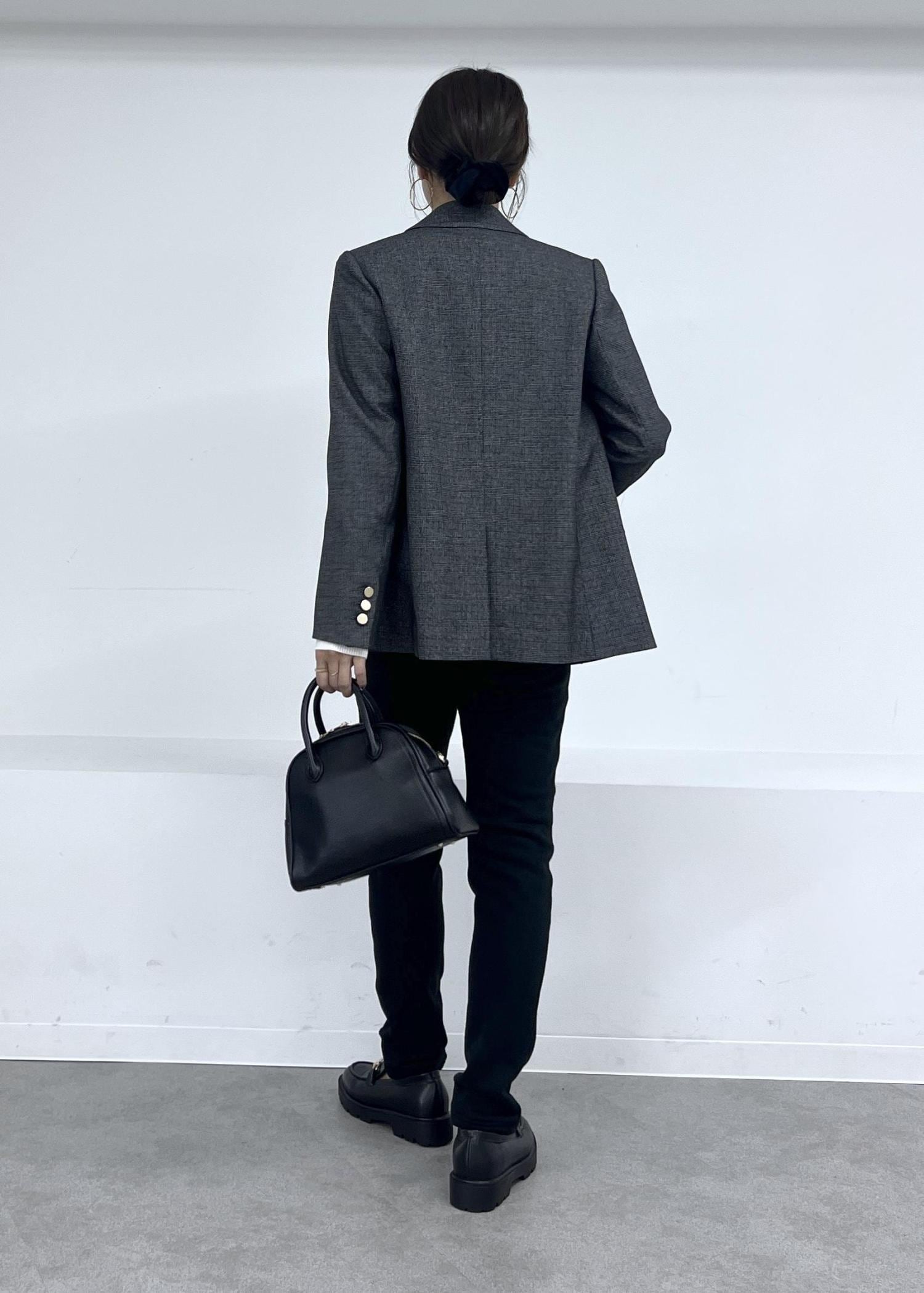 身幅はほどよくゆとりがあるので、ニットをインしても羽織りやすいです。