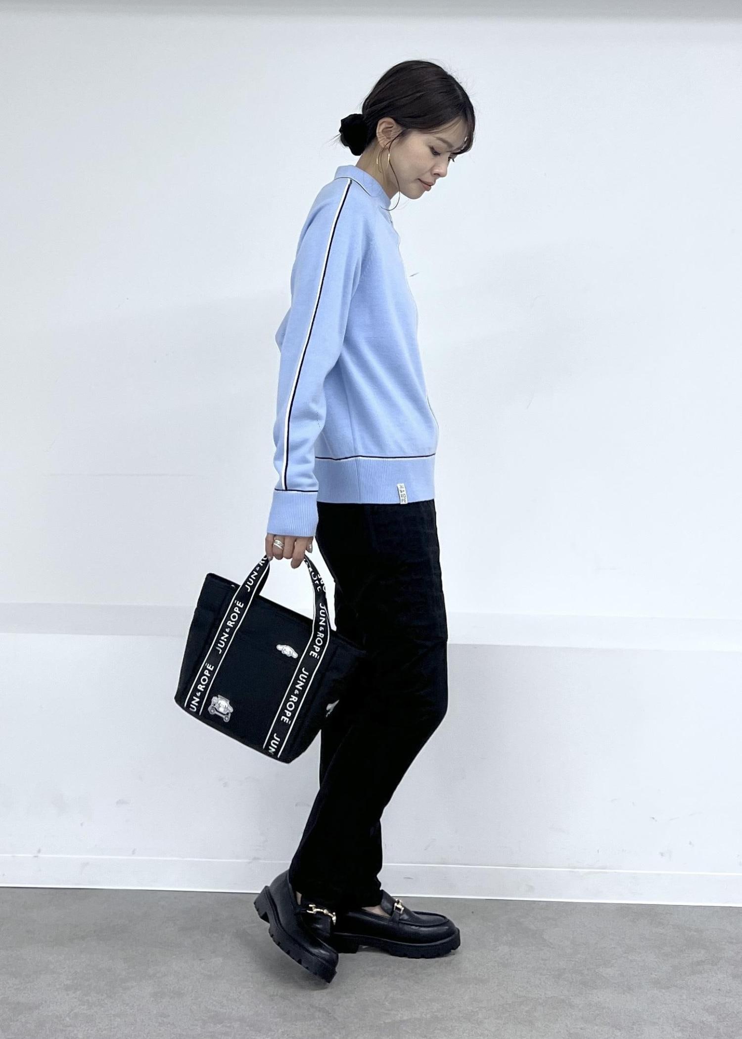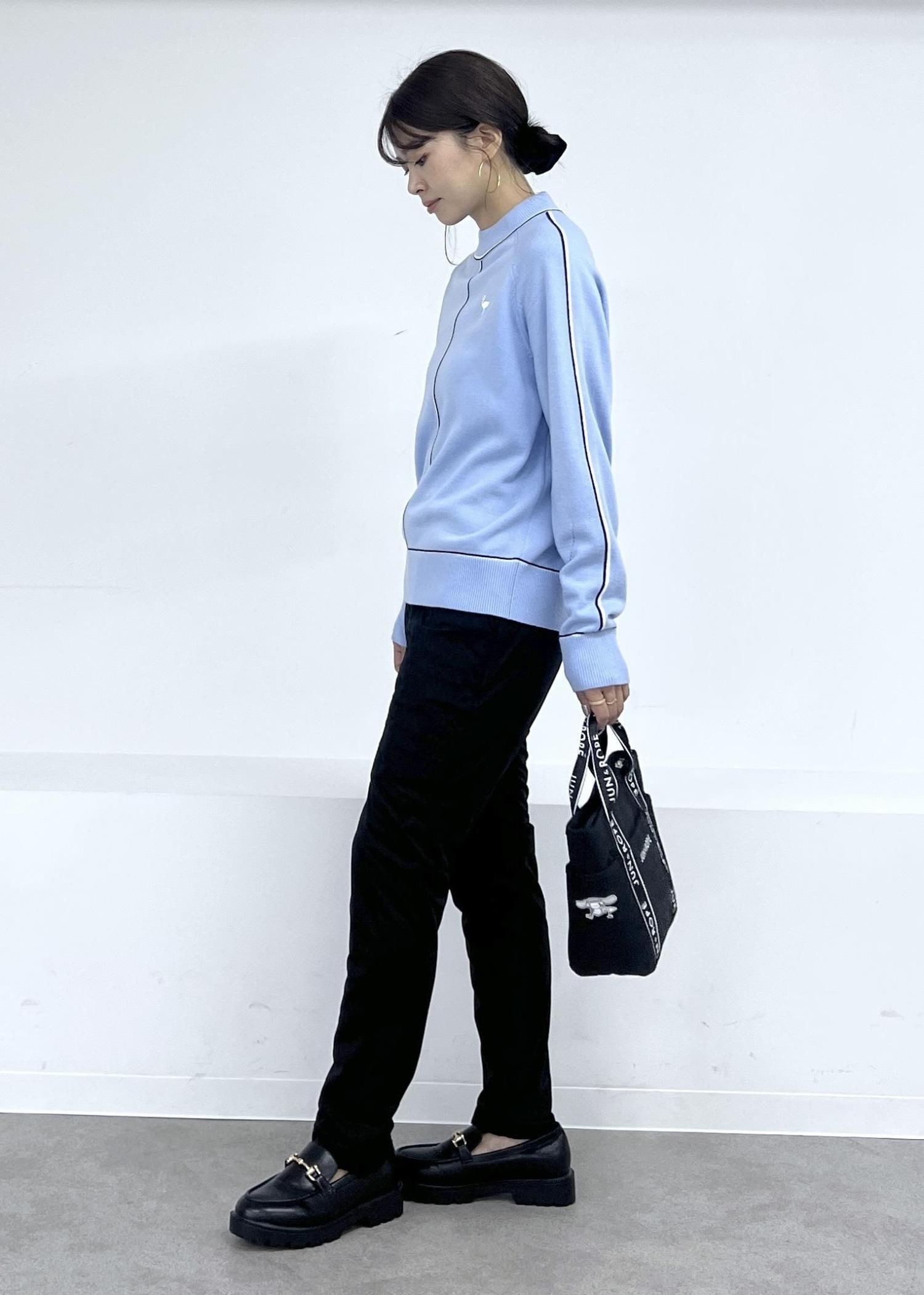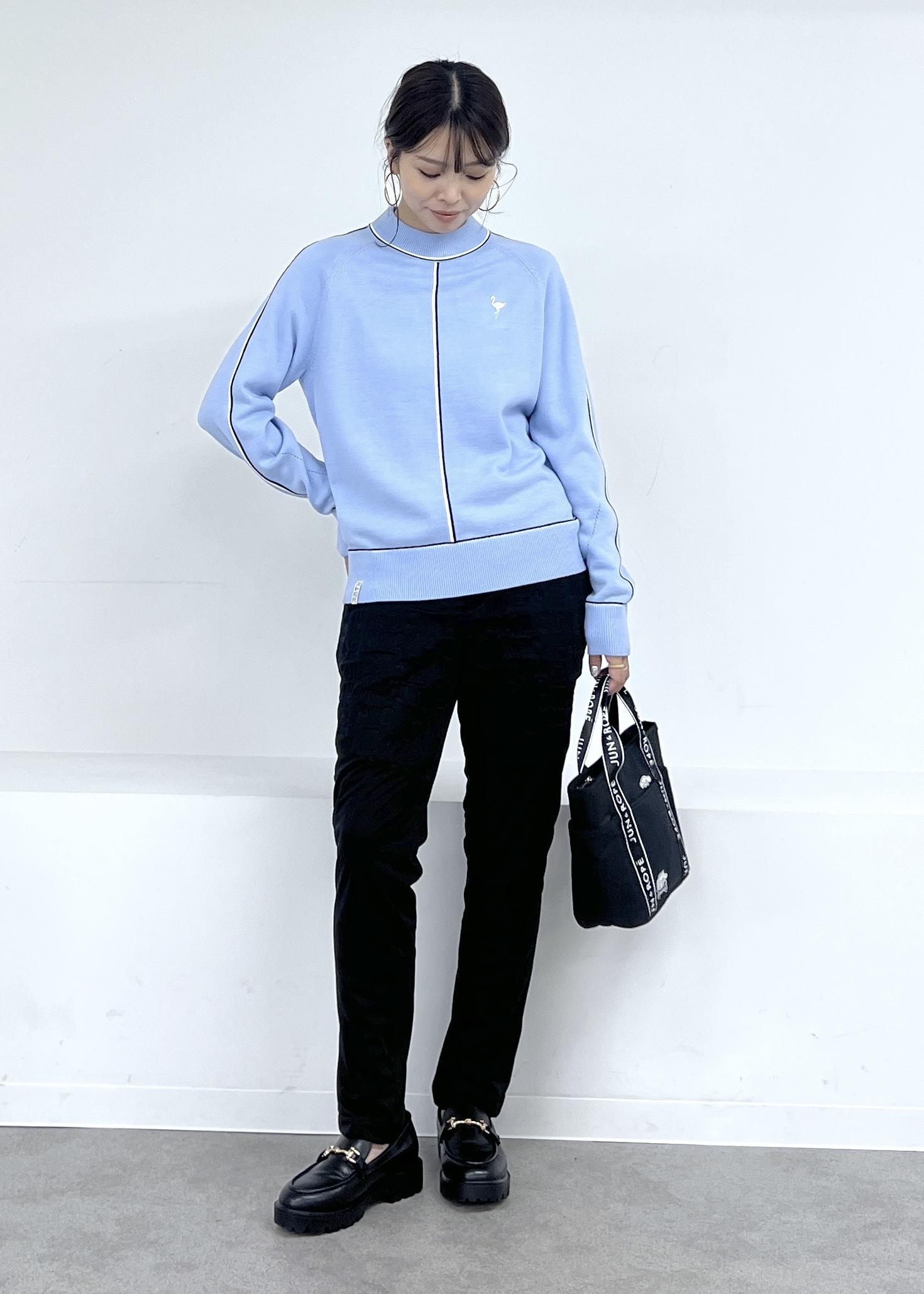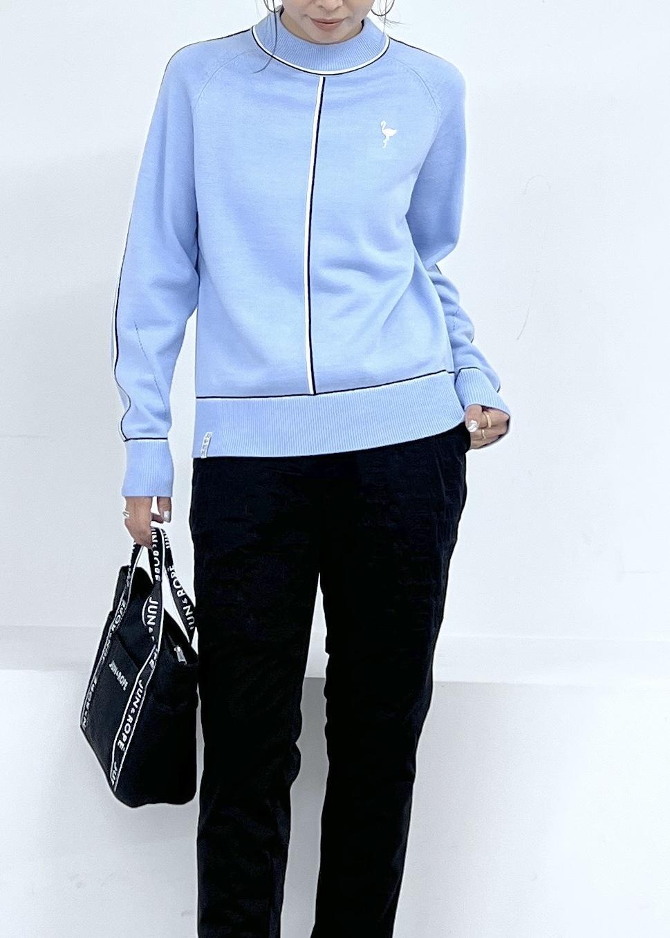 Jun & Ropé配色ライン使いモックニットサックス / M¥23,100レビューウール混合のニット素材で、厚すぎない生地ですがしっかり暖かみのある生地感。