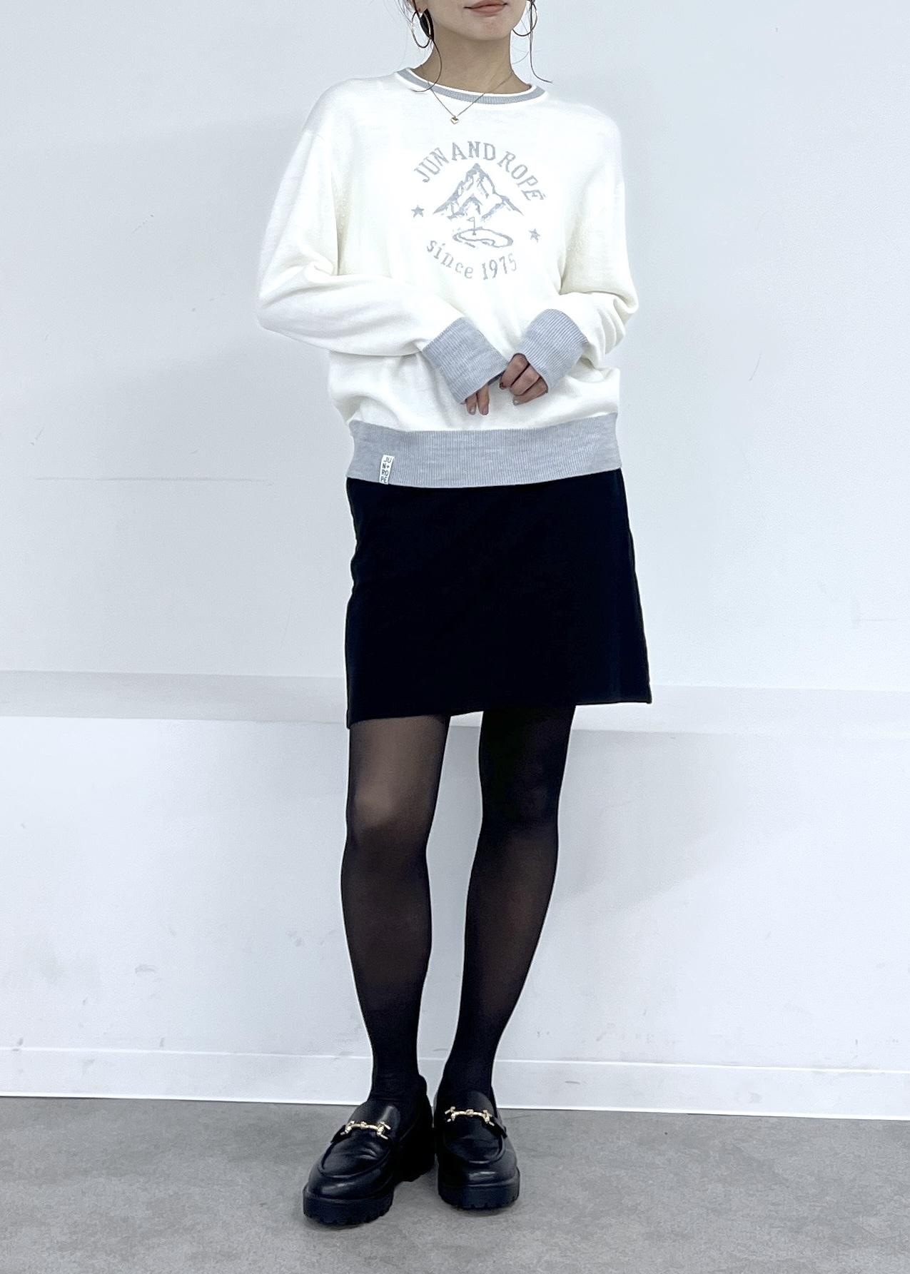 Jun & Ropéマウンテン柄クルーネックニットホワイト / M¥25,300レビュー暖かみのあるウール混合素材で、しっかりしたハイゲージニット素材。