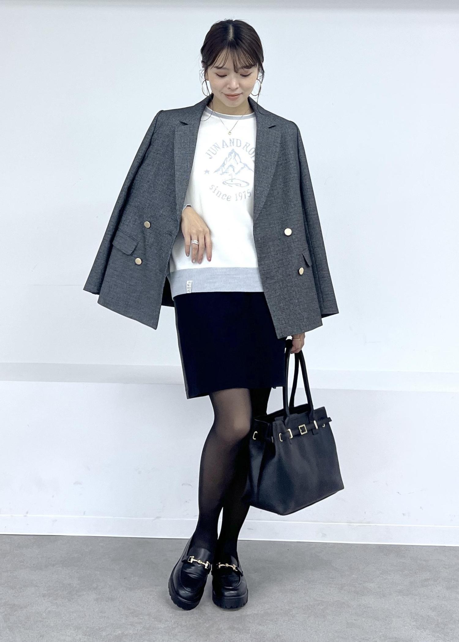 長すぎない着丈なので、オンオフ両方で合わせやすい丈感。 -
