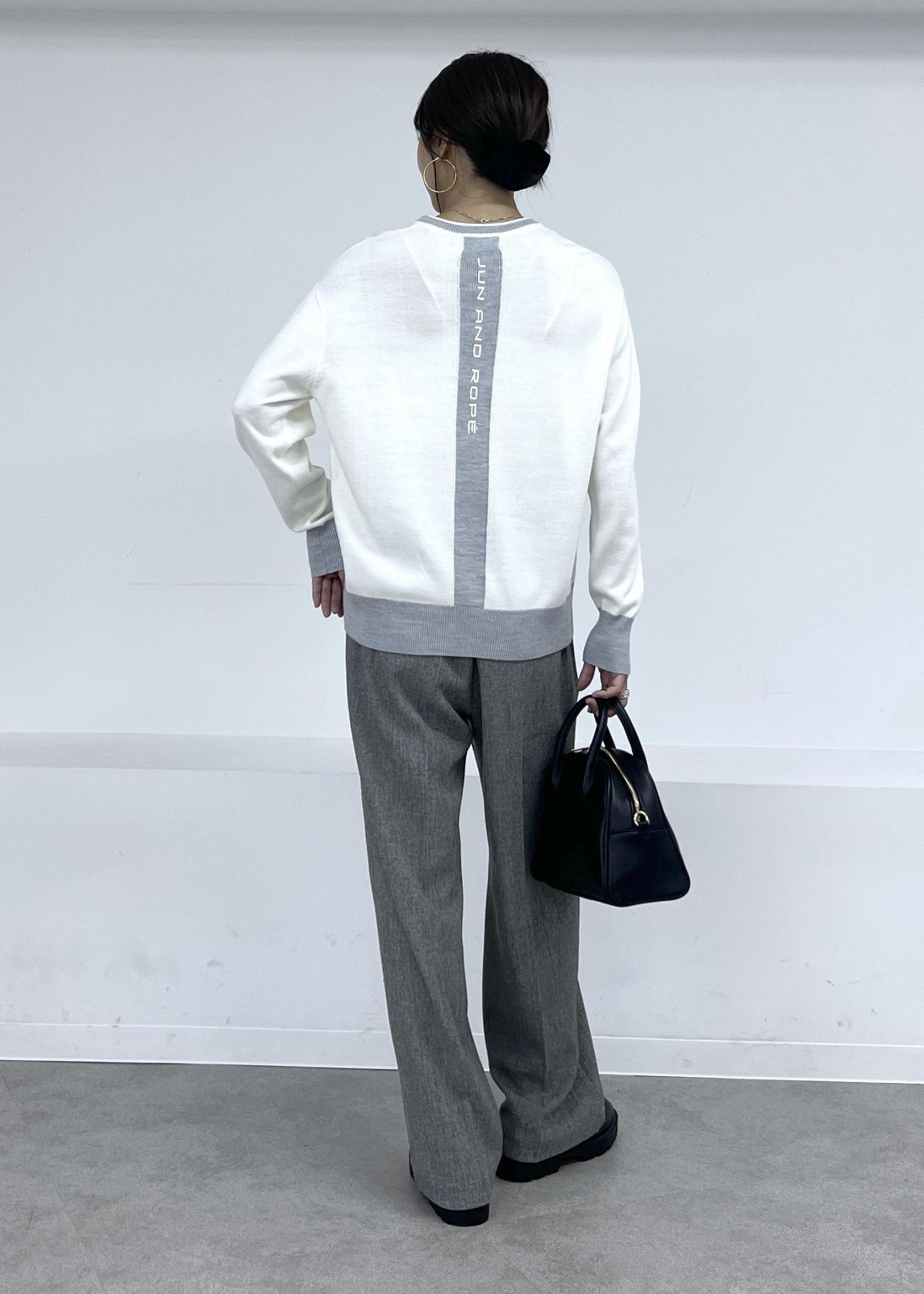 Jun & Ropéマウンテン柄クルーネックニットホワイト / M¥25,300レビュー暖かみのあるウール混合素材で、しっかりしたハイゲージニット素材。