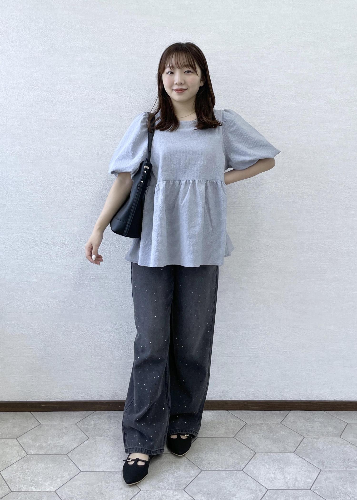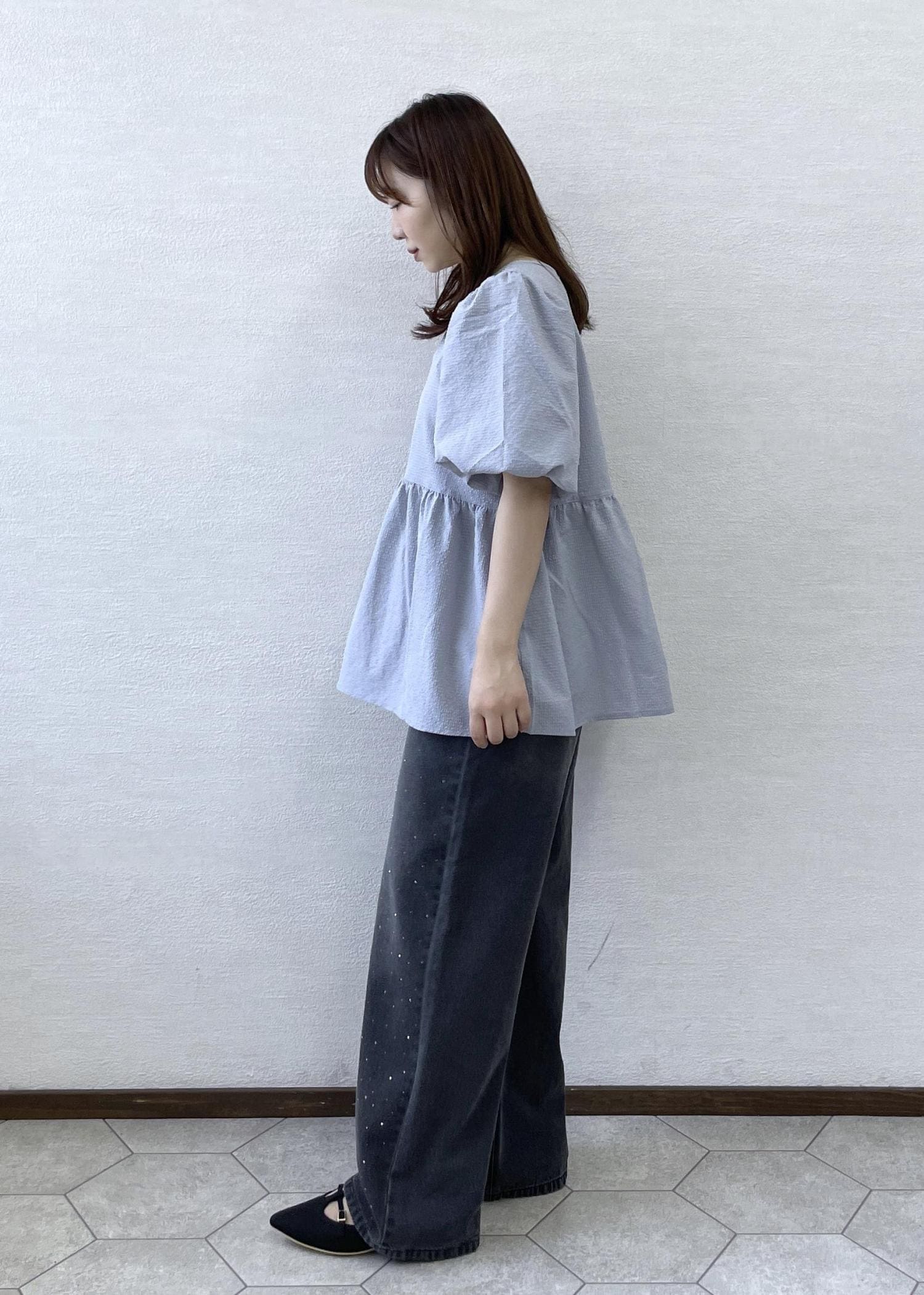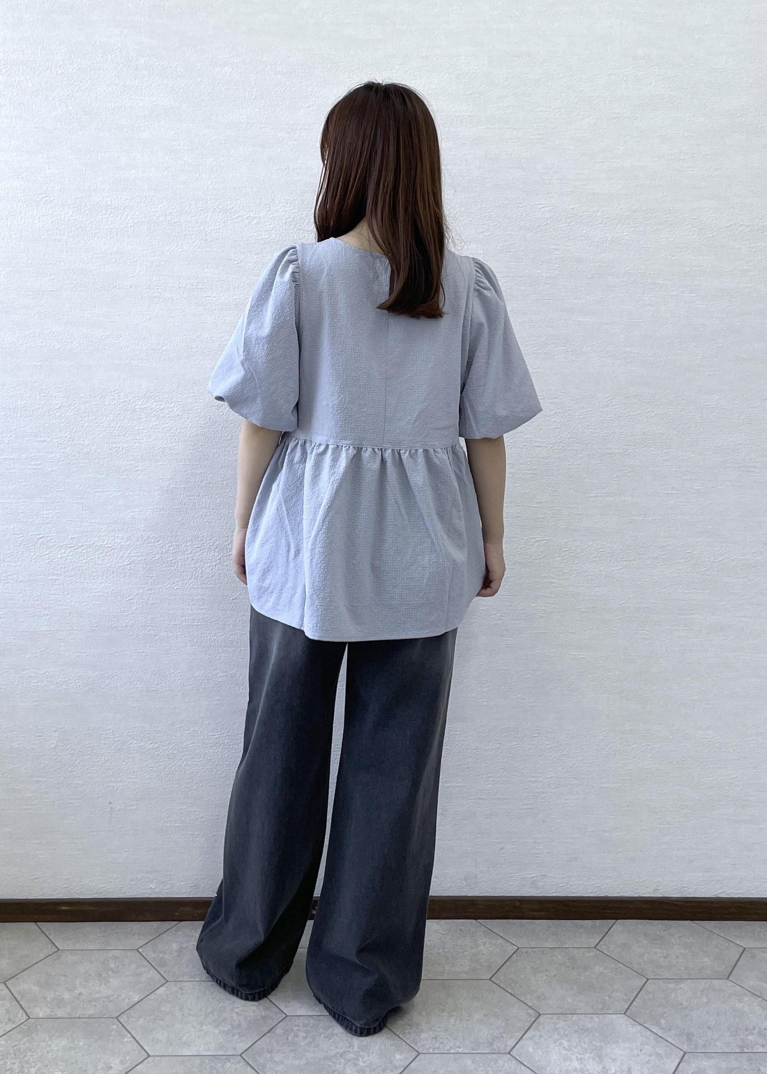 ROPÉ PICNICバルーンペプラムブラウスサックス / 38¥4,499レビュー袖の部分がふんわりしていて可愛いです!中の生地がメッシュになっているのでさらっとしていて涼しいです!