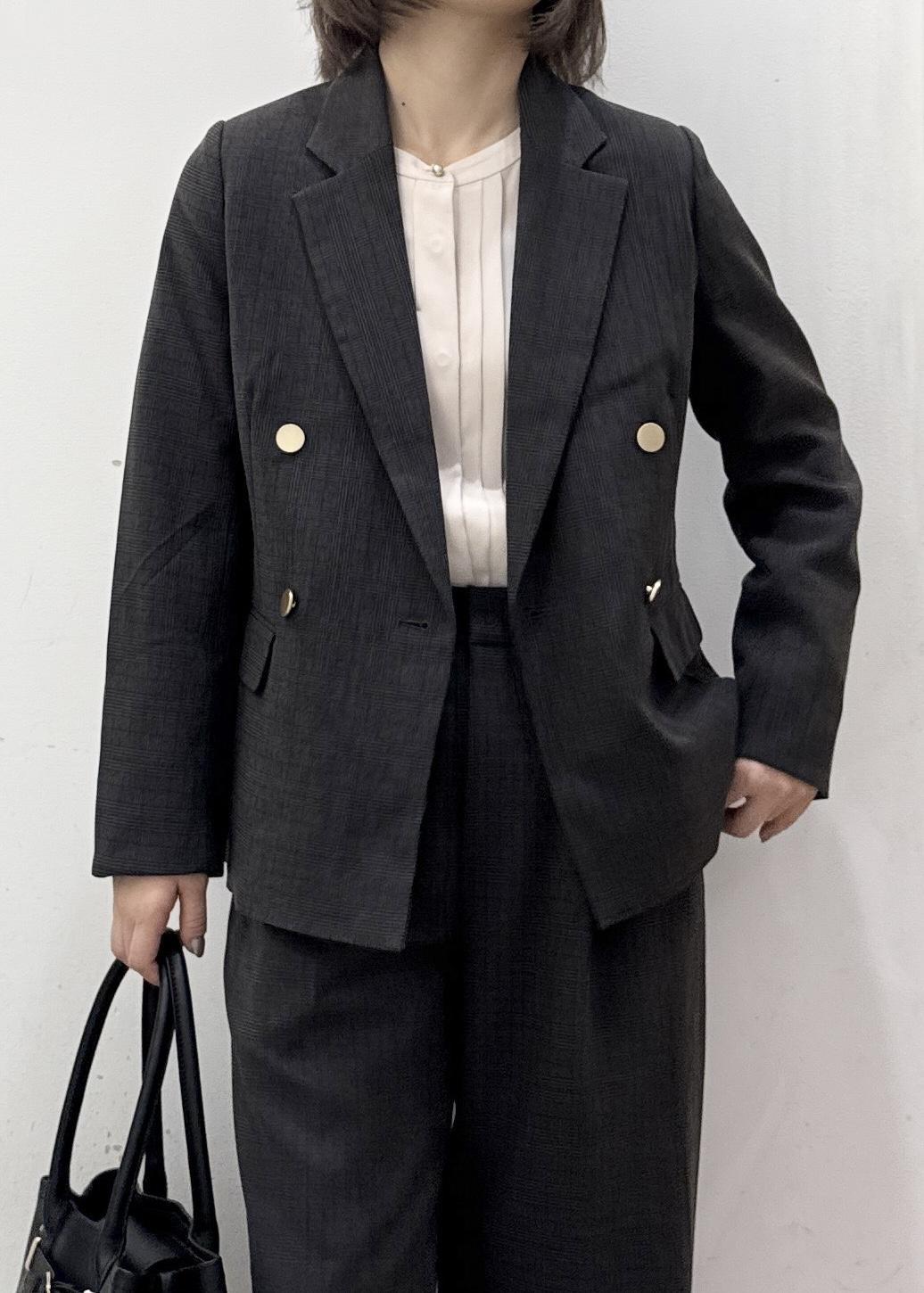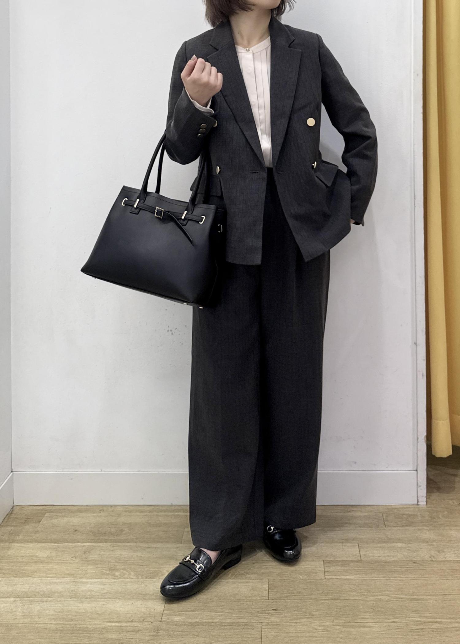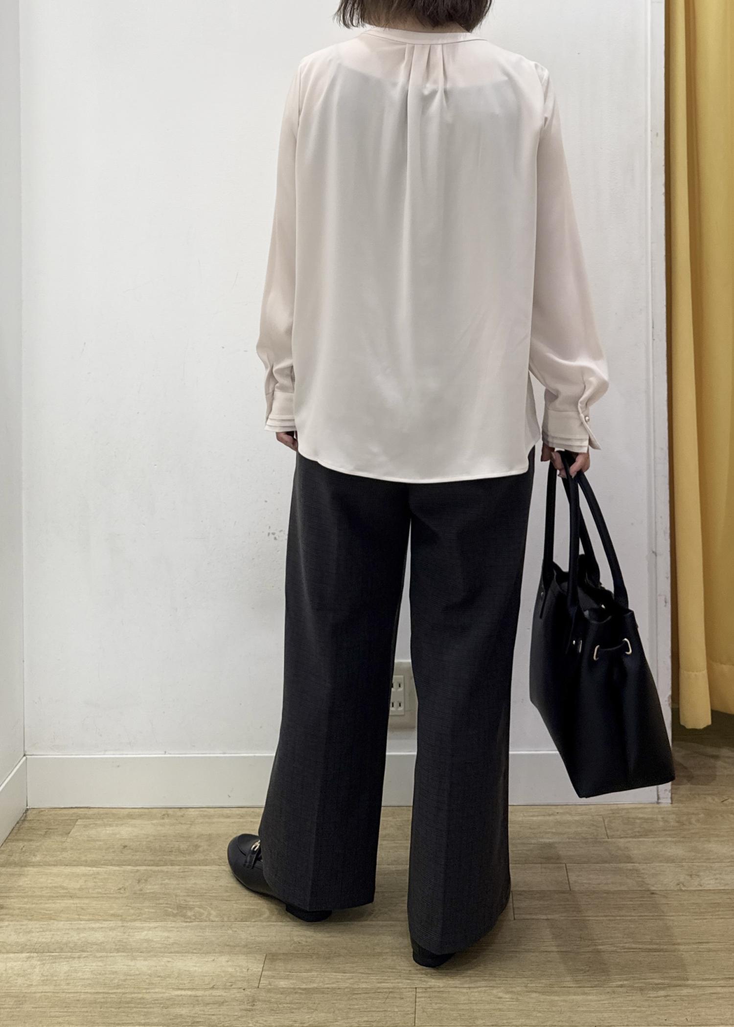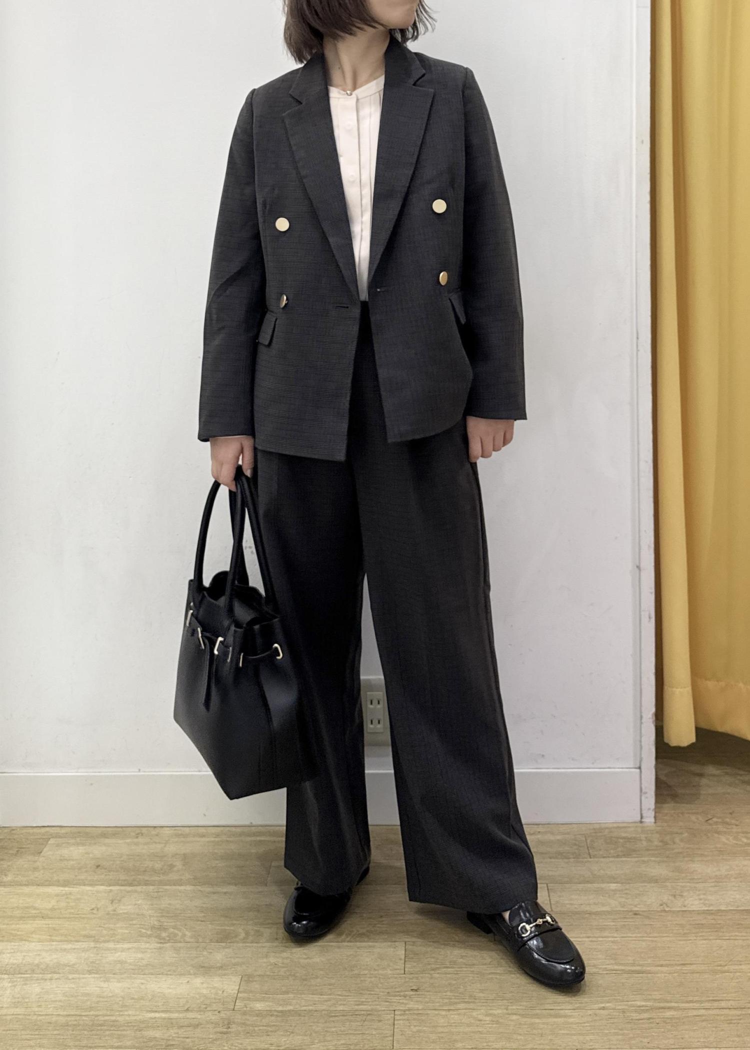 通常サイズに比べると肩幅や身幅は少しコンパクトですが、全体のサイズ感もブラウスや薄手のニット合わせで窮屈感は気にならないピッタリなサイズ感でした。 -