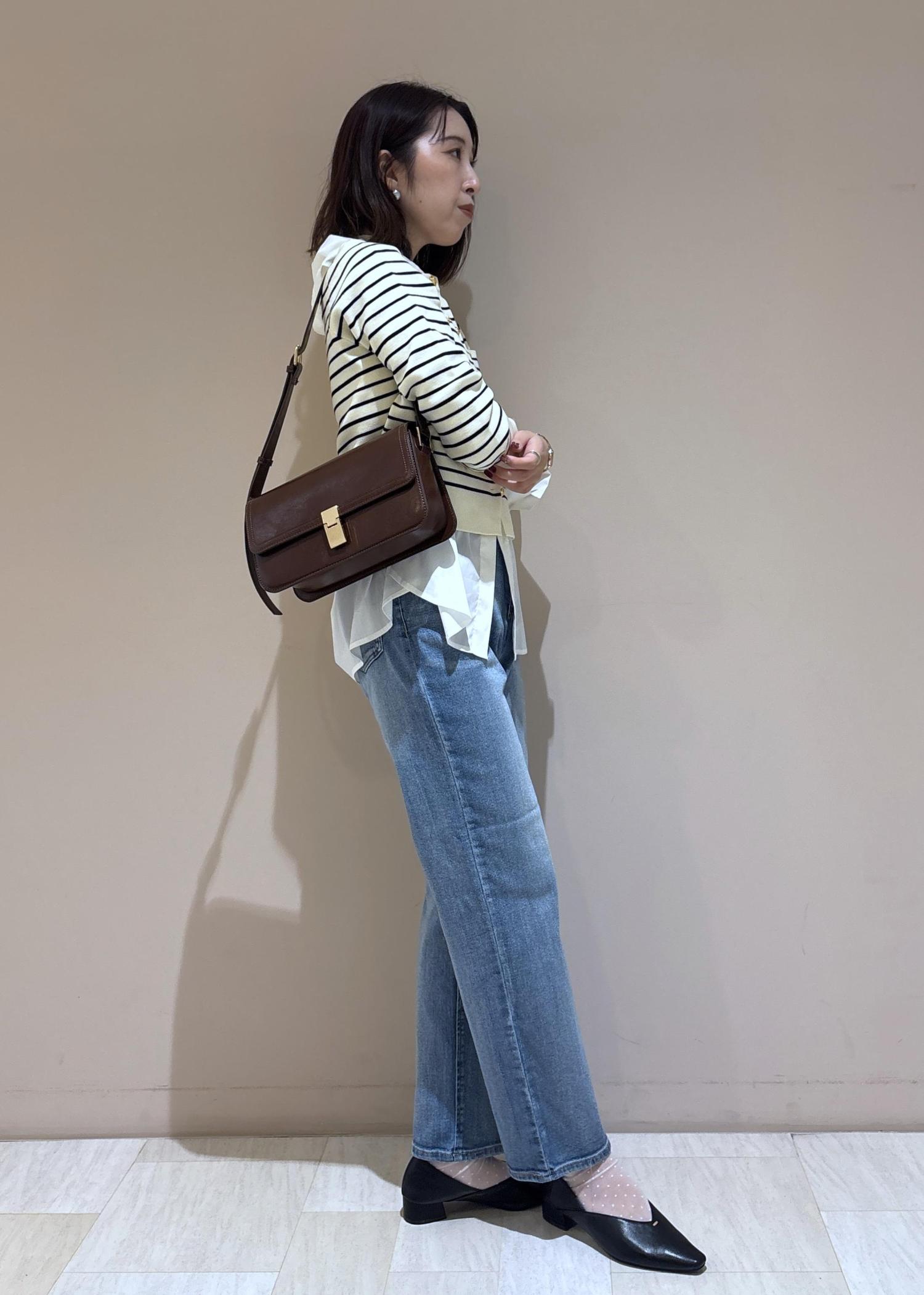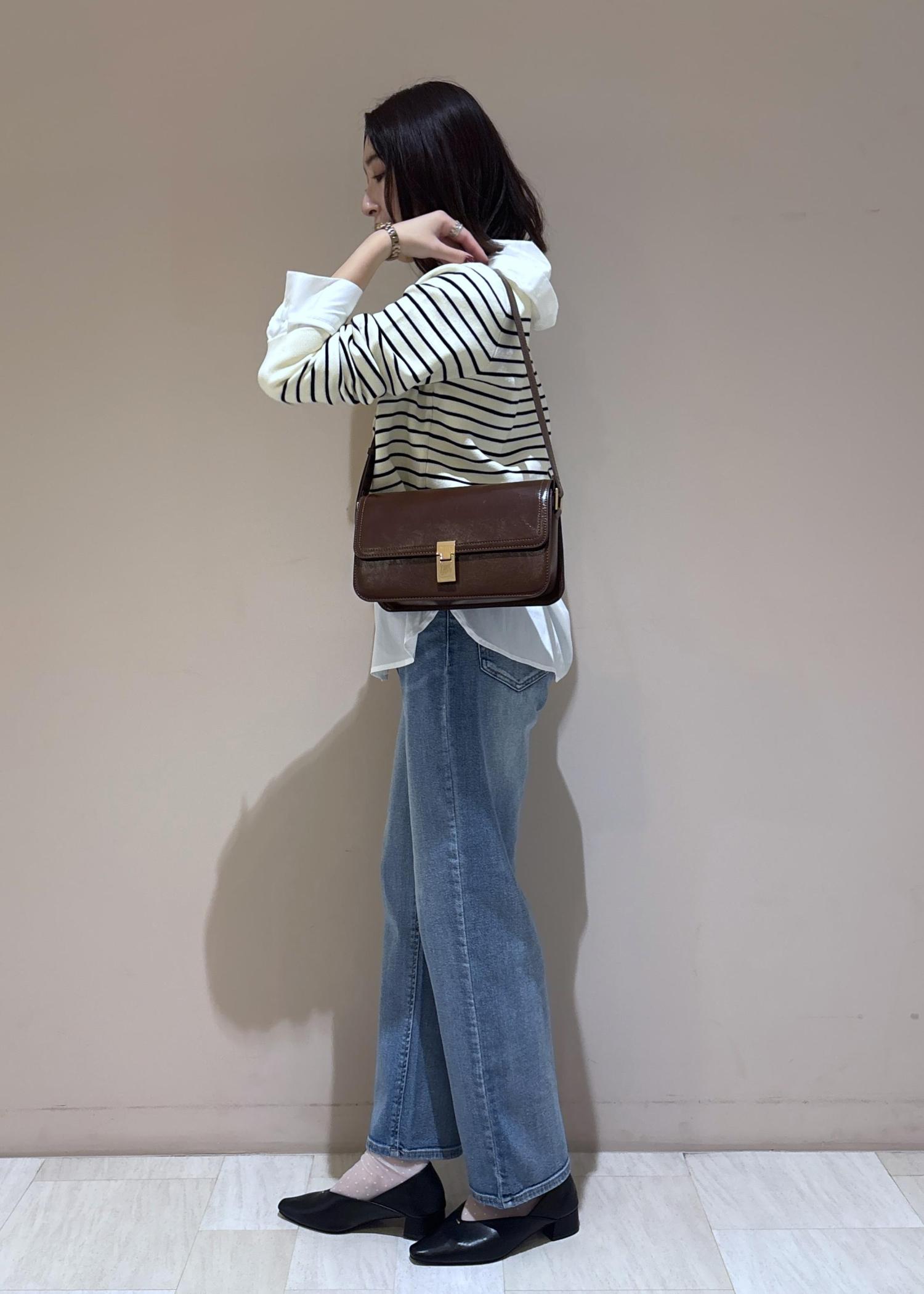 カーディガンの裾からチラッと見えるのがコーデのアクセントに。