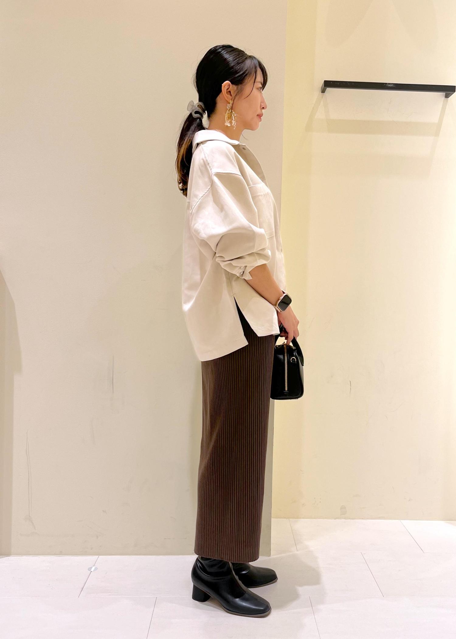 スエードシャツの柔らかい色合いをベースに、ブラウン系でまとめたコーディネートです◡̈