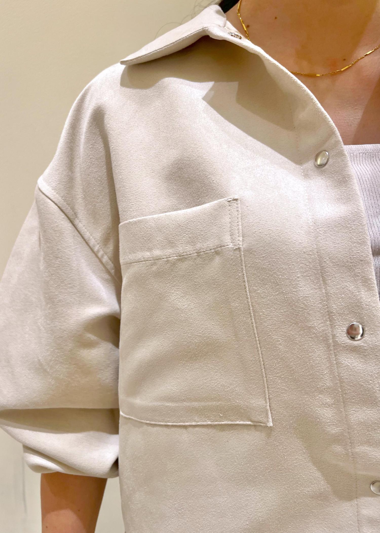 メインにも羽織にも活躍するオーバーサイズのスエードシャツ。