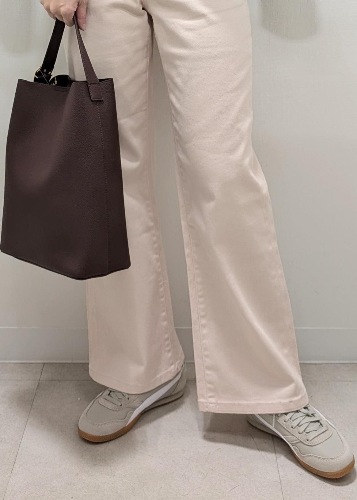 スッキリしたスニーカーですが、スニーカーなのでパンプスと違い足幅やつま先なども楽ちんです。 -