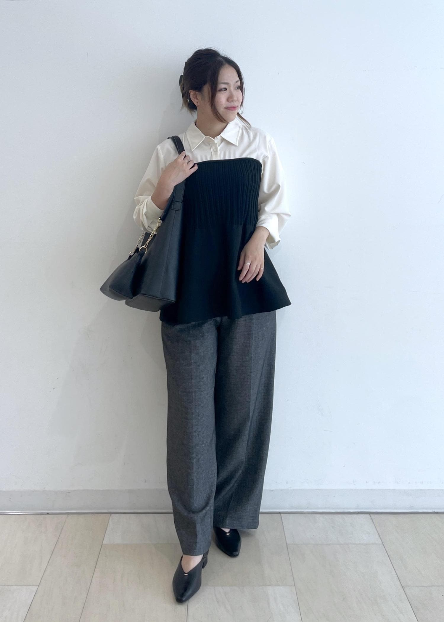 お仕事でも着れるような、オシャレに体型カバーできるコーディネートです!
