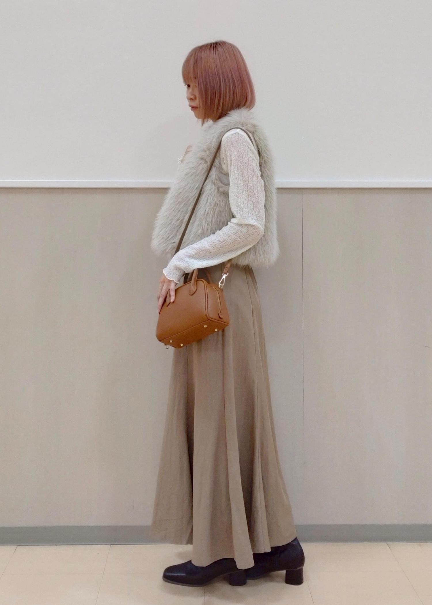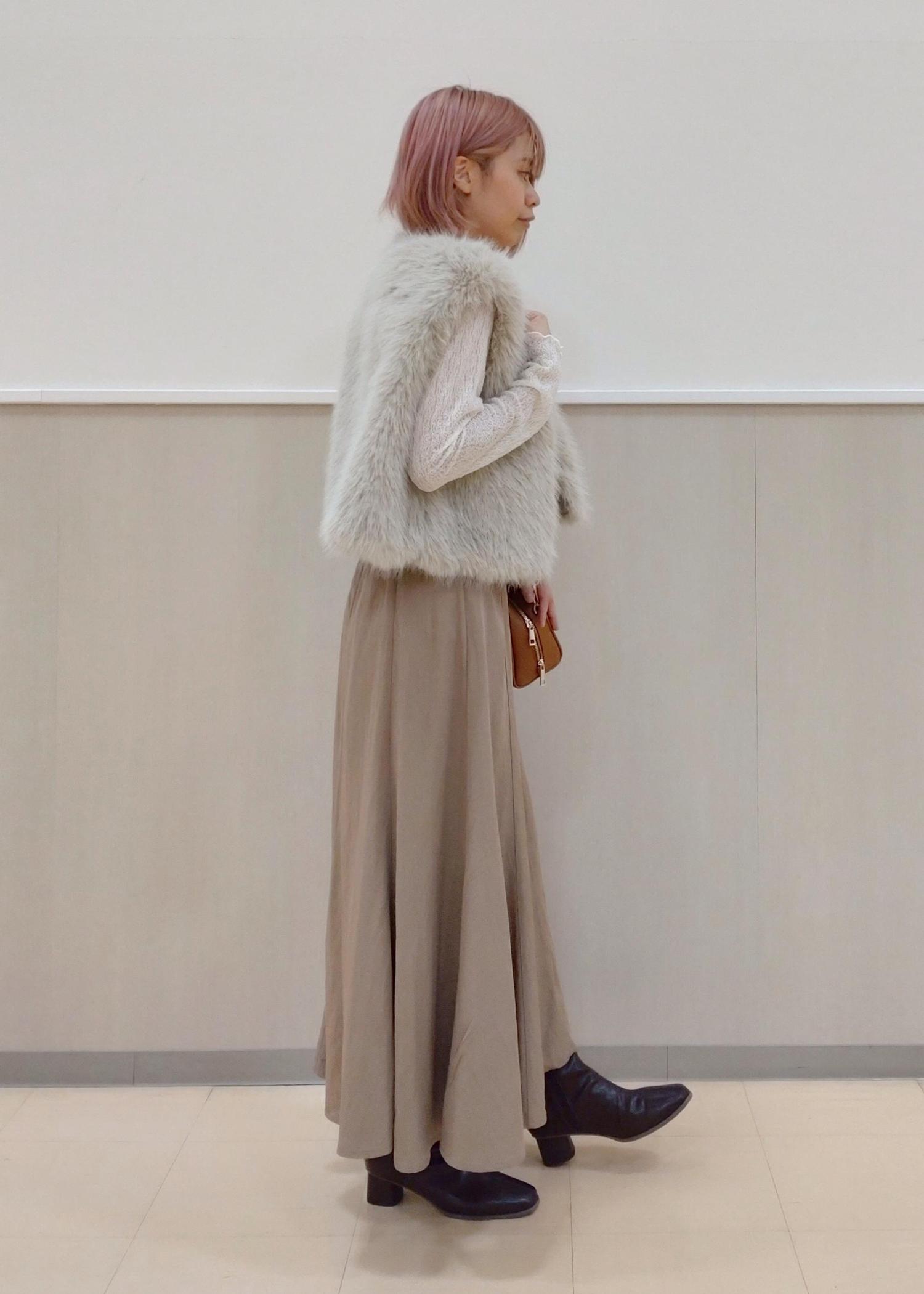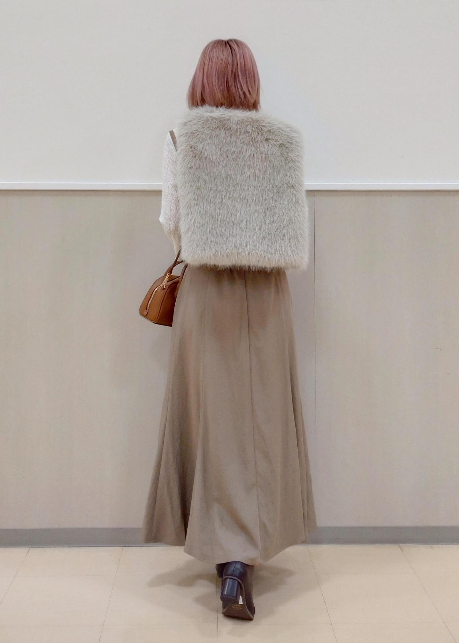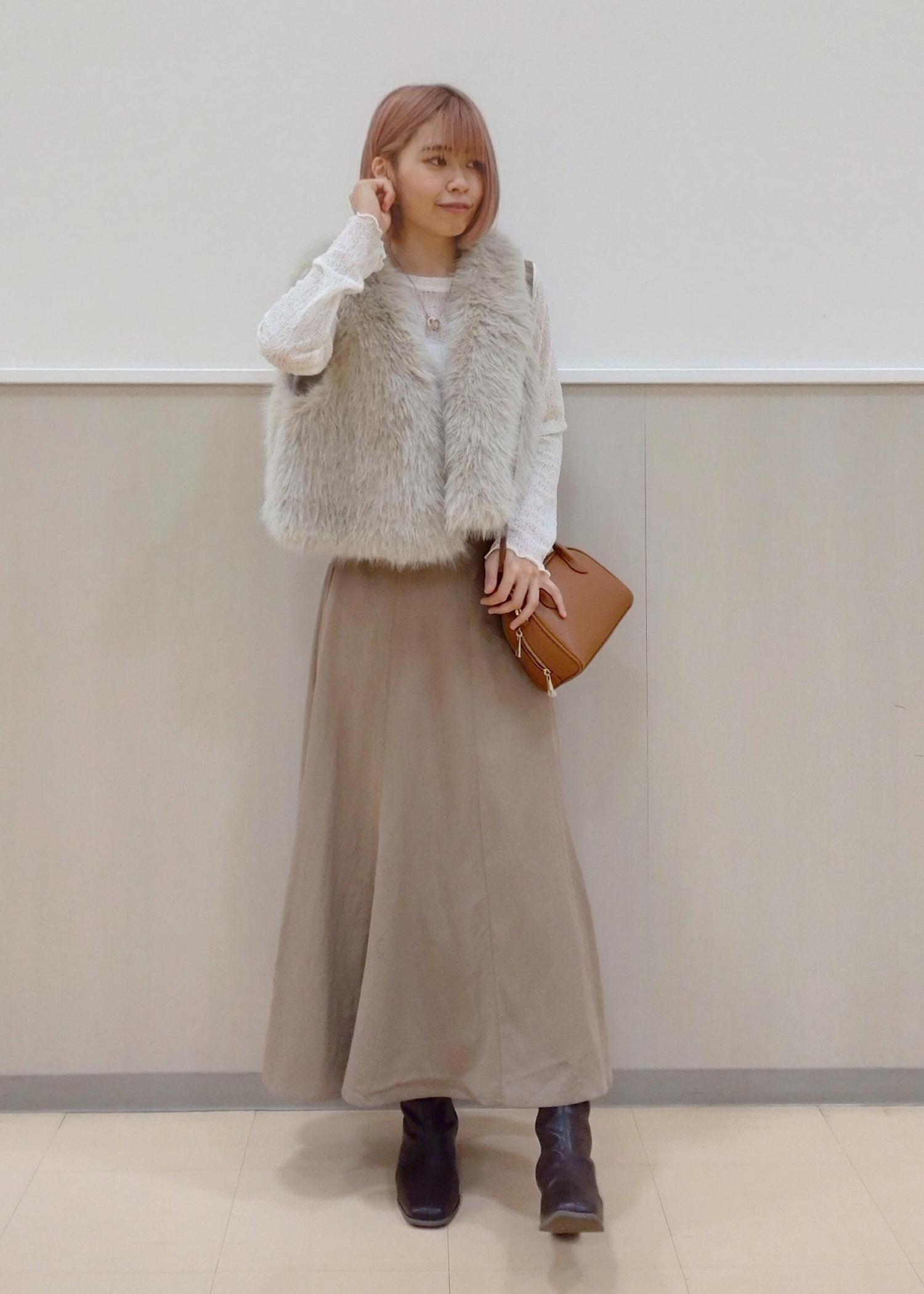 もこもこのファーベストが秋感を増してくれるフェミニンコーディネートです!