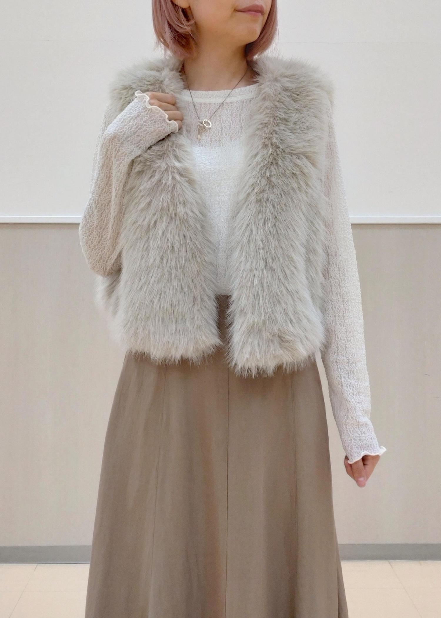 ROPÉ PICNICファーベストベージュ / F¥6,996レビューもふもふのファーがコーディネートのアクセントにぴったりのベストです