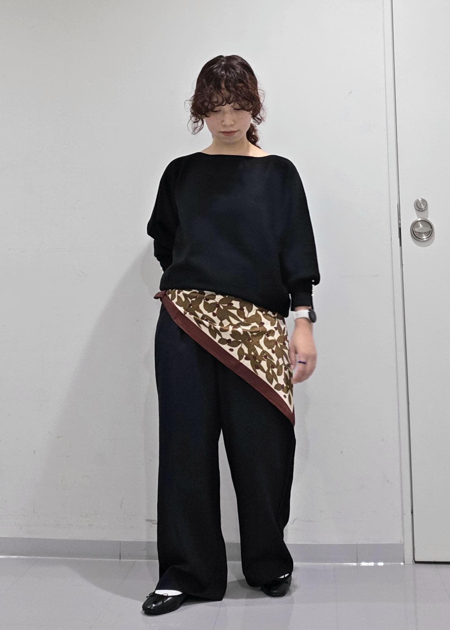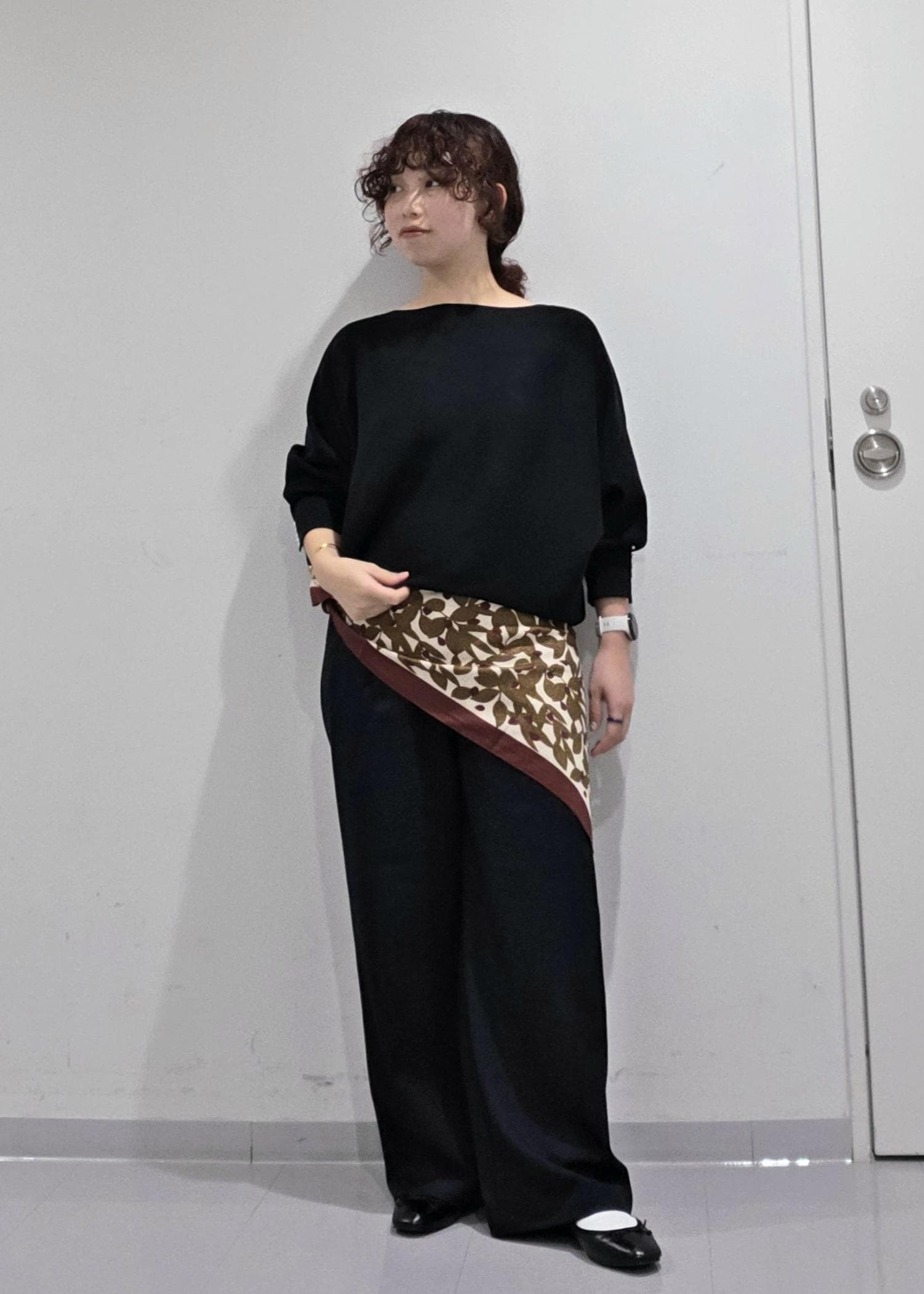 トレンドのスカーフを使って秋らしいコーディネートに。