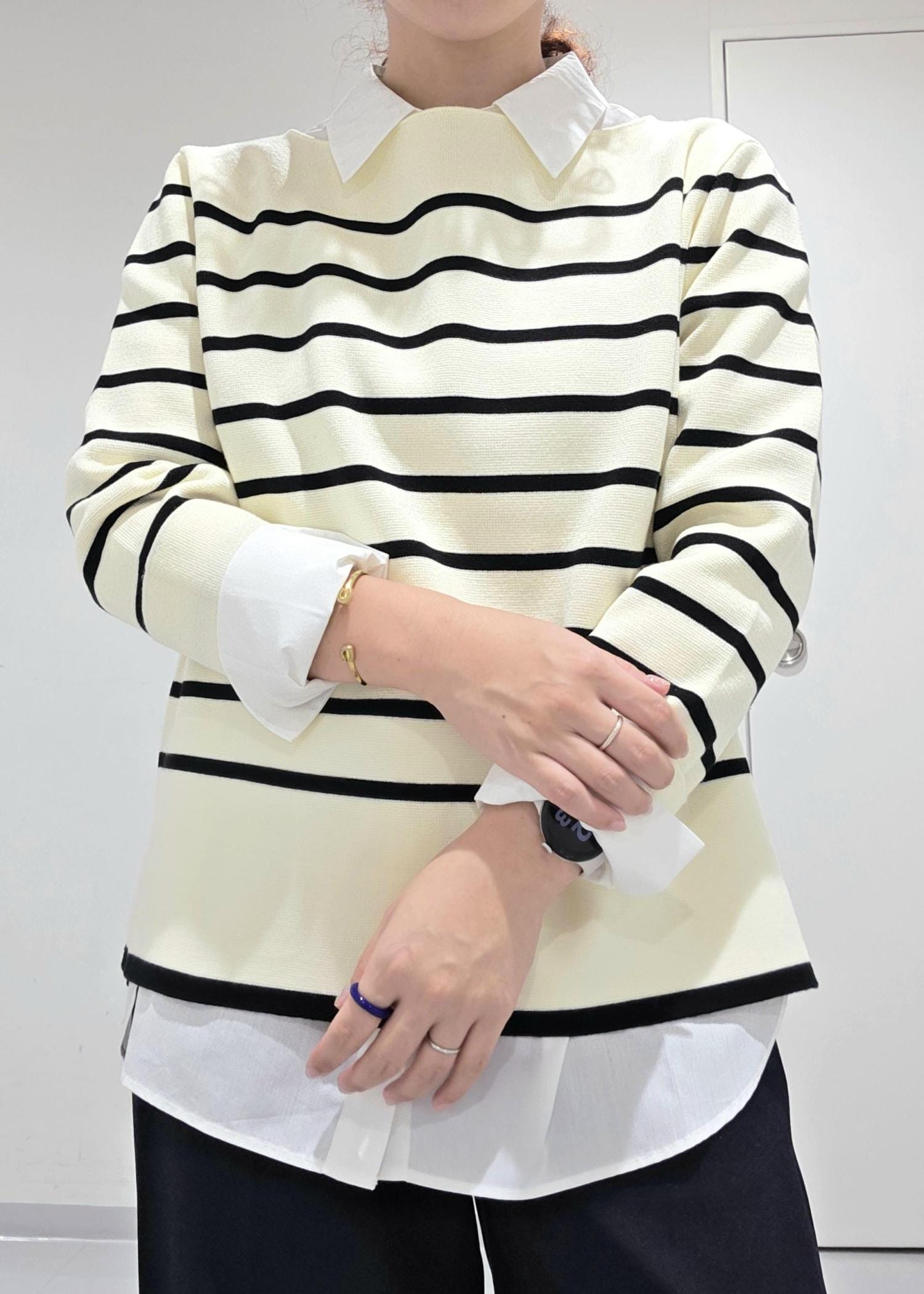 シャツにレイヤードしているので、暑くなってきたら調節も可能です◎