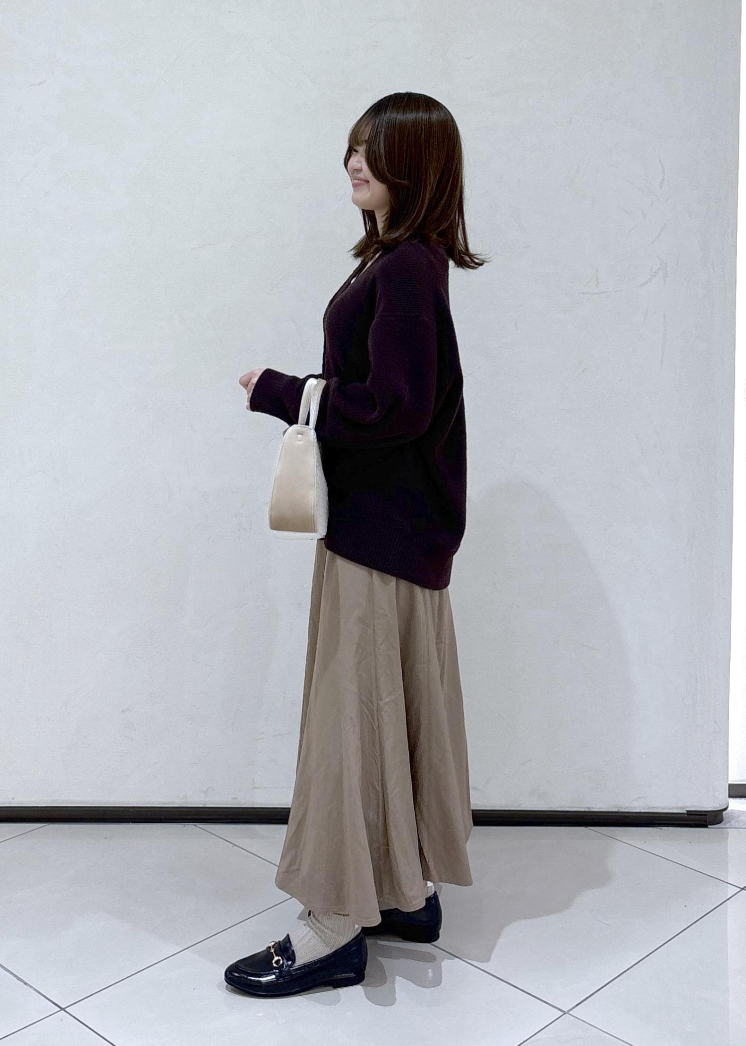 ロングカートなど合わせる時は、下二つのボタンを外して着ると、重たくなり過ぎず、バランス良く着ていただけます! -