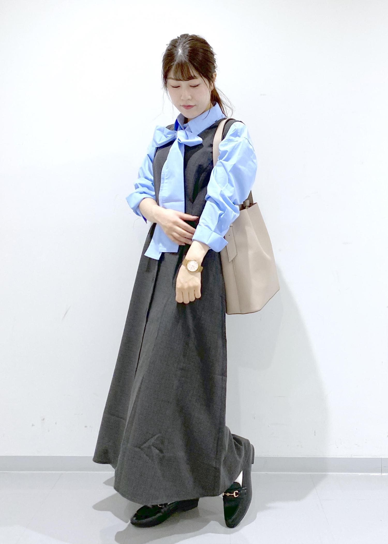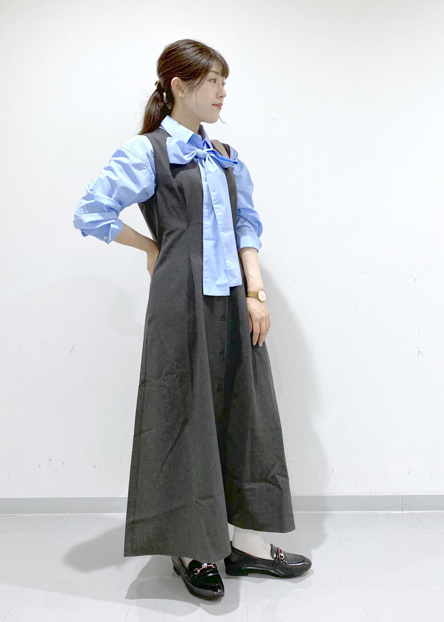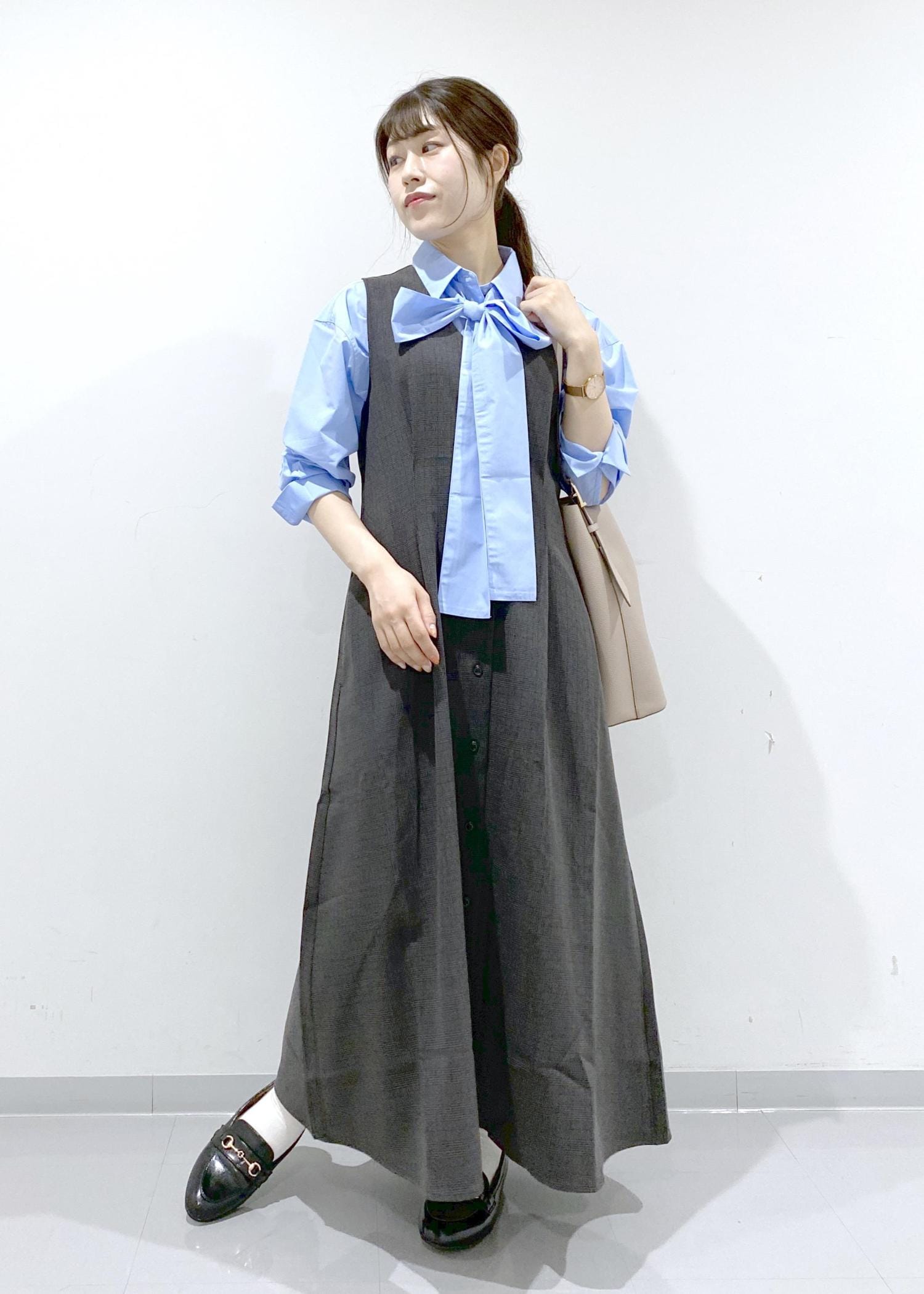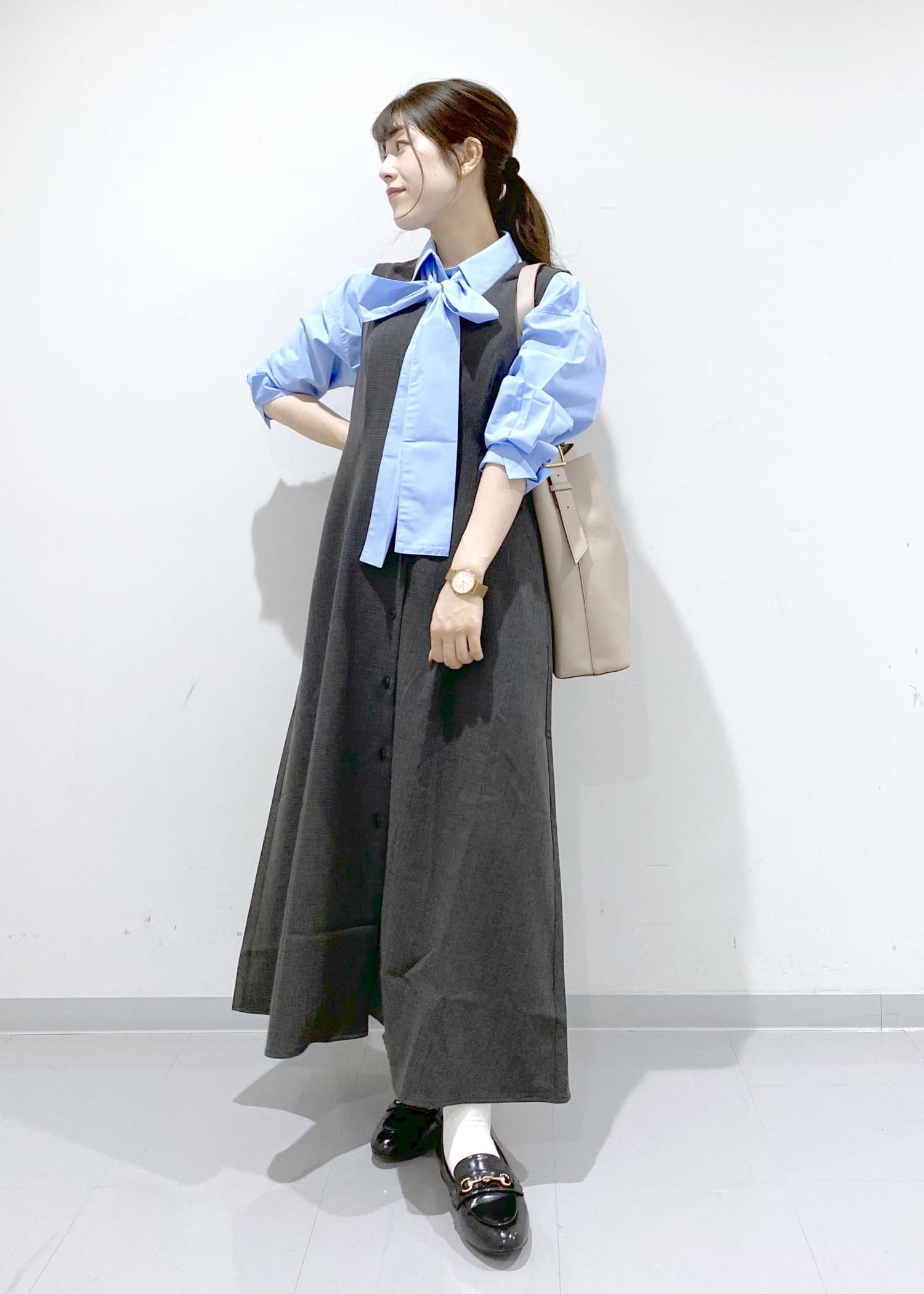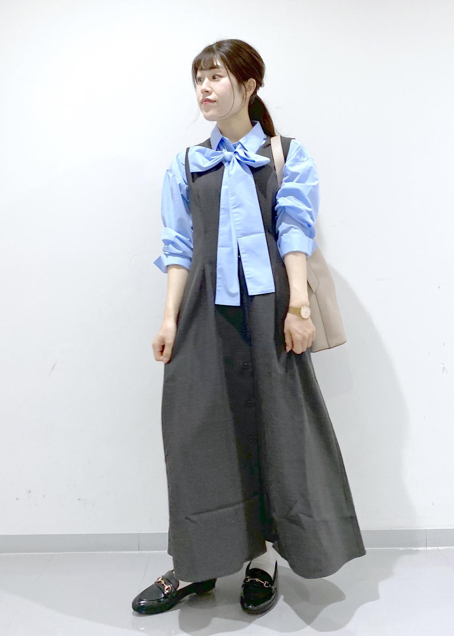 ROPÉ PICNIC【防シワ】ボウタイ付きレギュラーシャツブルー / F¥5,489レビューヒップが隠れる長めの着丈でややオーバーシルエットです。