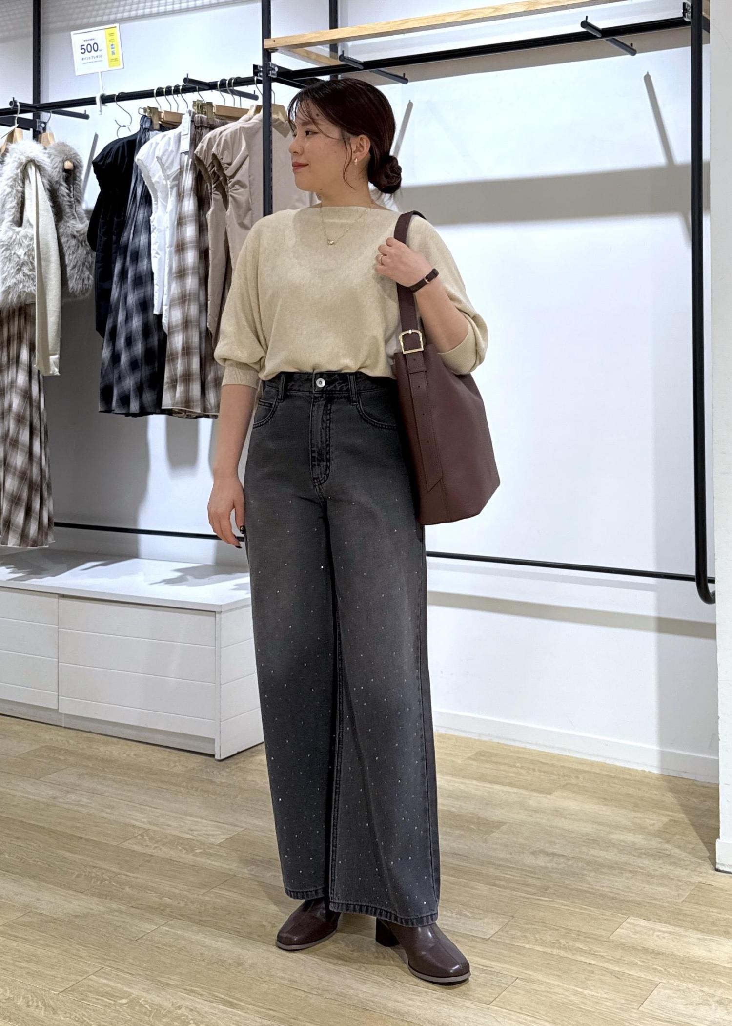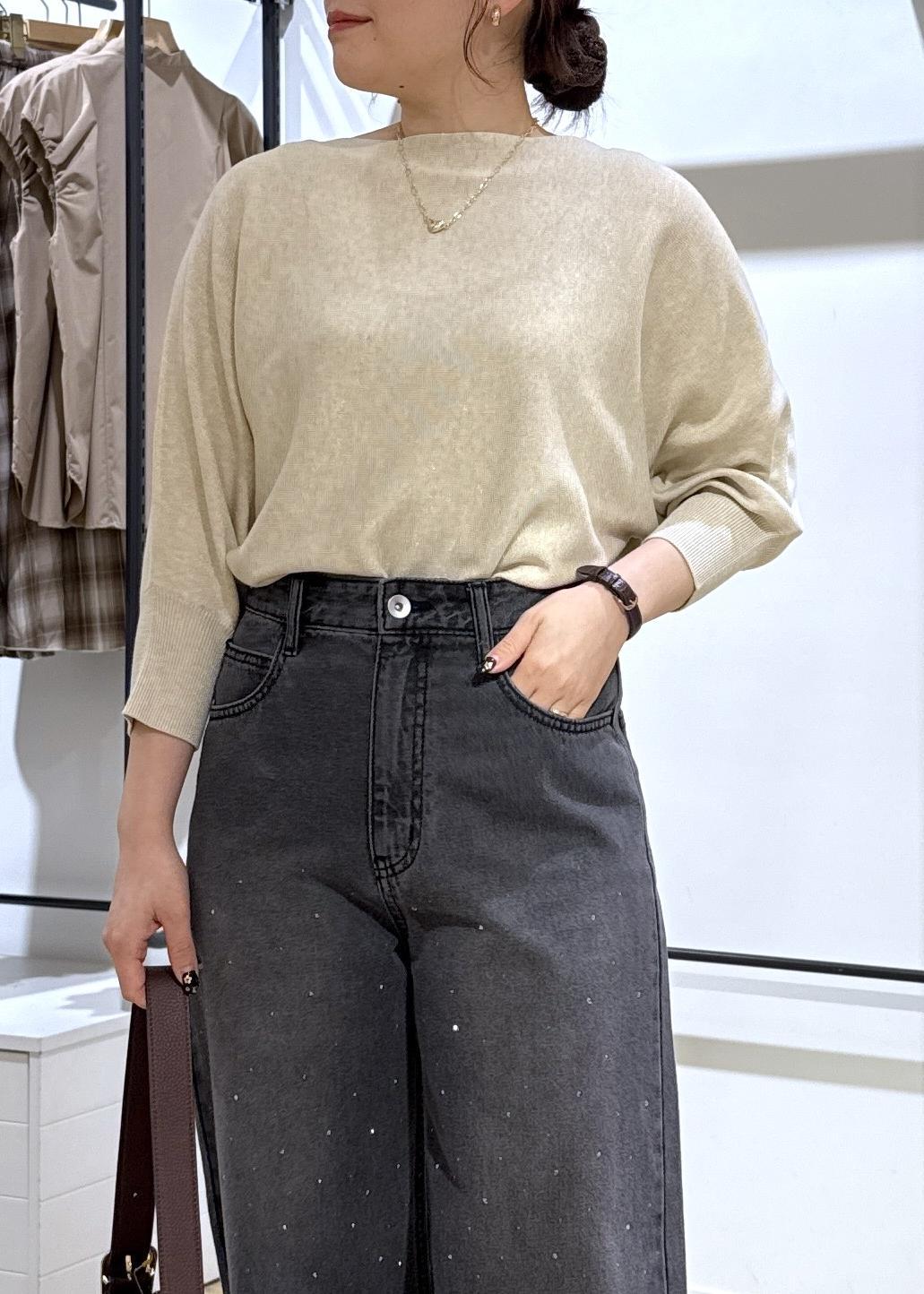 キラキラドルマンニットのOFFの日大人カジュアルコーデ