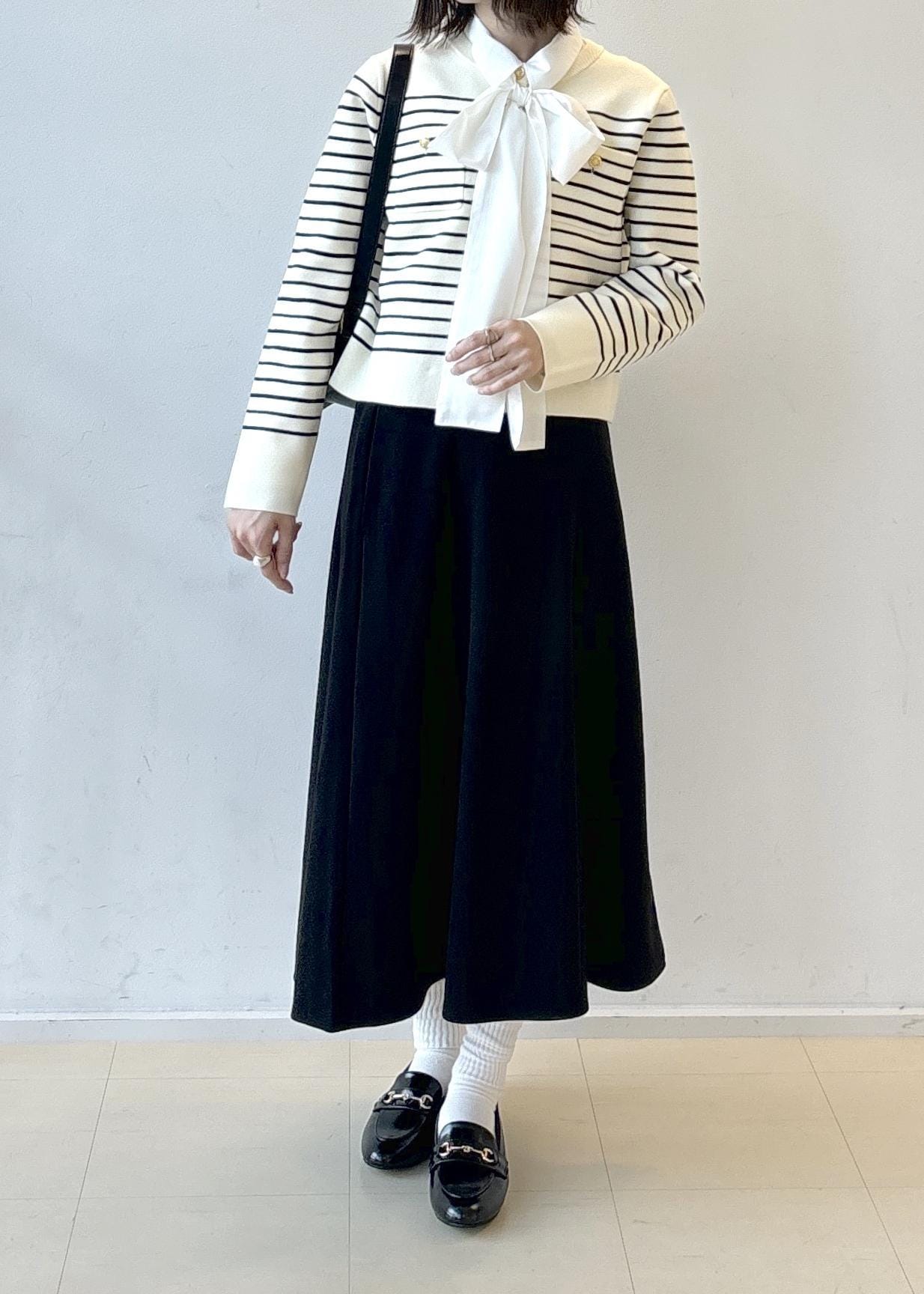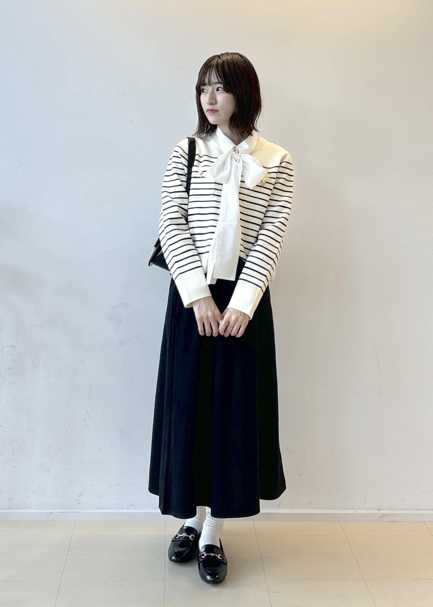 リボンシャツを合わせることでシンプルだけど可愛い印象を与えてくれます♡