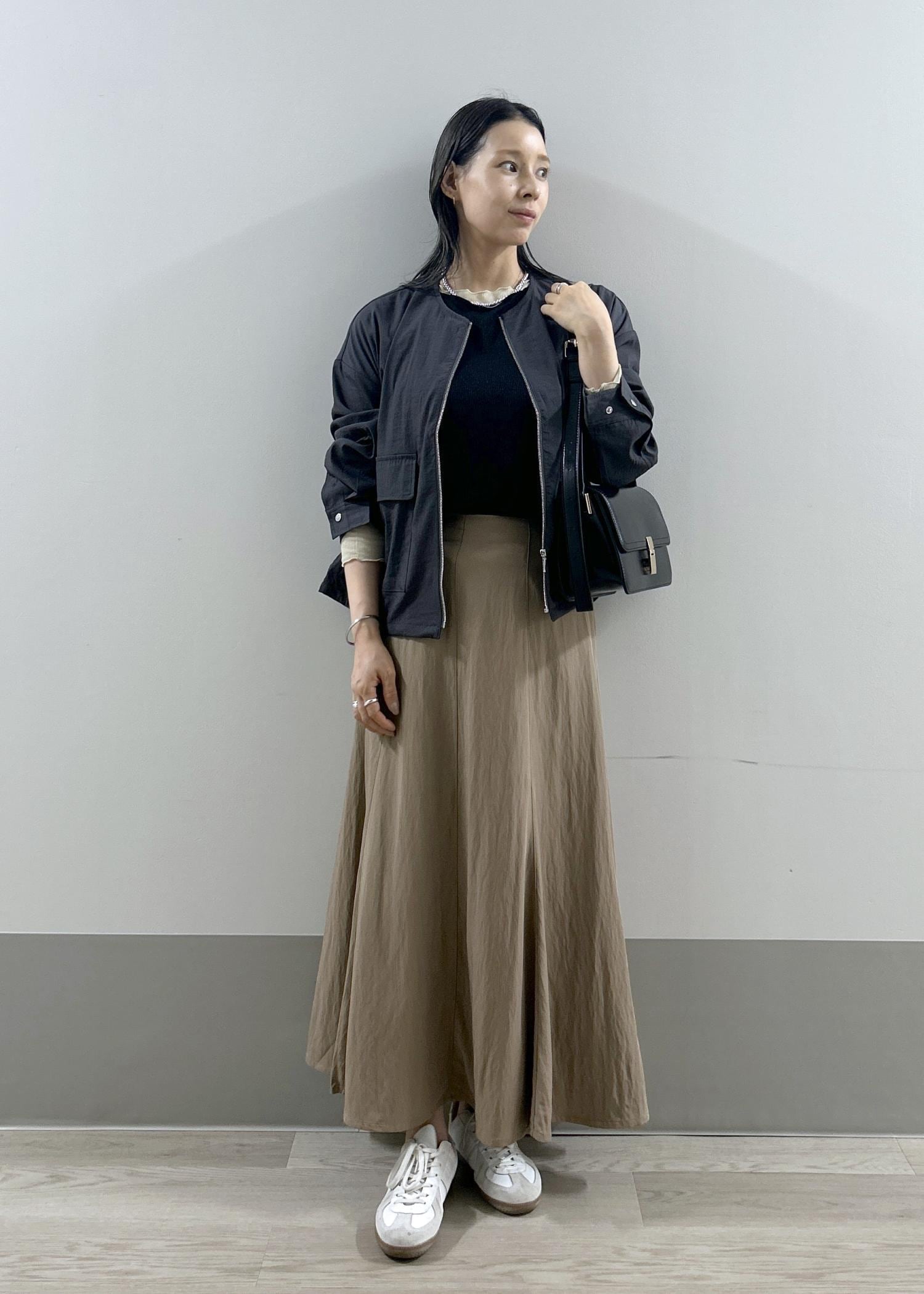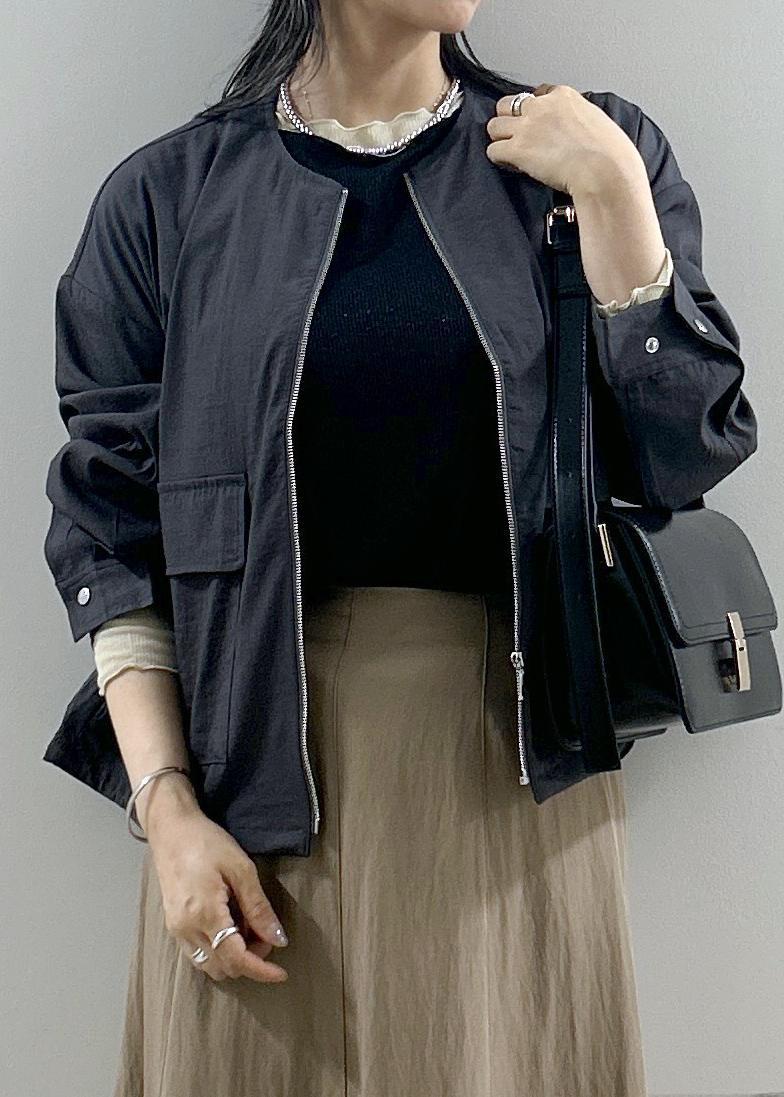 季節の変わり目に最適なアウターを使ったスタイリングです。