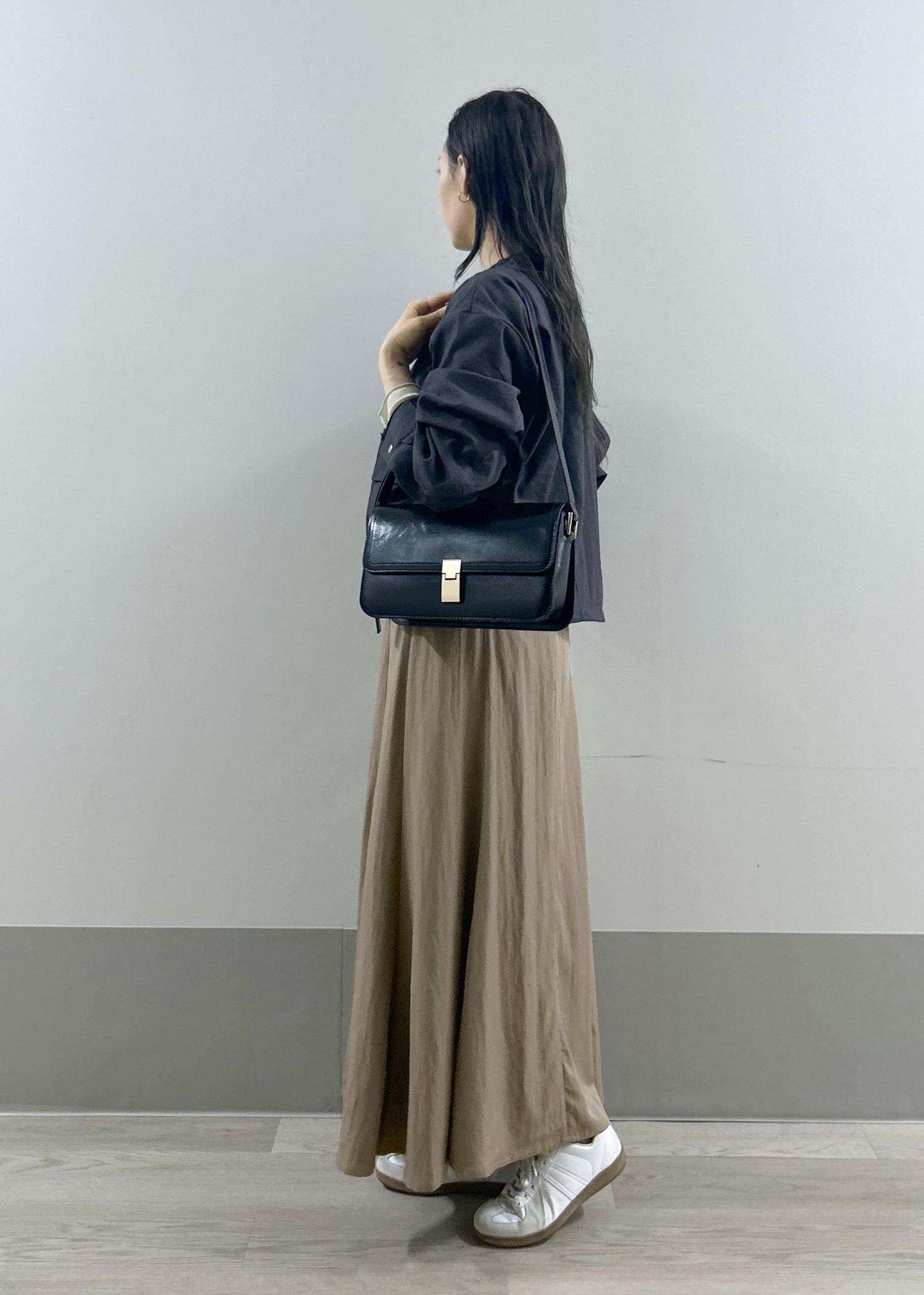 広がりすぎないので、シャツと合わせてオフィスカジュアルにも。
