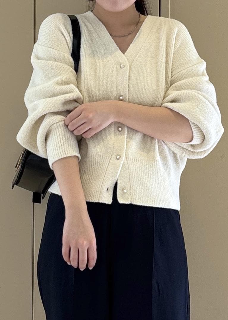 【新色追加】スフレニットシリーズ パールボタンショートカーディガン/イージーケア・リンクコーデ