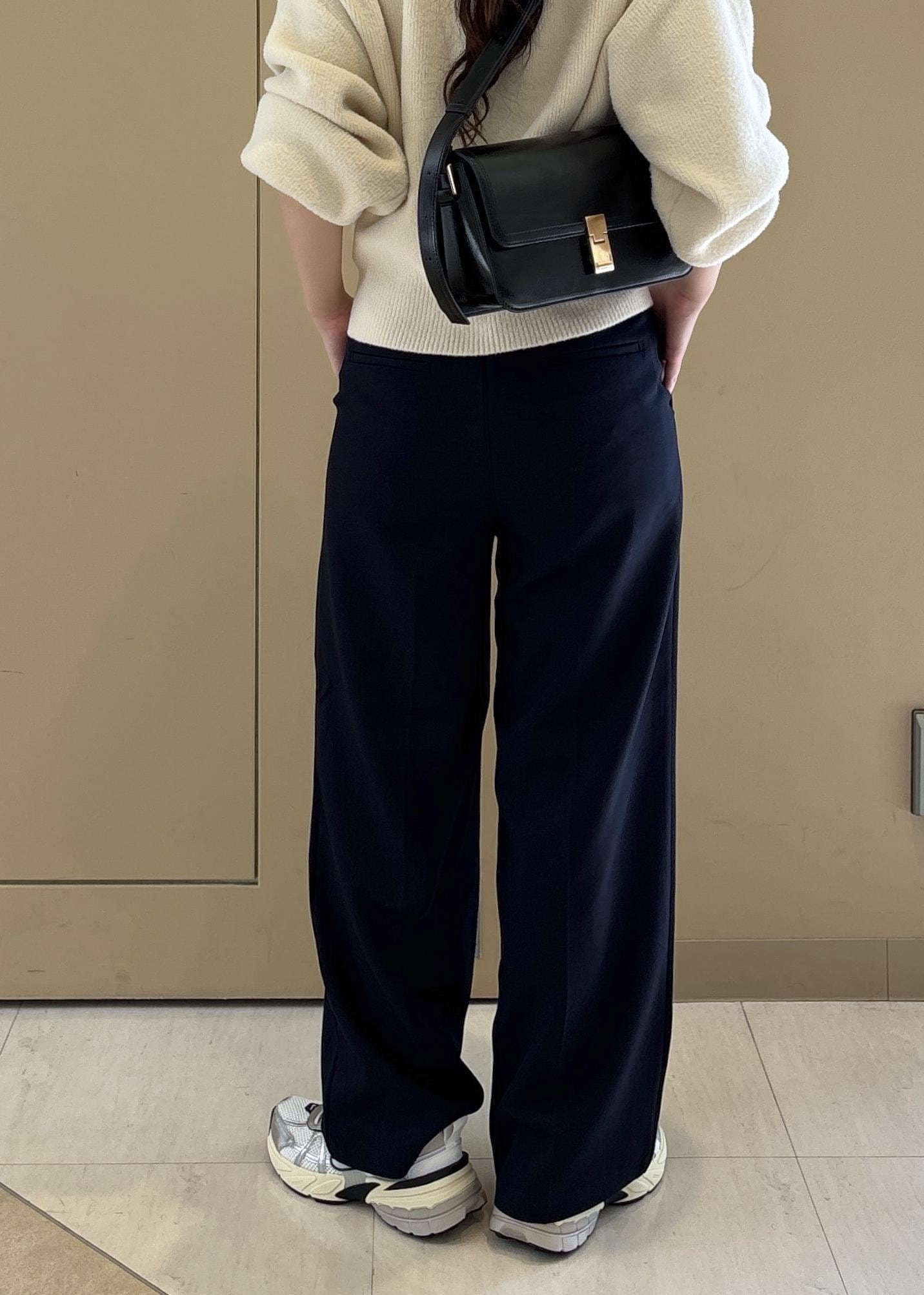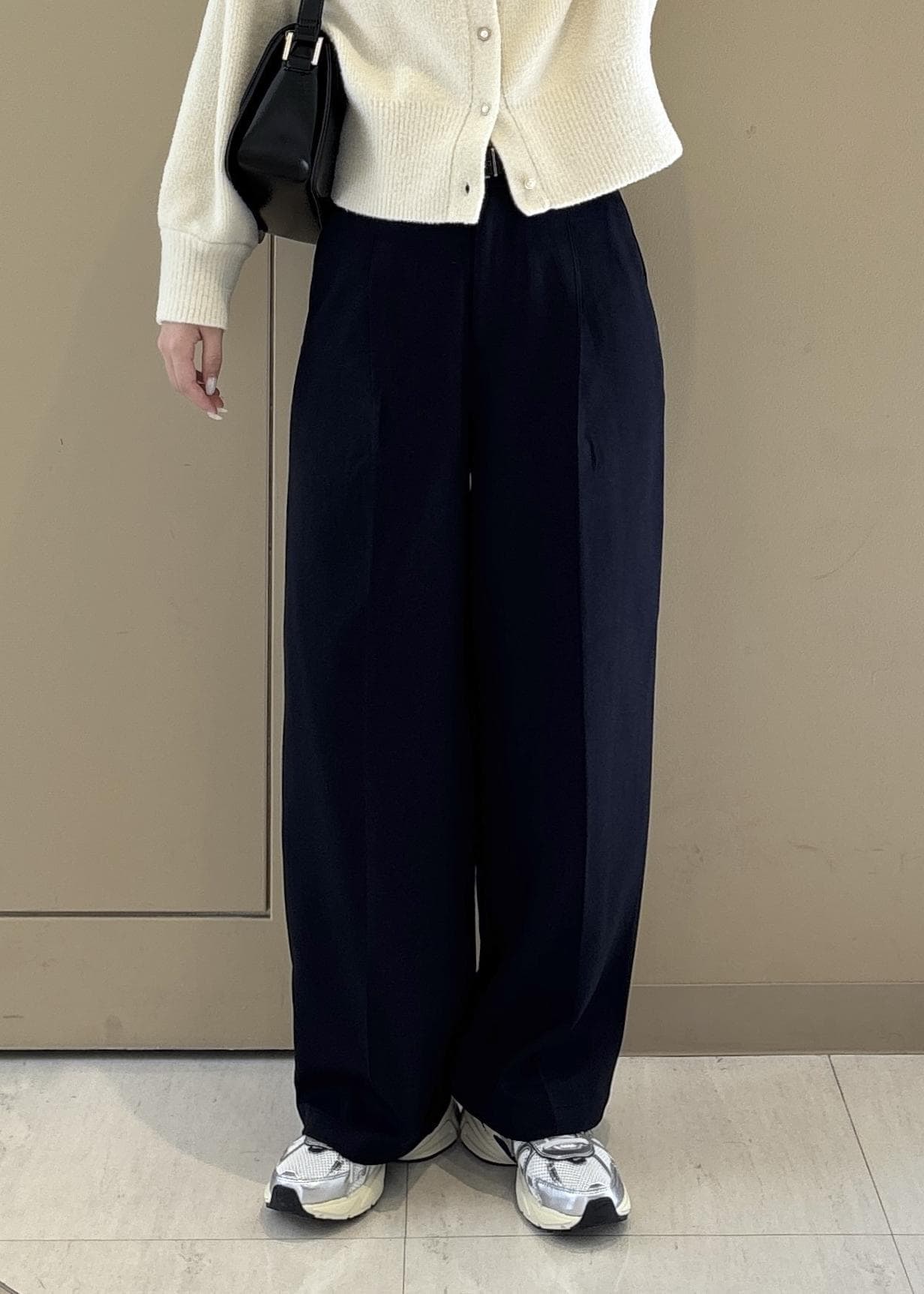 【WEB限定・丈長め】レディハンサムシリーズ ウールライクウエストタックセミワイドパンツ
