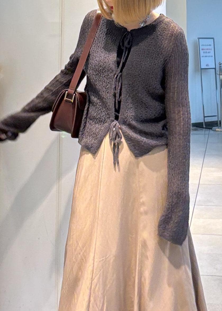 レース編みカーディガンは、綺麗めスカートと合わせると程よく甘さを引き出してくれるのでおすすめの組み合わせです☺︎