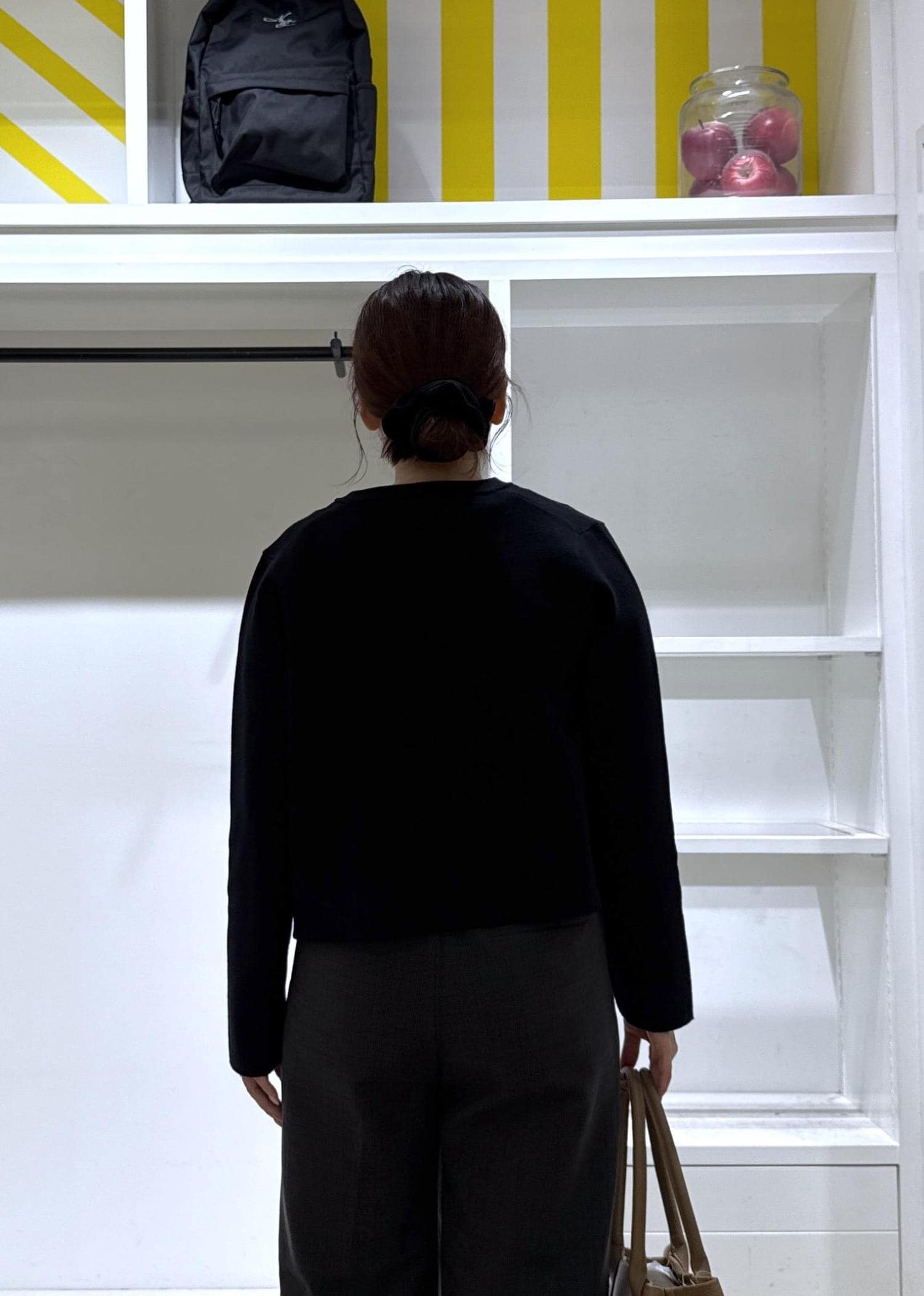 分厚すぎないニットなので、端境期は羽織として、冬はコート中にも重ね着しやすいです。