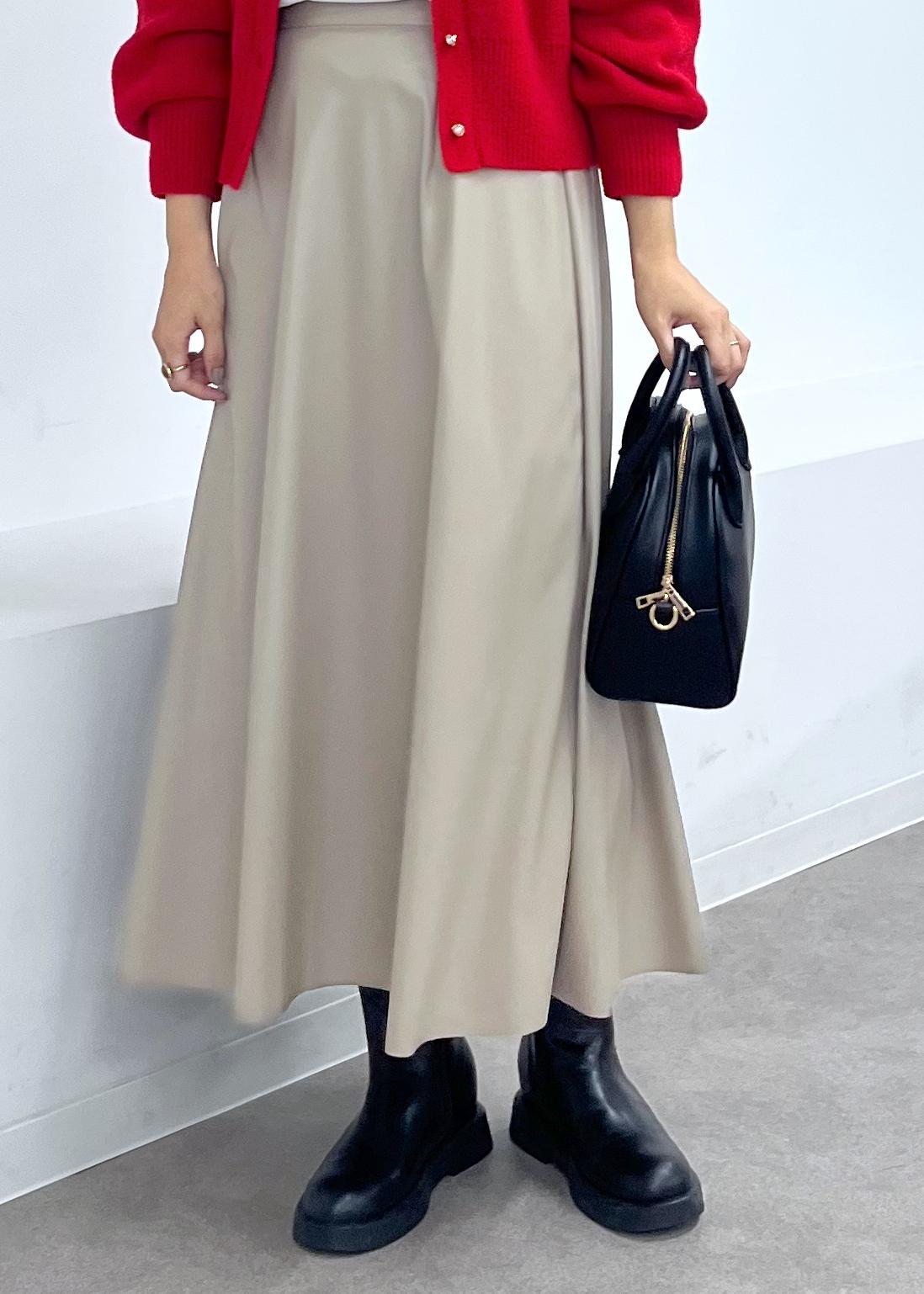 ROPÉ PICNICシンセティックレザーフレアロングスカートベージュ / M¥4,994レビュー柔らかい作りのレザー調スカート。レザーときくとかっちりめに感じますが柔らかく動きやすい。