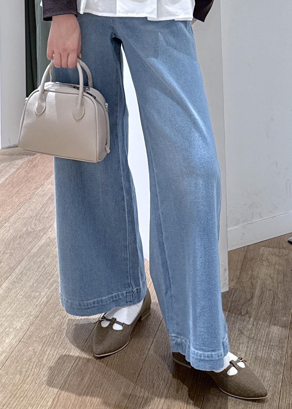 ワイドなシルエットですが、裾が広がりすぎないため綺麗めなコーディネートにも合わせやすいです。