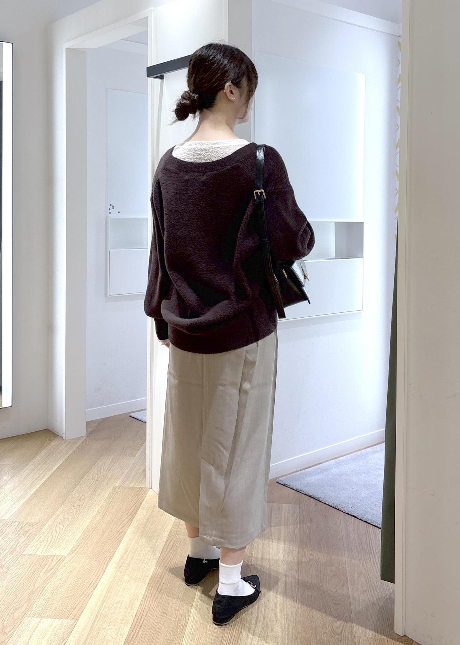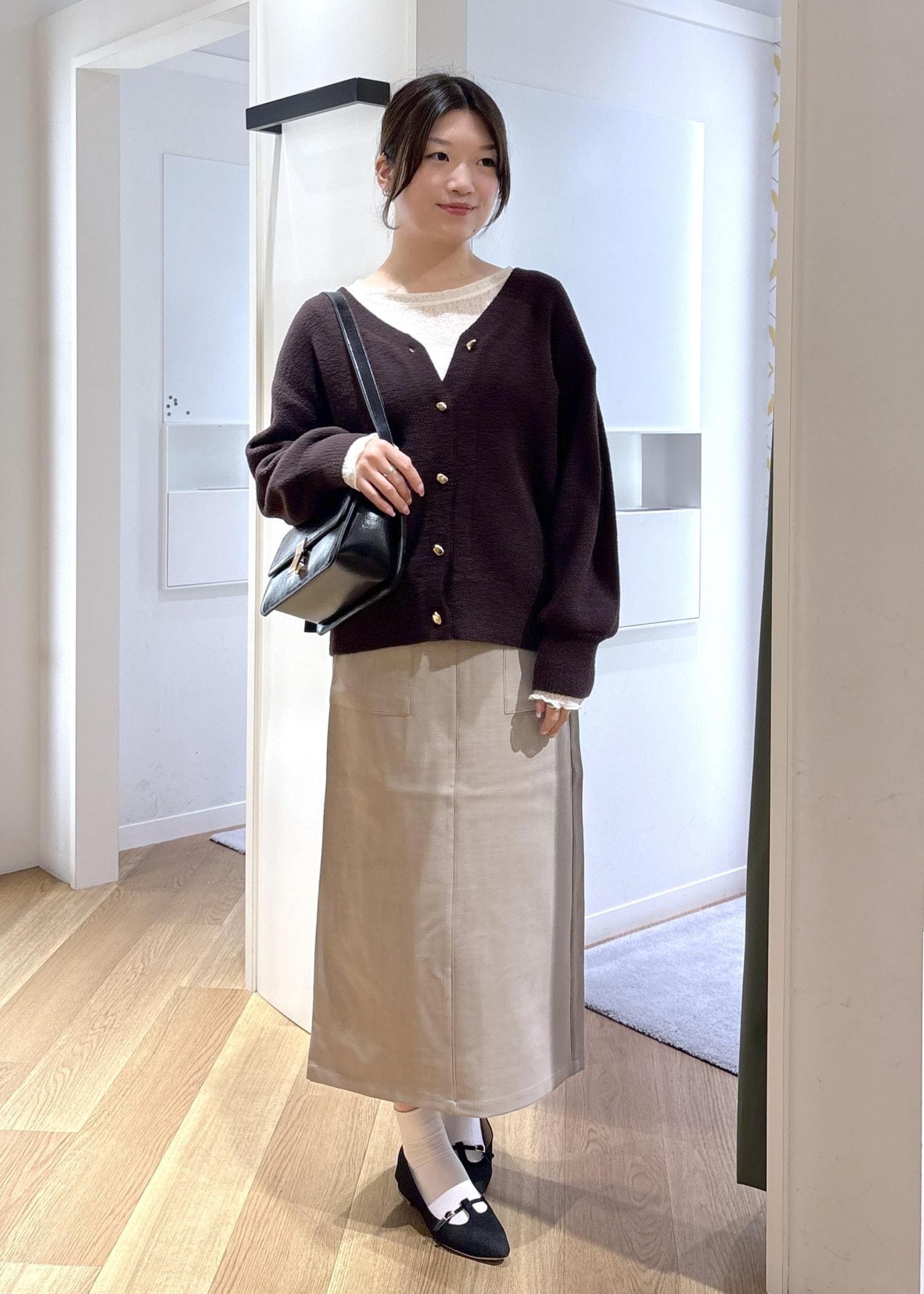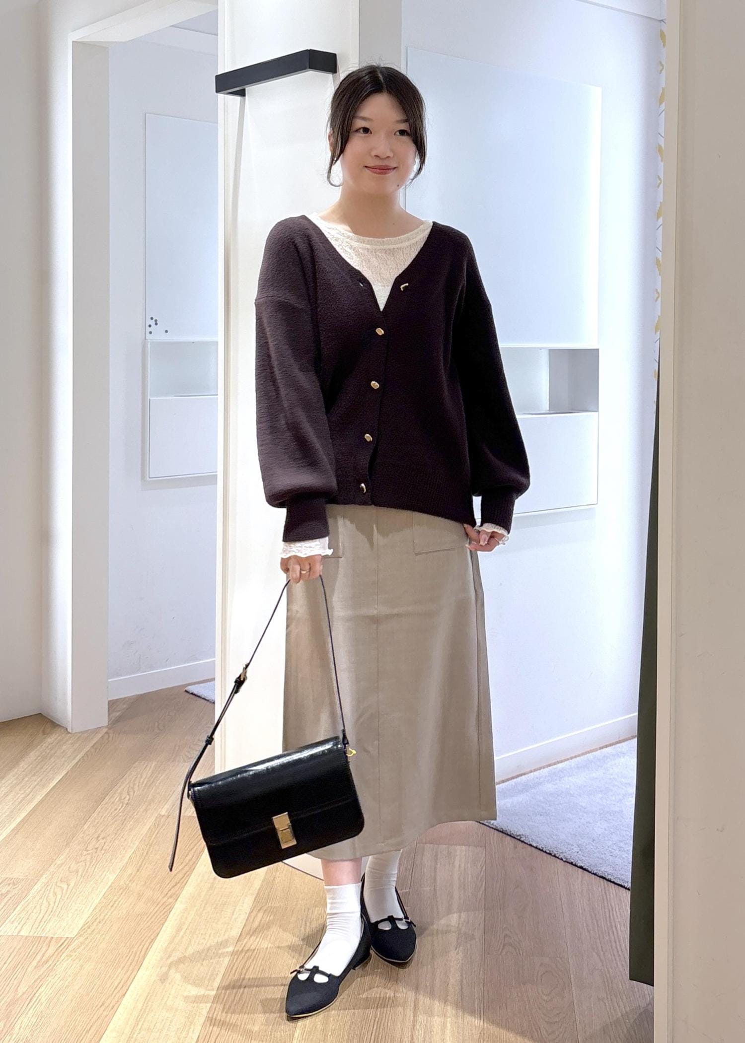 袖は長めなのでニットやカーディガンとレイヤードし、袖から見せても可愛いです。 -