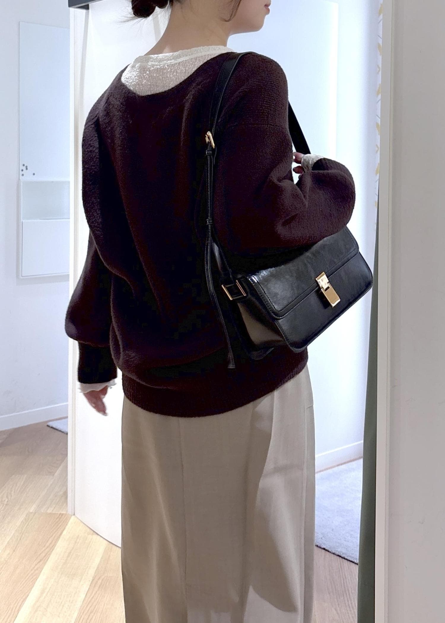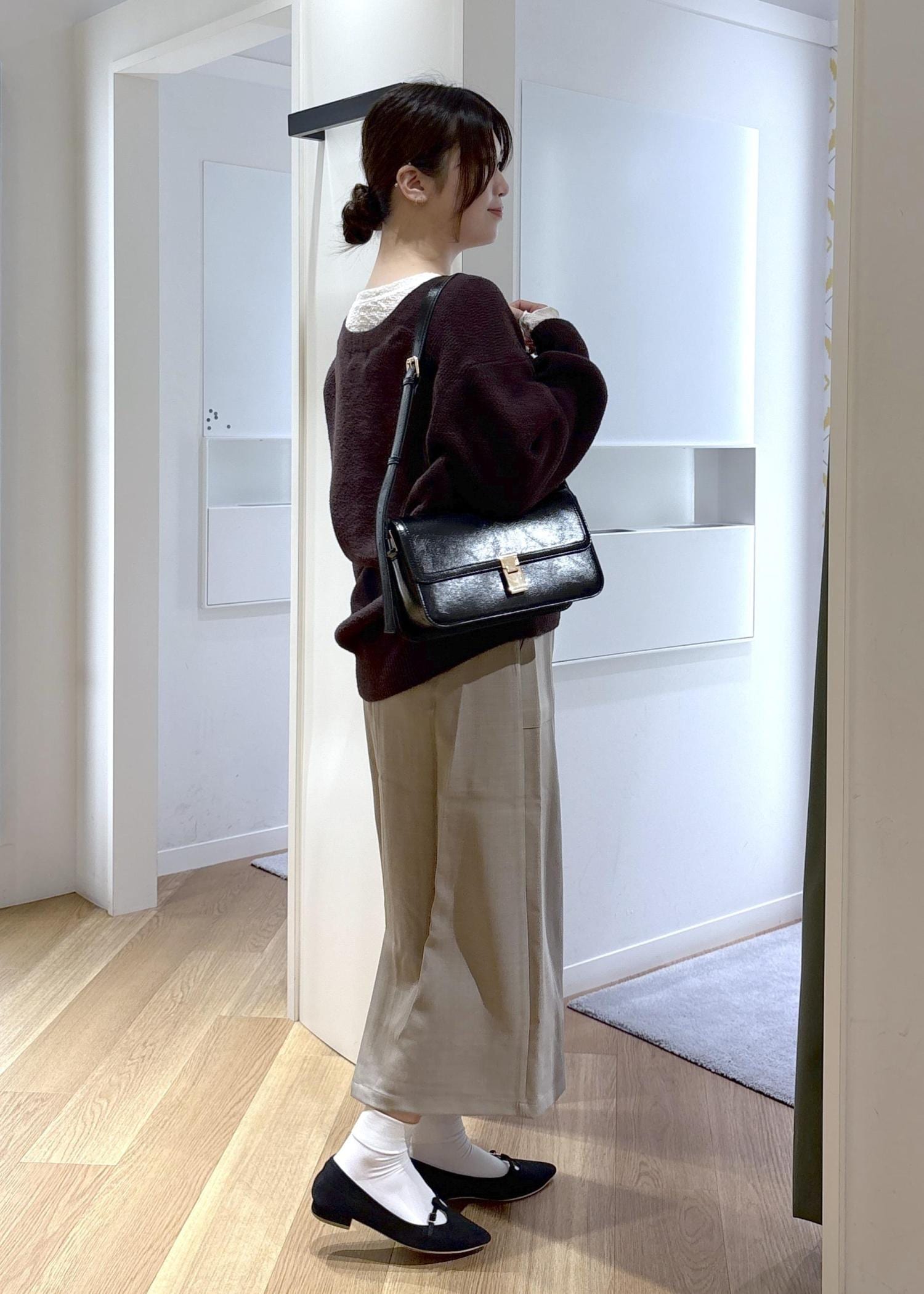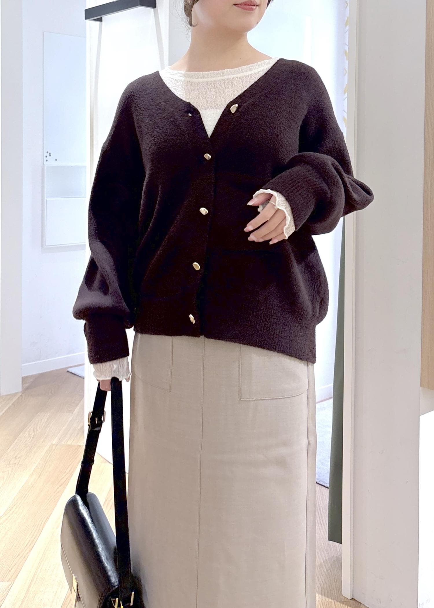 袖は長めなのでニットやカーディガンとレイヤードし、袖から見せても可愛いです。 -