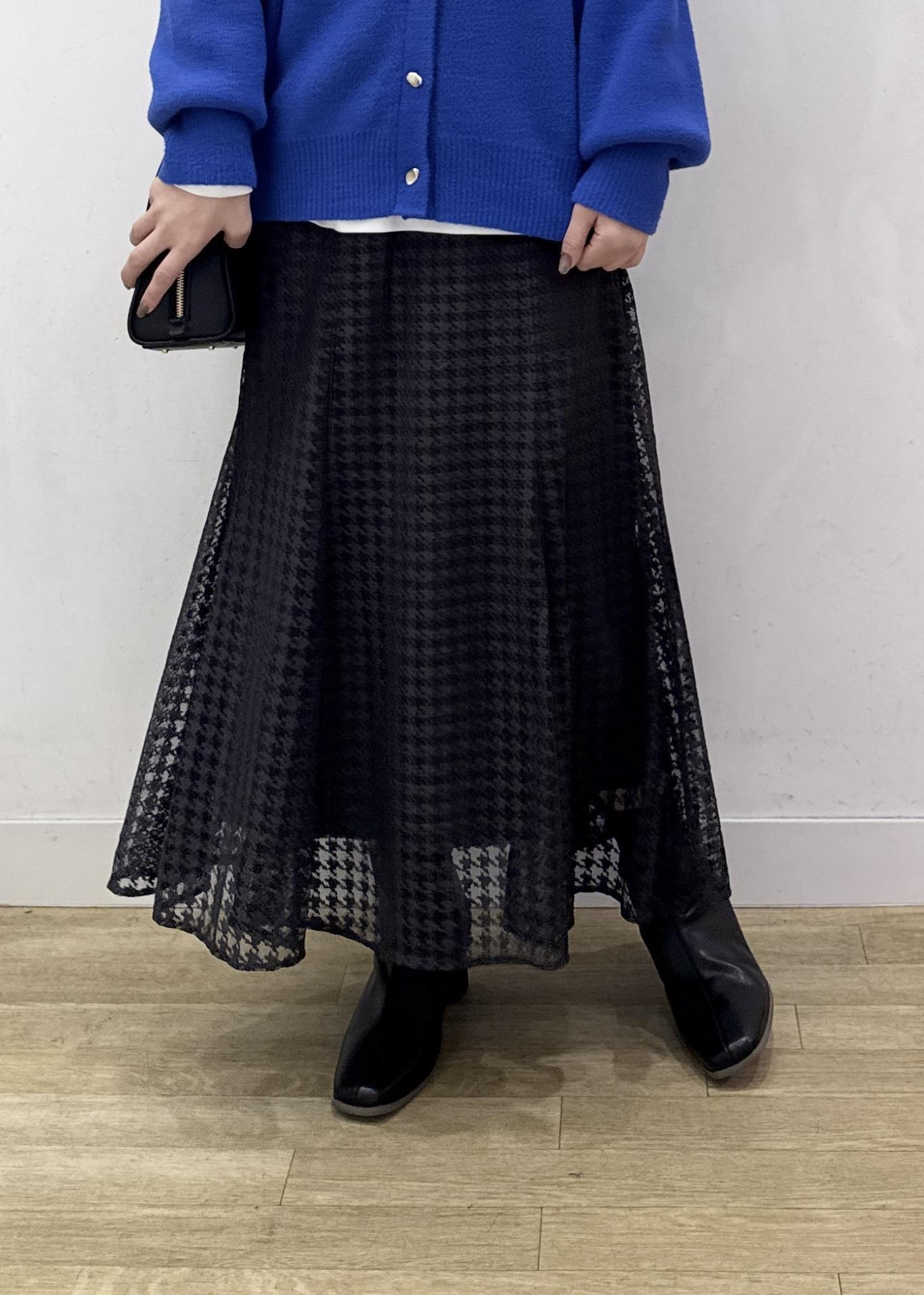 裾の透け感と、動きに合わせてふわっと広がるデザインが可愛いスカートです。
