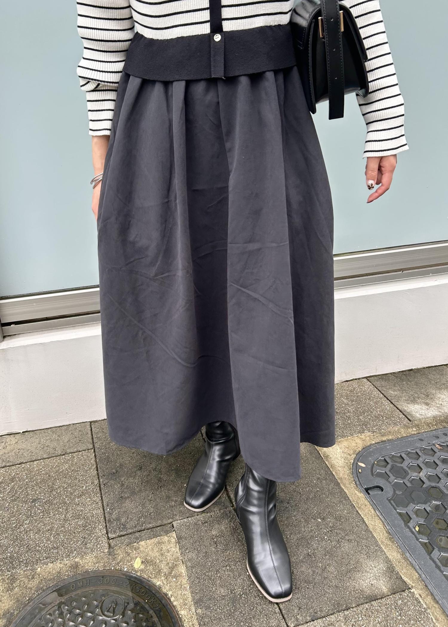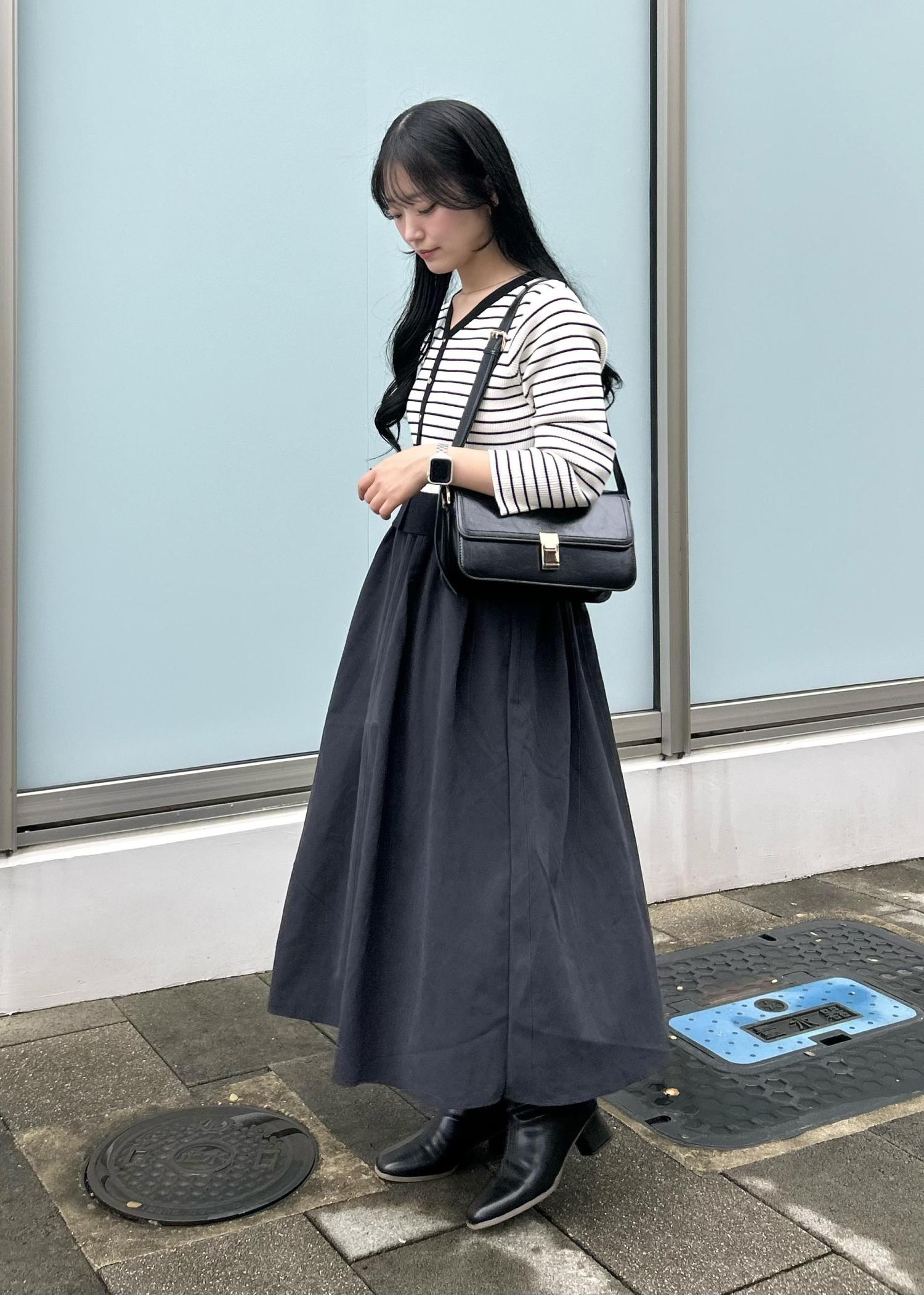 下半身はふんわり広がるロングスカートで女性らしい雰囲気を引き出してくれます。