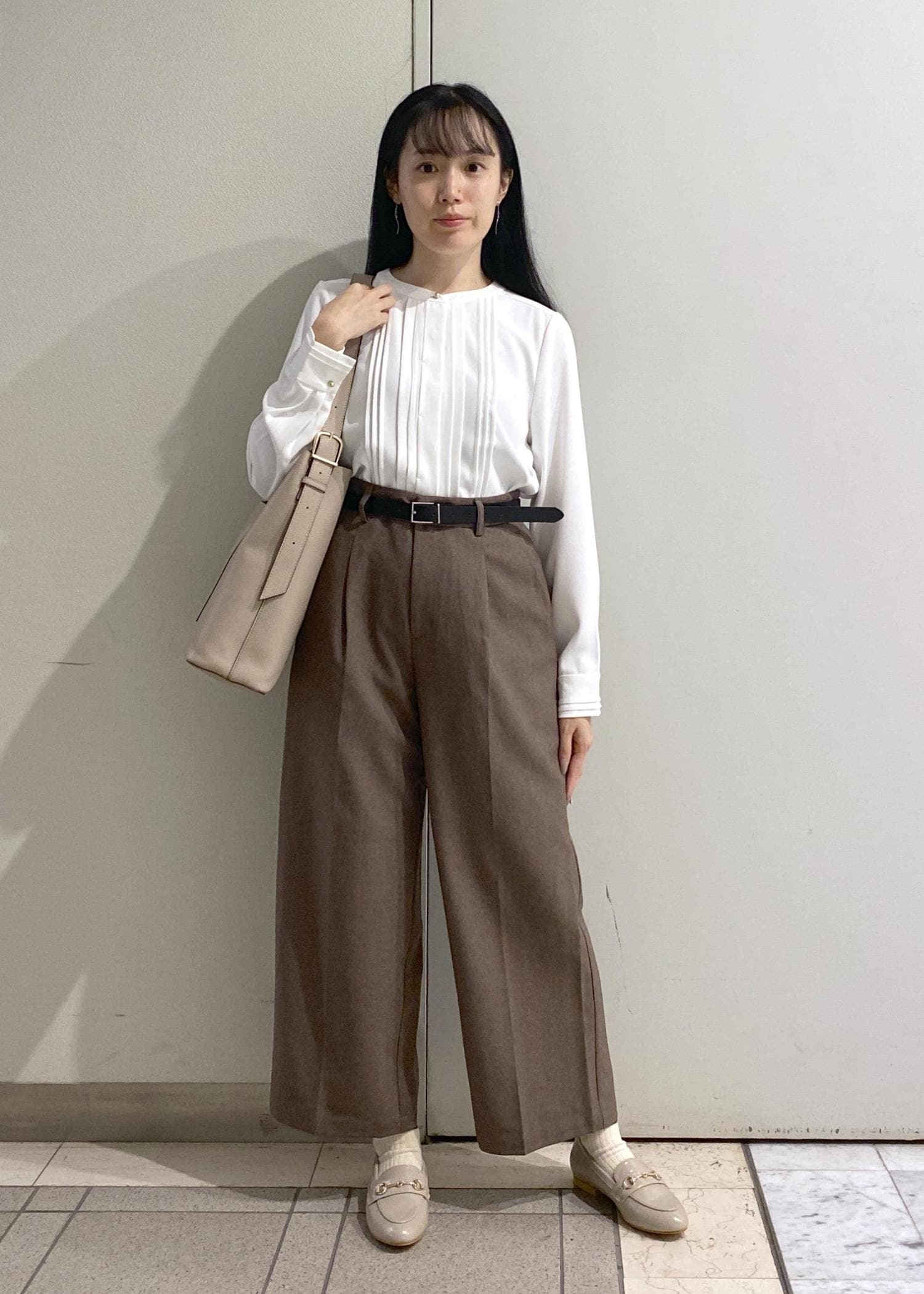 ウエストにはベルトを合わせてきちんと感をプラス+
