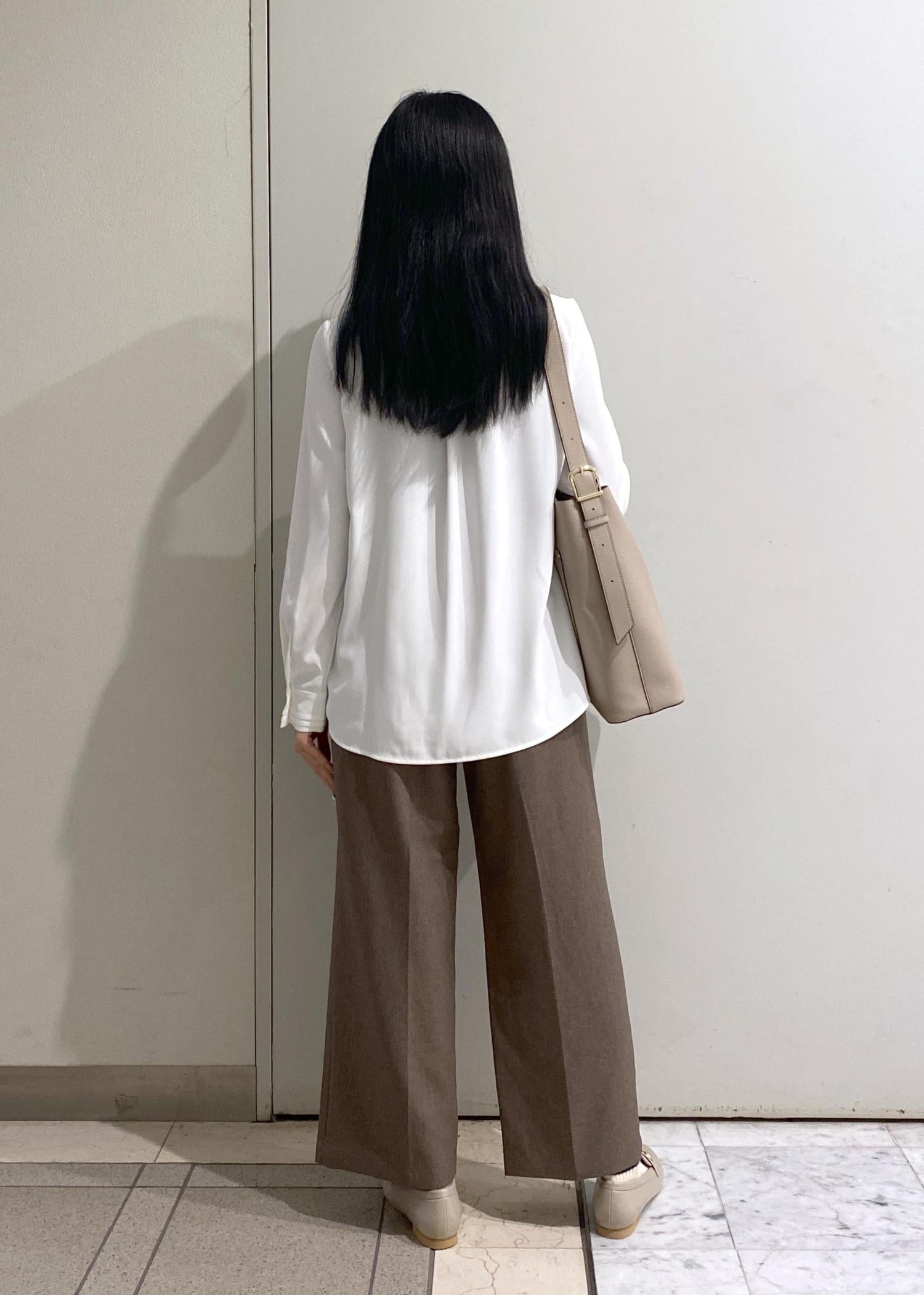 オフィスカジュアルにも使えるようなシンプルさと、秋らしさをイメージしました。